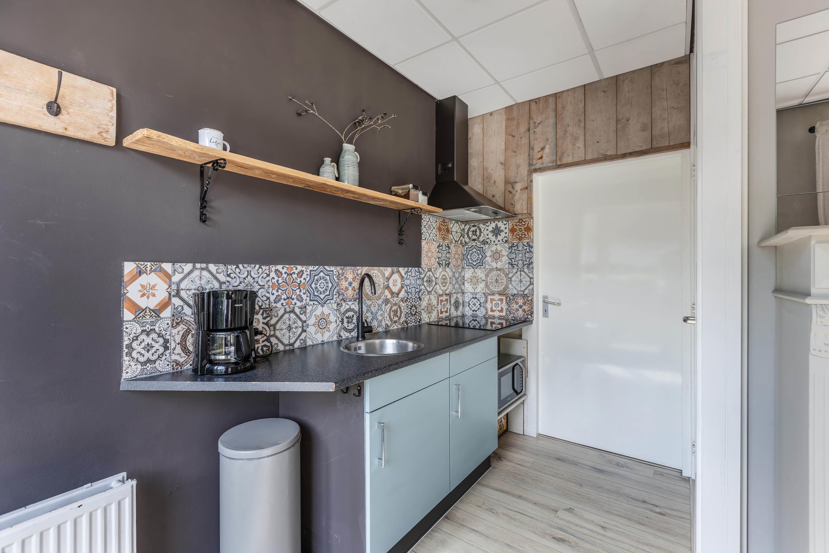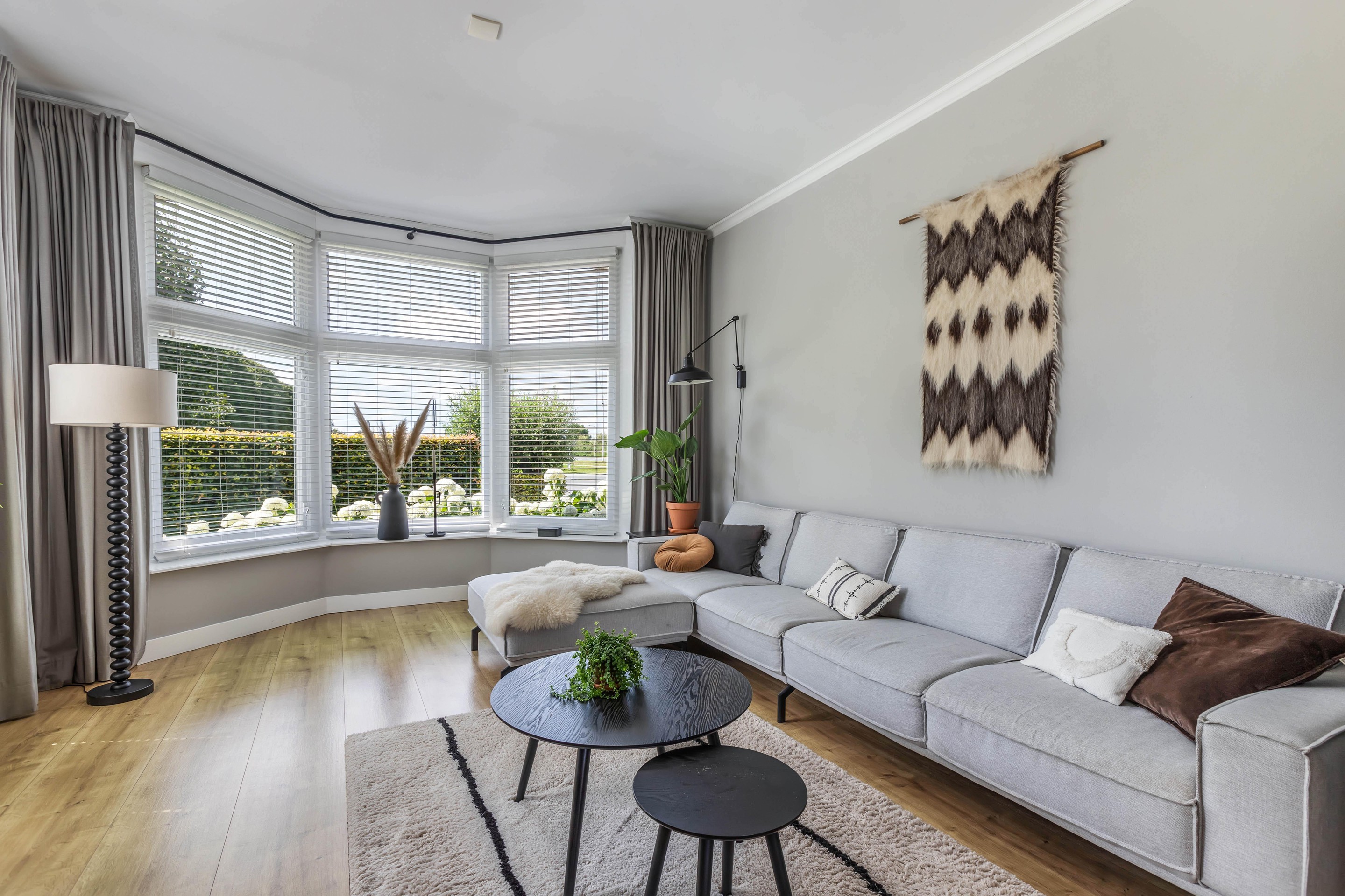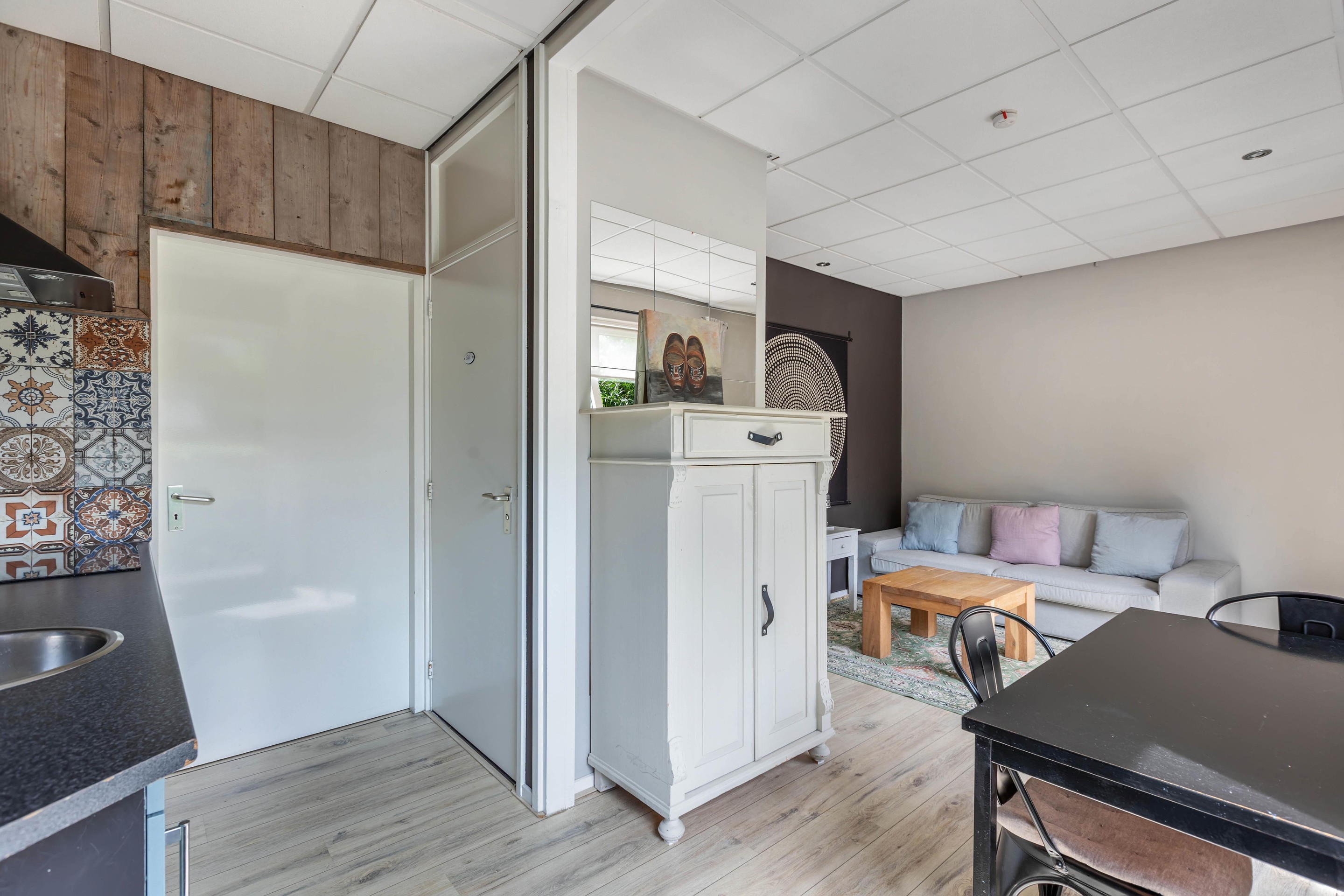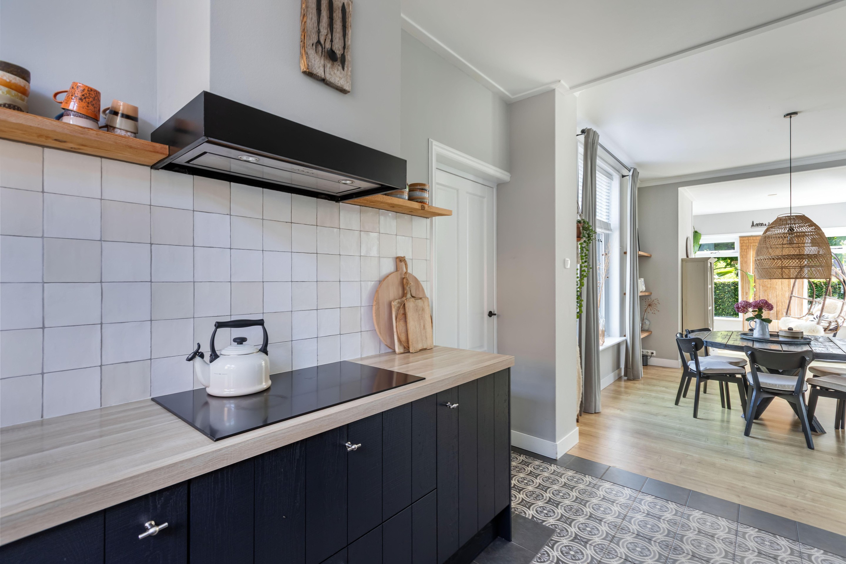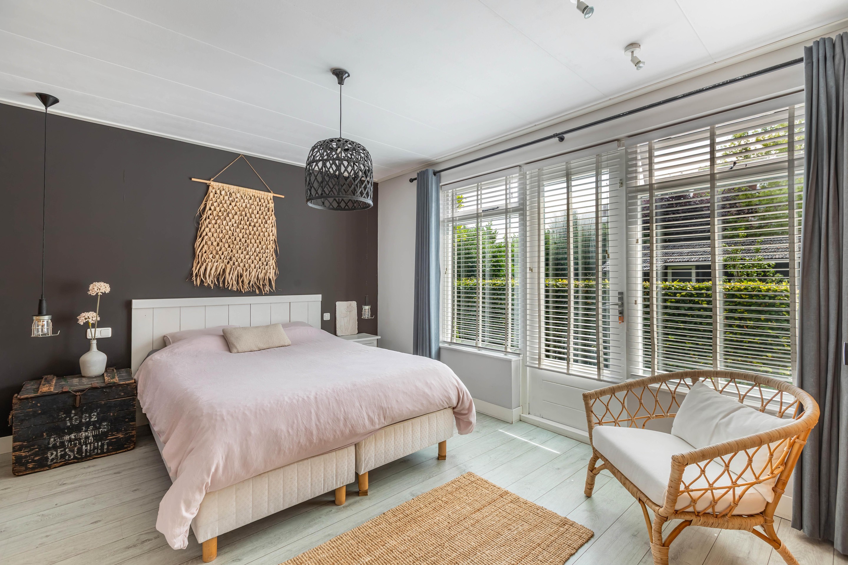 Binnen valt direct het lichte en aangename interieur op. Grote raampartijen zorgen voor een prachtige lichtinval en versterken het ruimtelijke gevoel in huis. De indeling is bijzonder veelzijdig en maakt deze woning geschikt voor uiteenlopende woonwensen. In de oorspronkelijke woning bevinden zich drie slaapkamers en een badkamer op de verdieping. De aanbouw voegt hier nog een extra slaapkamer en badkamer aan toe, terwijl het zelfstandige appartement met eigen keuken, slaapkamer en badkamer tal van mogelijkheden biedt, zoals gebruik voor bed & breakfast, praktijk aan huis, mantelzorg of duowonen.
