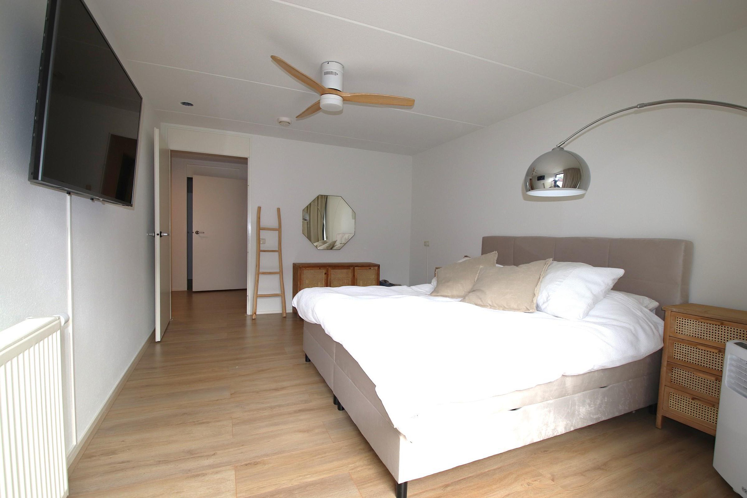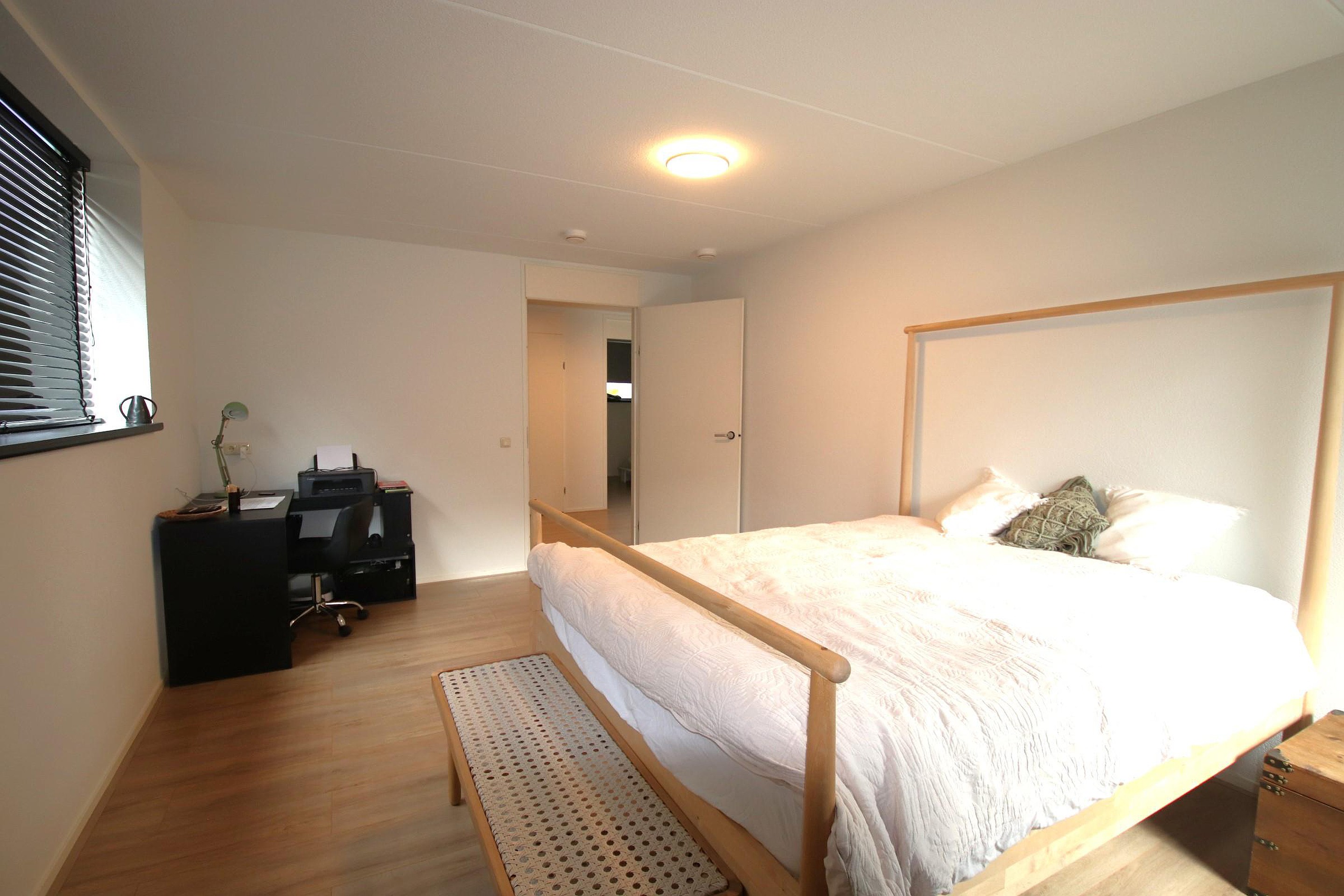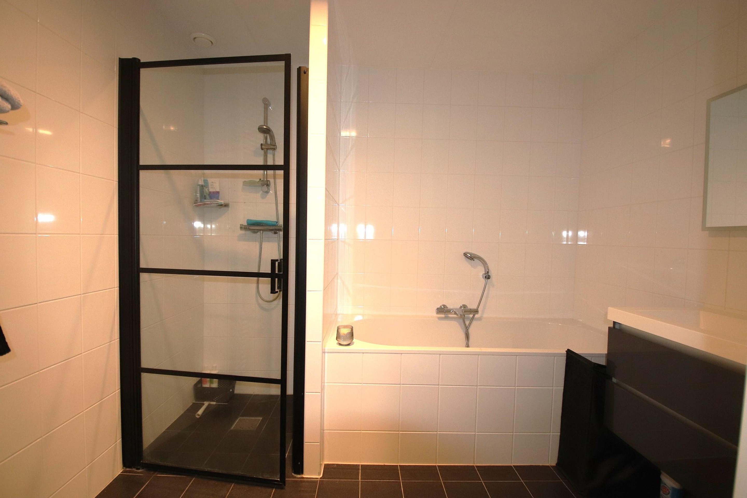 entree, trapneergang, centrale ruime hal met apart modern toilet en inkoopkledingkast, 3 royale slaapkamers, waarvan 2 met schuifpui en nette badkamer voorzien van ligbad, douchehoek en wastafelmeubel.
