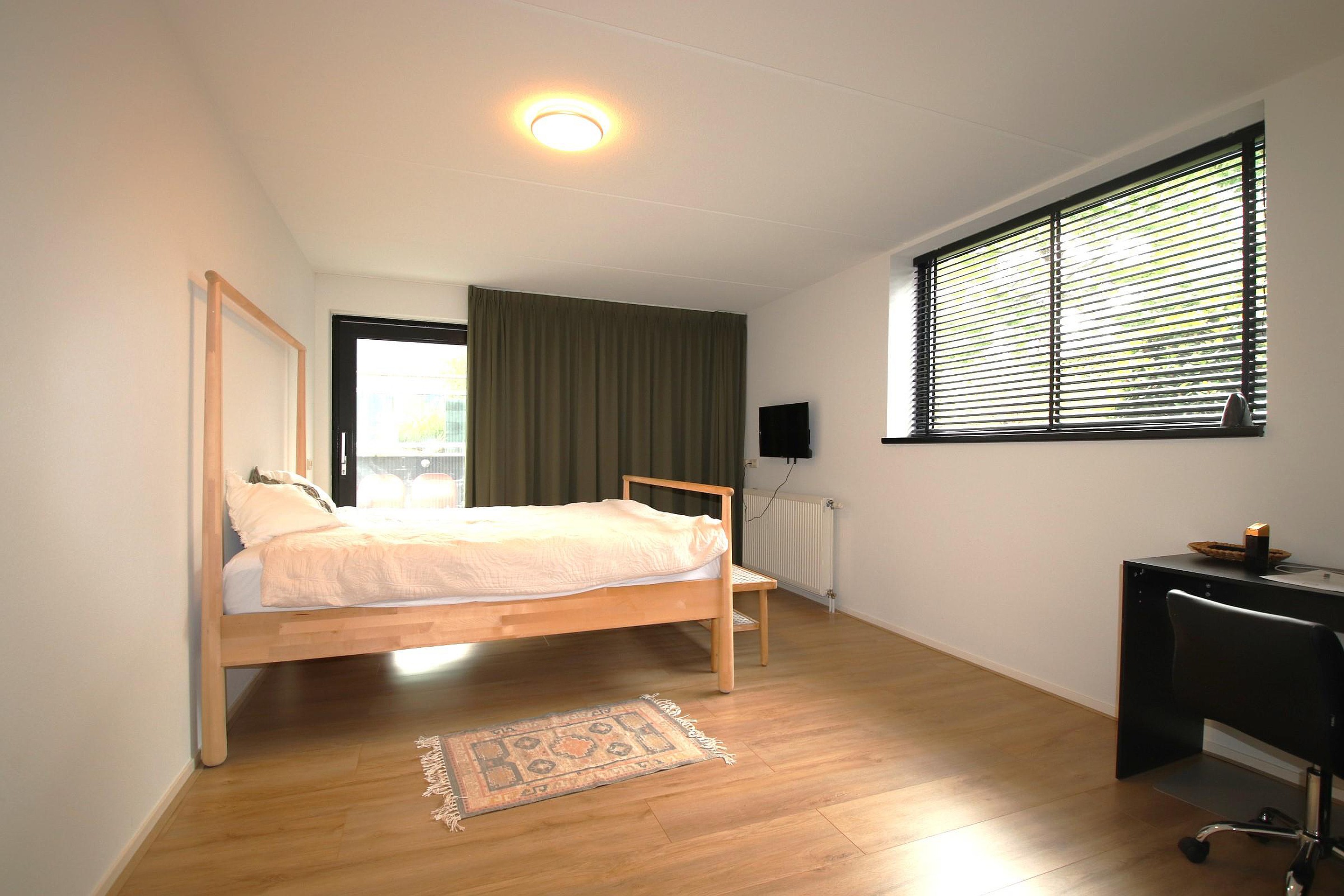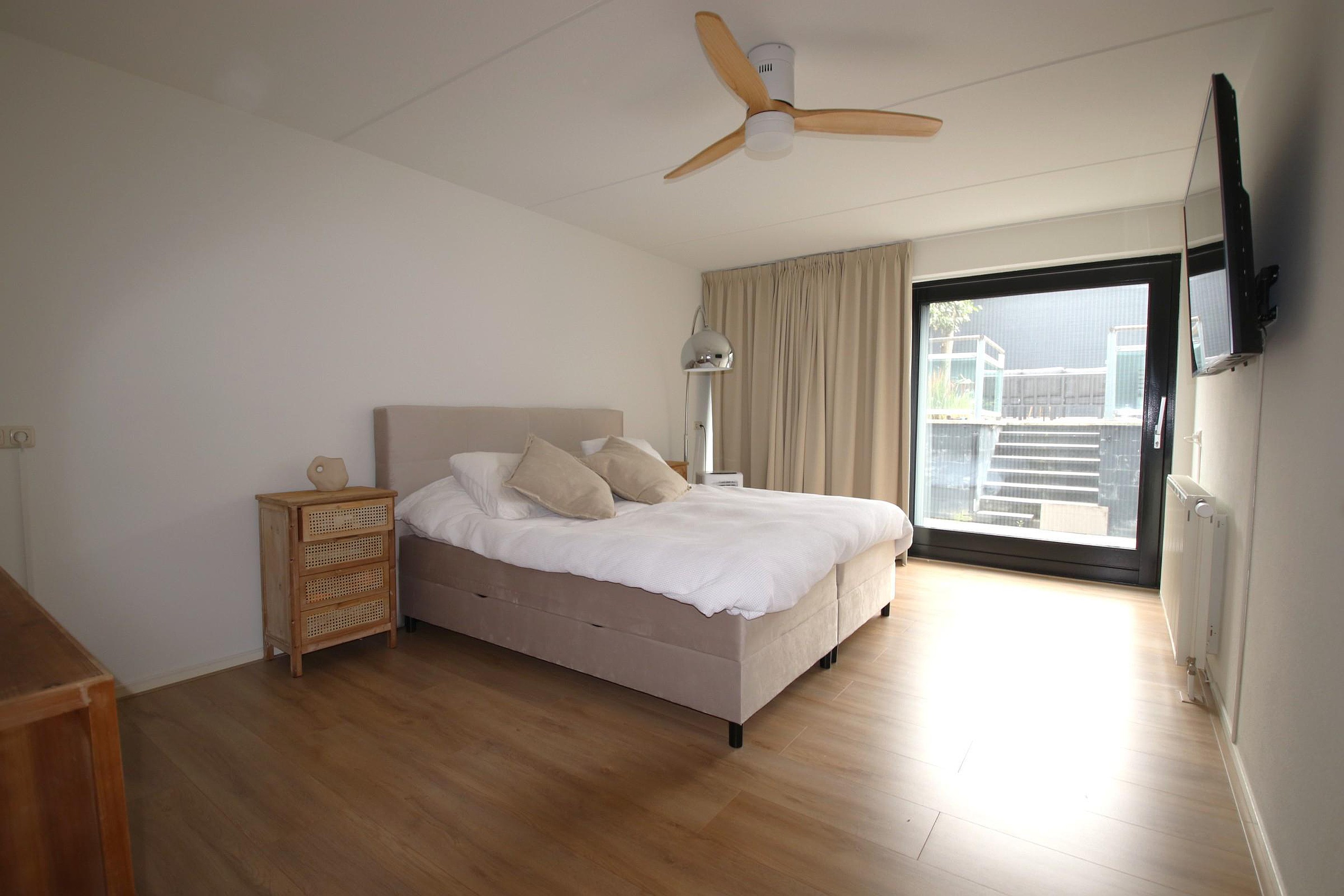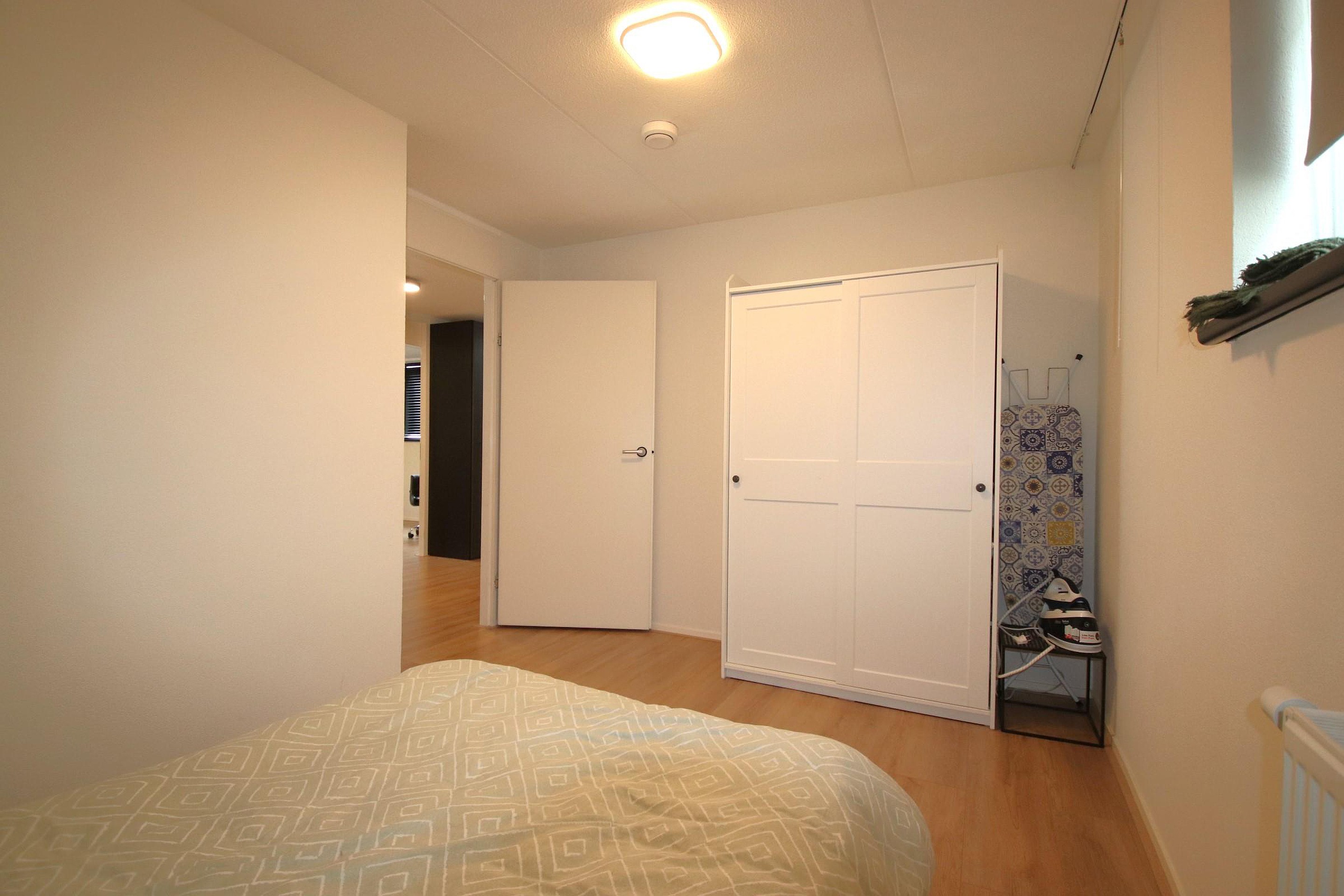 entree, trapneergang, centrale ruime hal met apart modern toilet en inkoopkledingkast, 3 royale slaapkamers, waarvan 2 met schuifpui en nette badkamer voorzien van ligbad, douchehoek en wastafelmeubel.