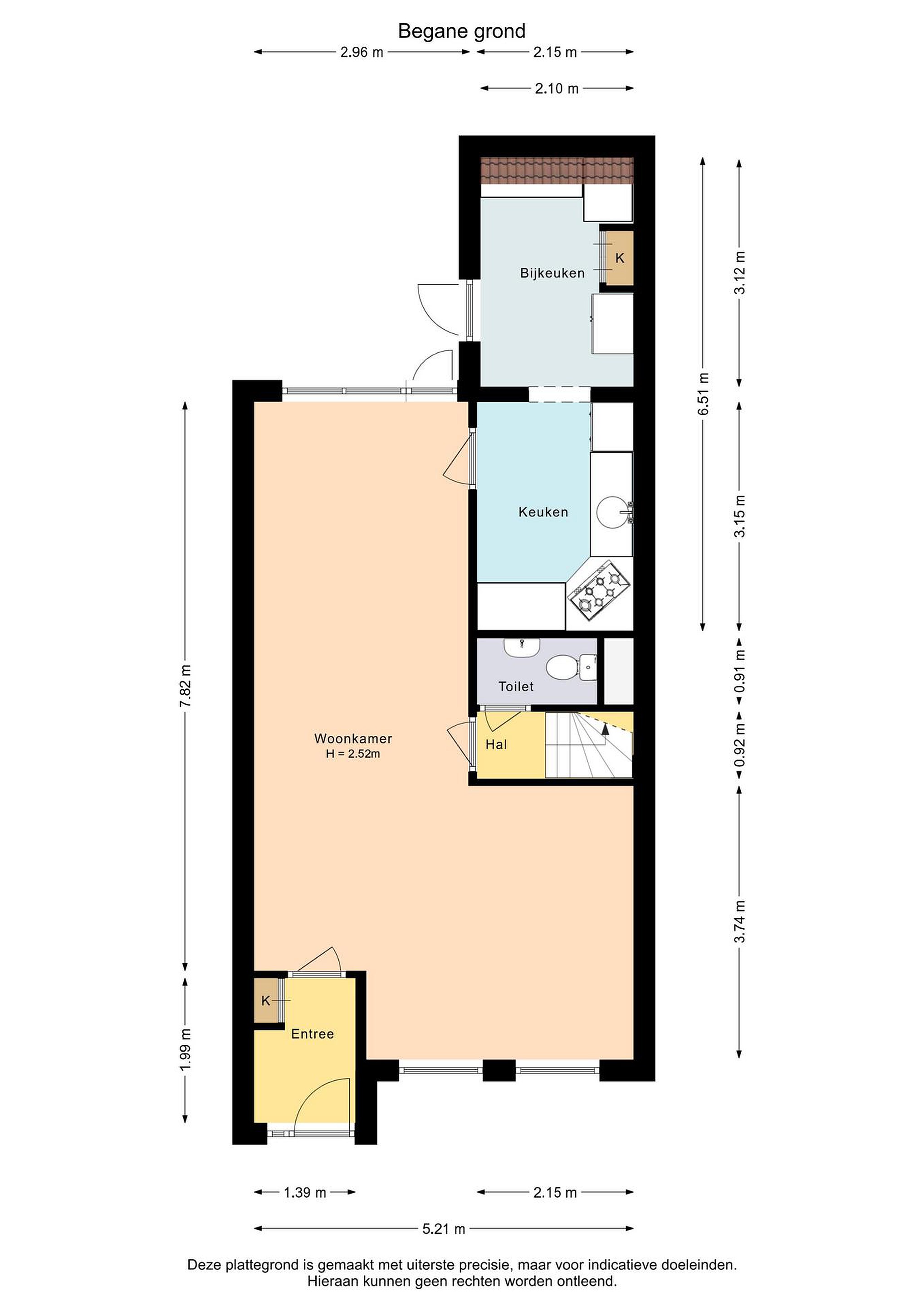 Begane grond Entree/hal, meterkast, woonkamer, hal met toilet en trapopgang, gesloten keuken voorzien van diverse inbouwapparatuur zoals: combi-oven, vaatwasser, 5-pits gasfornuis. Bijkeuken met deur naar de achtertuin.