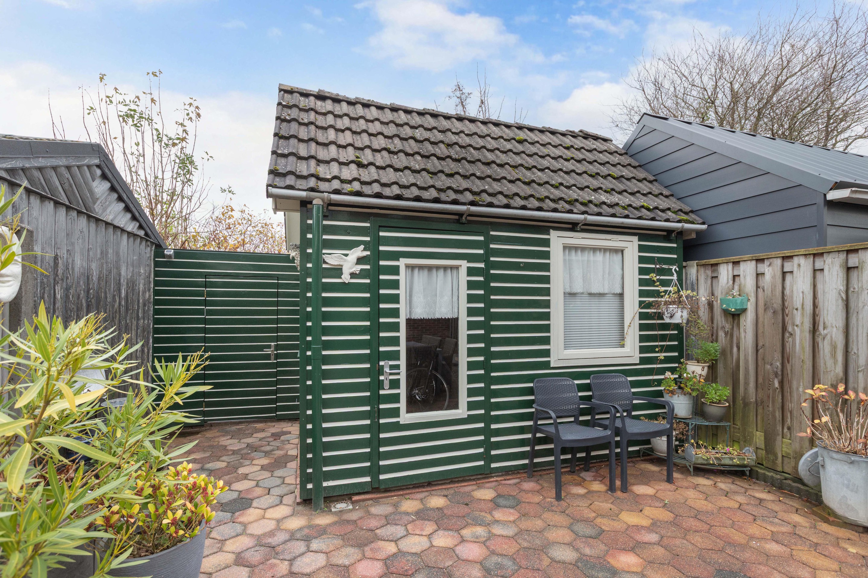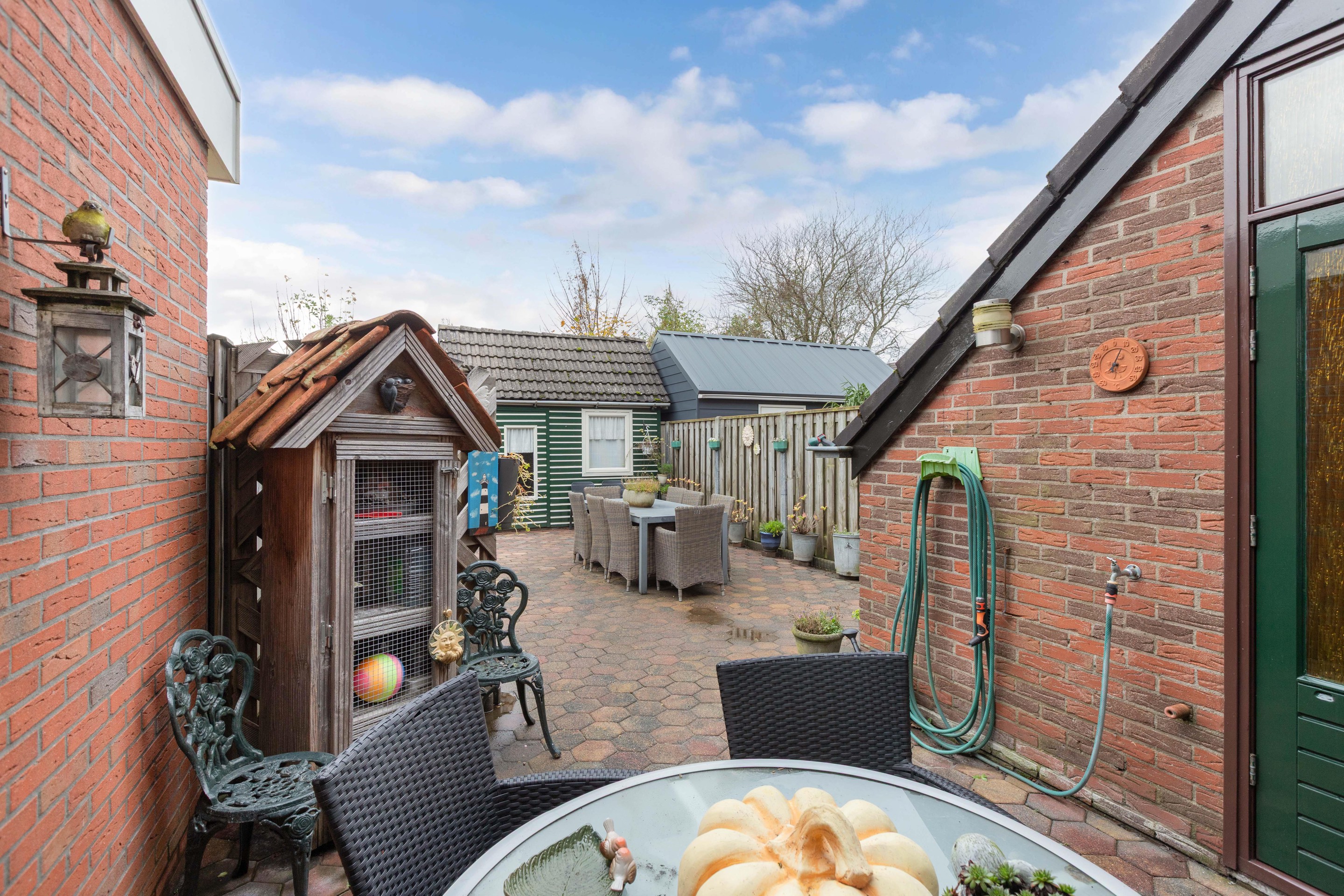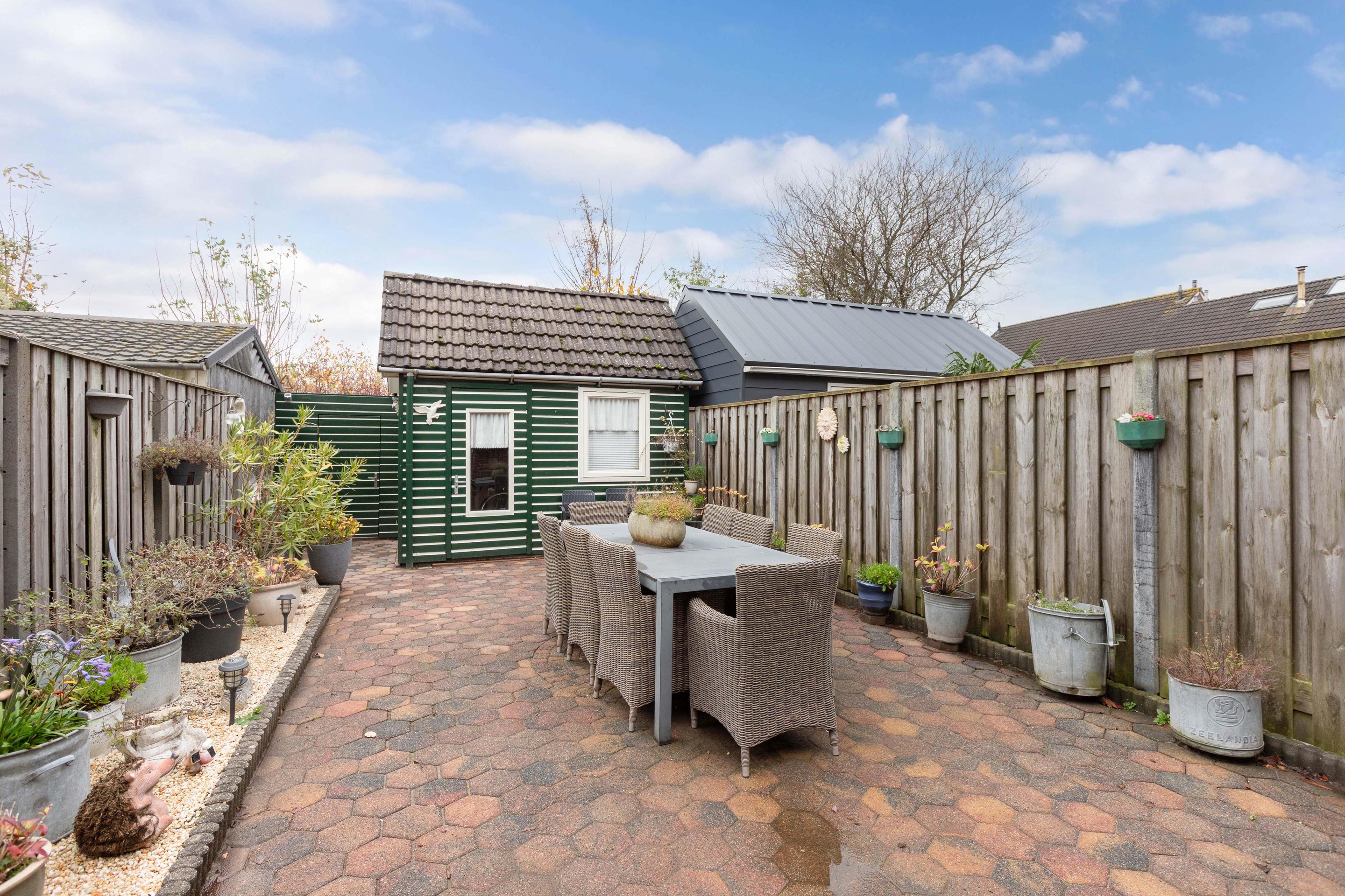 Beneden beschikt de woning over een sfeervolle woonkamer, een handige bijkeuken en een fijne achtertuin op het oosten, met een externe berging voor fietsen en opslag. Hier geniet je van ochtendzon en rust.