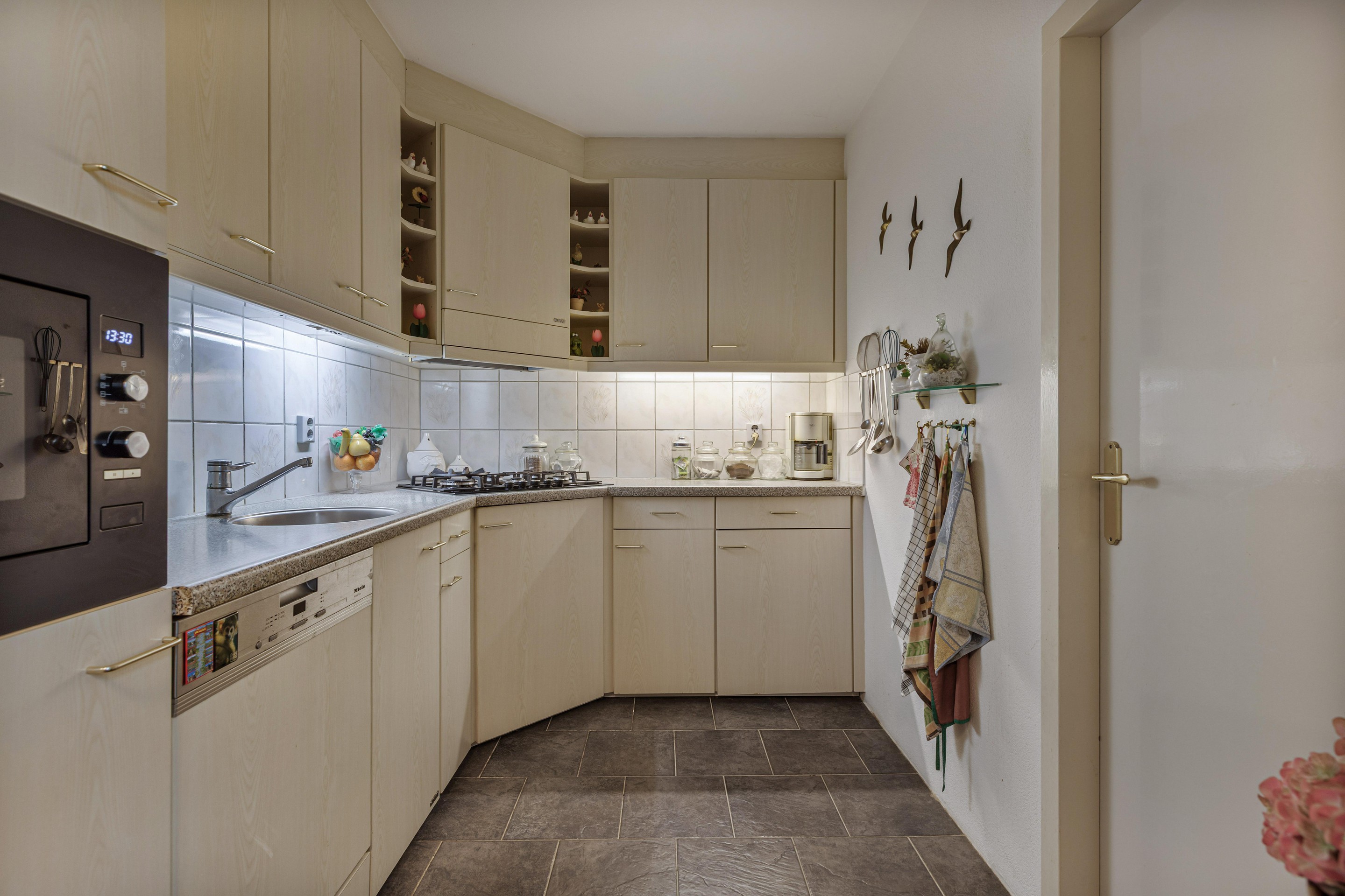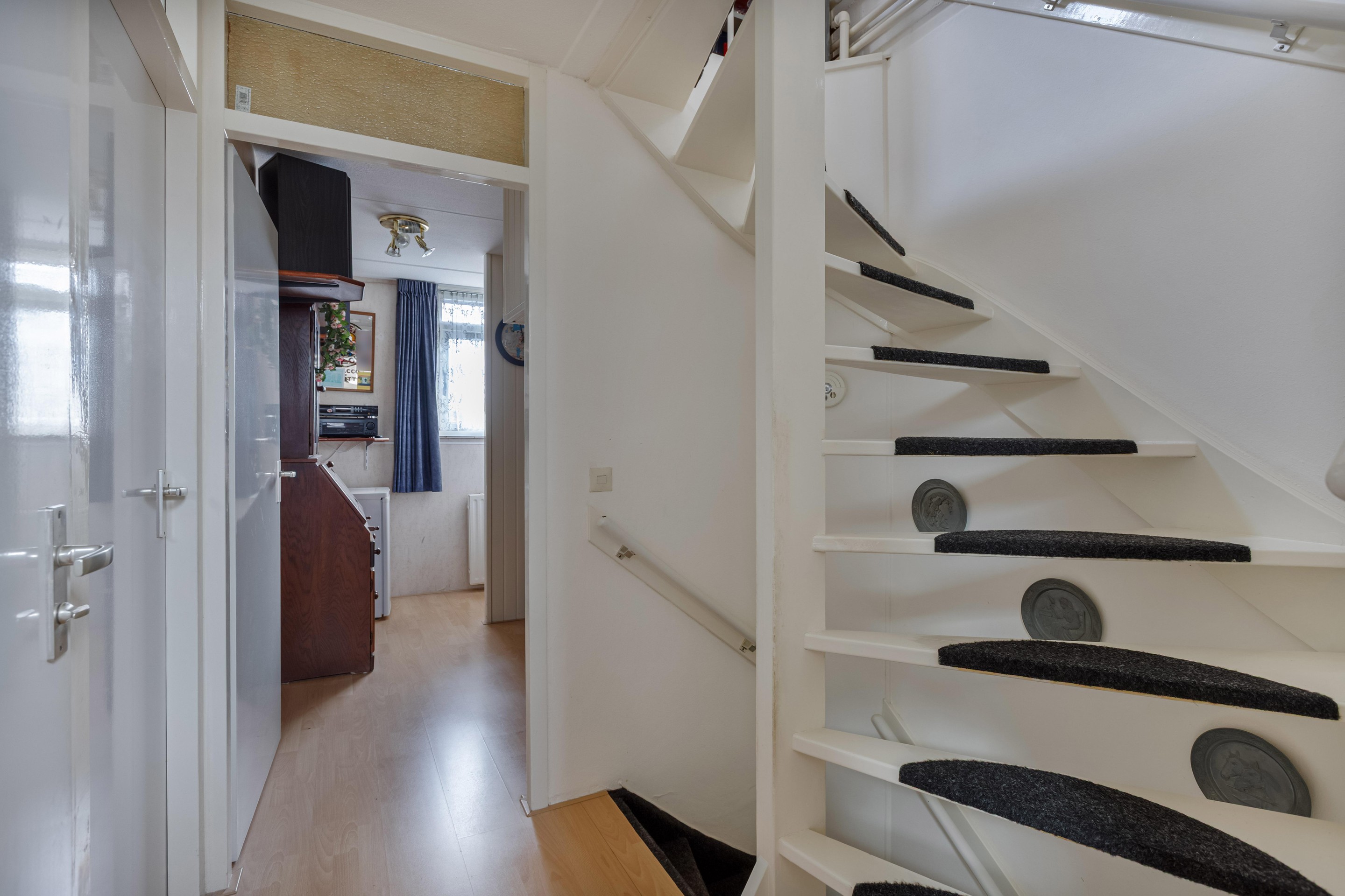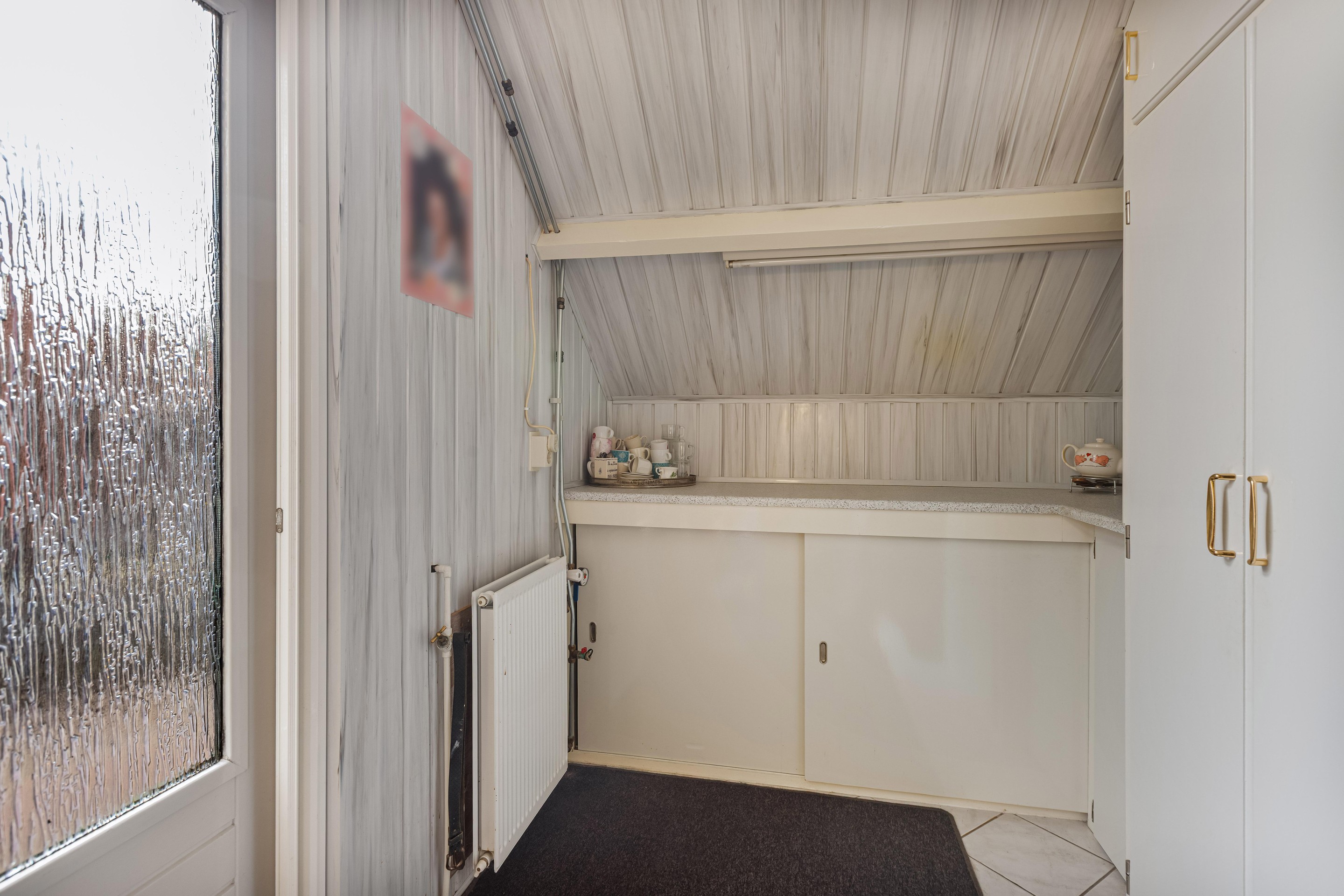 Beneden beschikt de woning over een sfeervolle woonkamer, een handige bijkeuken en een fijne achtertuin op het oosten, met een externe berging voor fietsen en opslag. Hier geniet je van ochtendzon en rust.