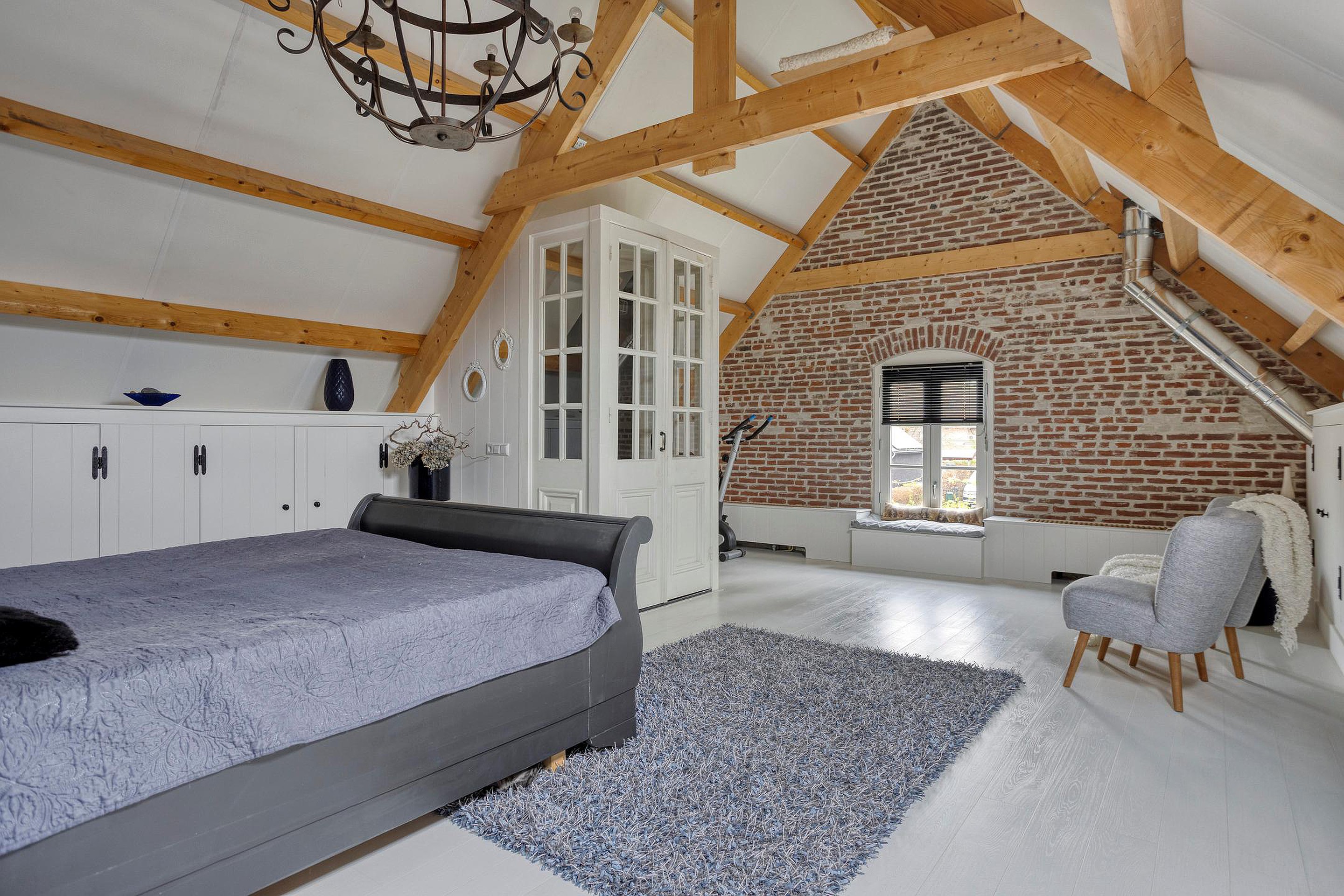Op de eerste verdieping wacht een enorme slaapkamer van 35 m2 met inbouwkasten en een luxe badkamer met sauna. Deze verdieping biedt bovendien de mogelijkheid om een extra slaapkamer te creëren.