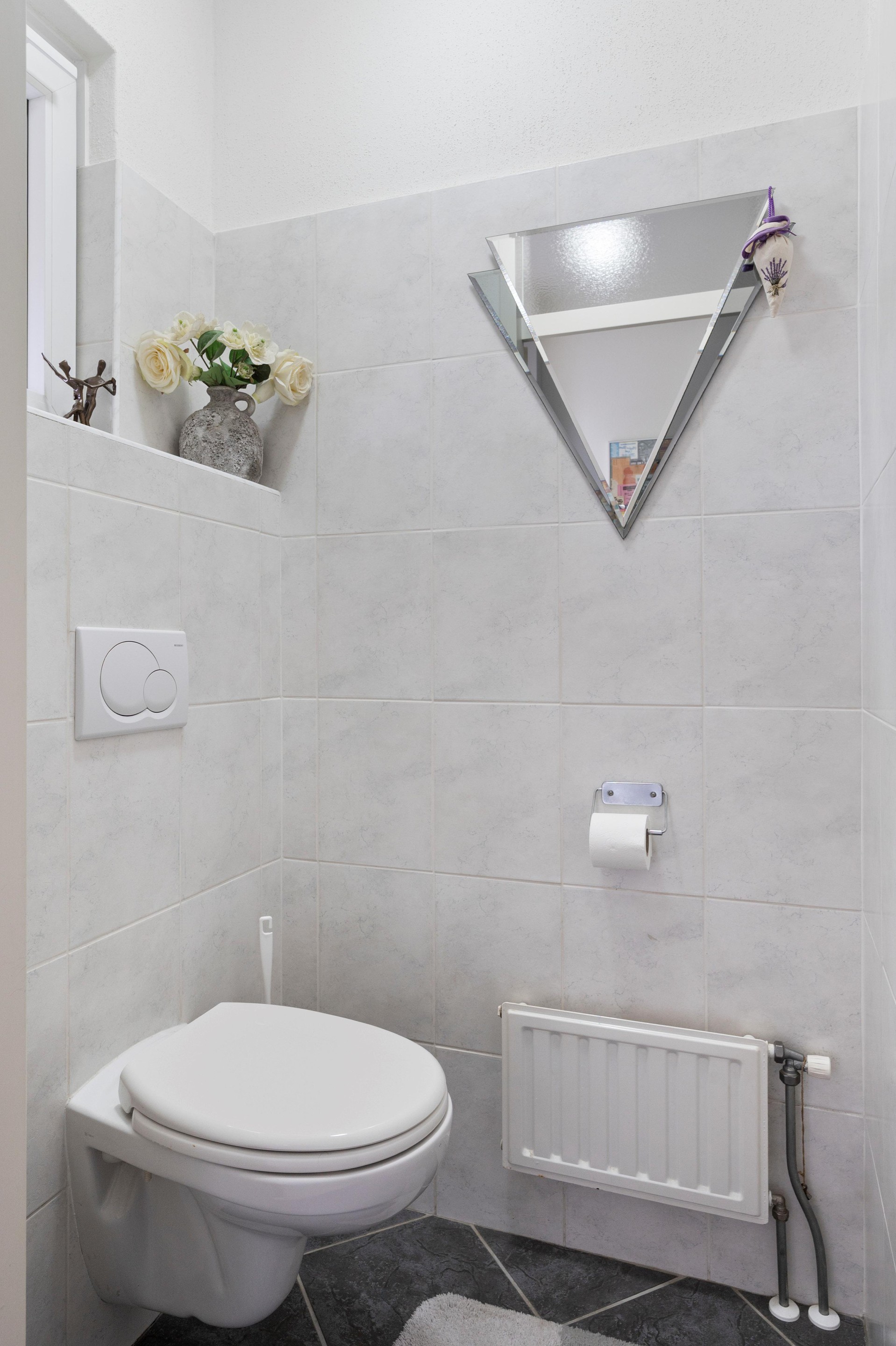 De gang, woonkamer en de keuken beschikken over vloerverwarming;