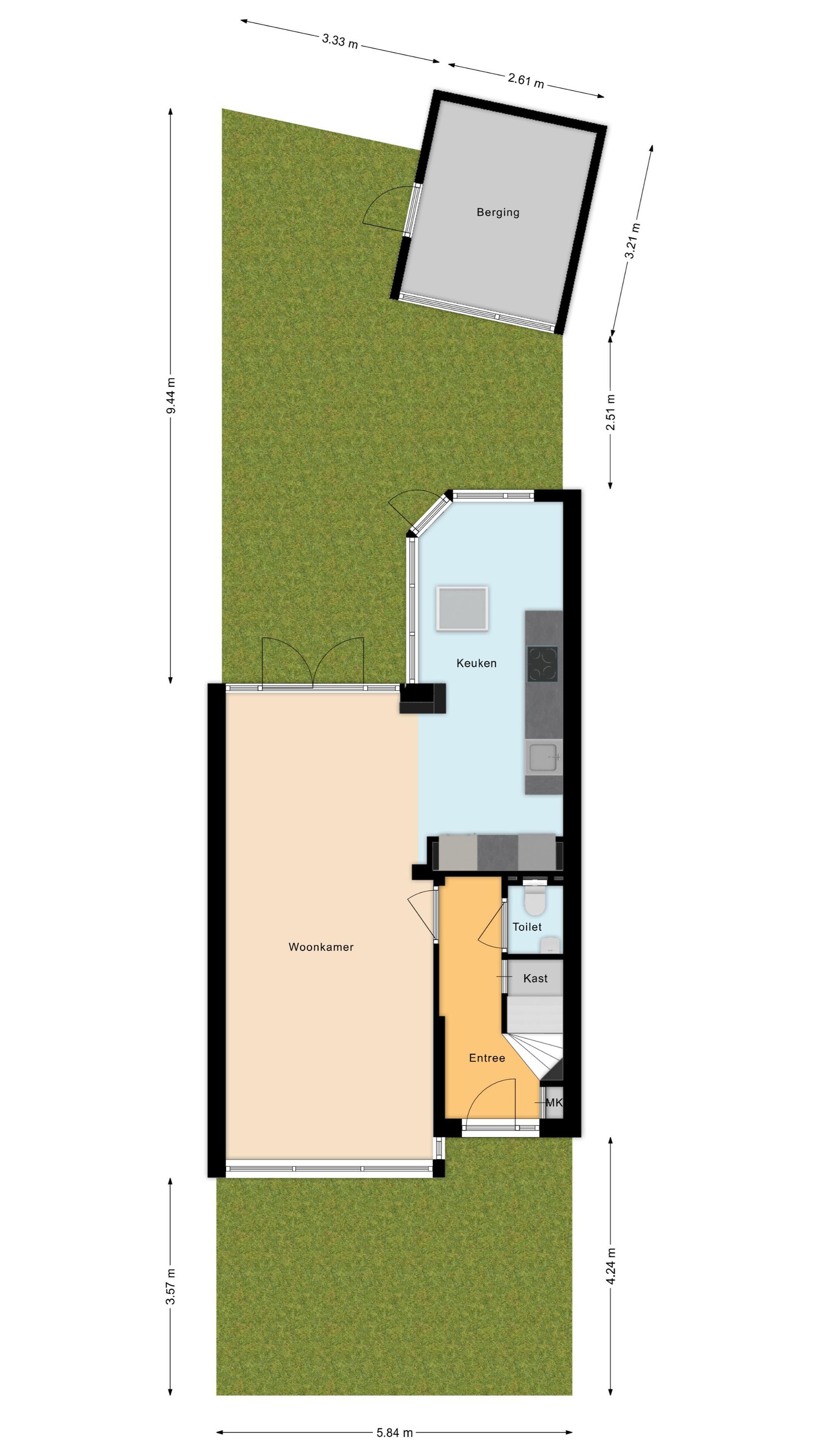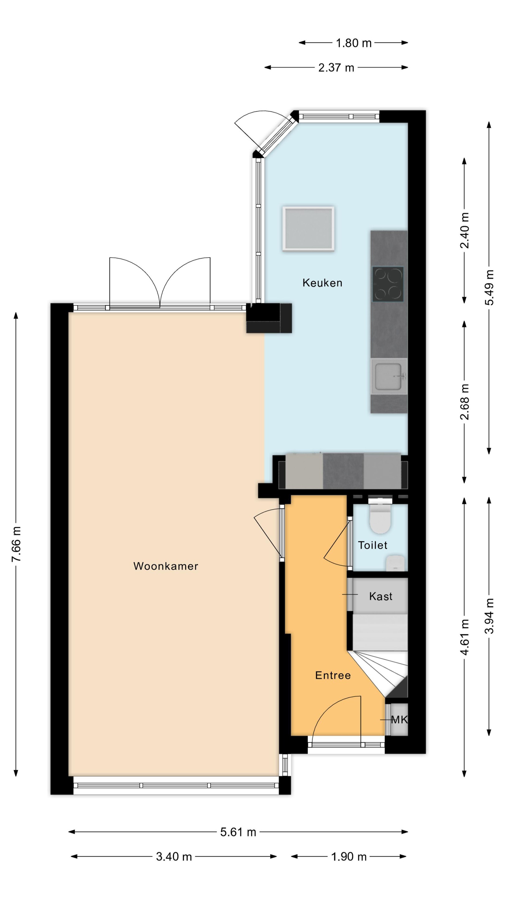 Begane grond Entree, hal, meterkast en vaste trap naar de 1e verdieping.
