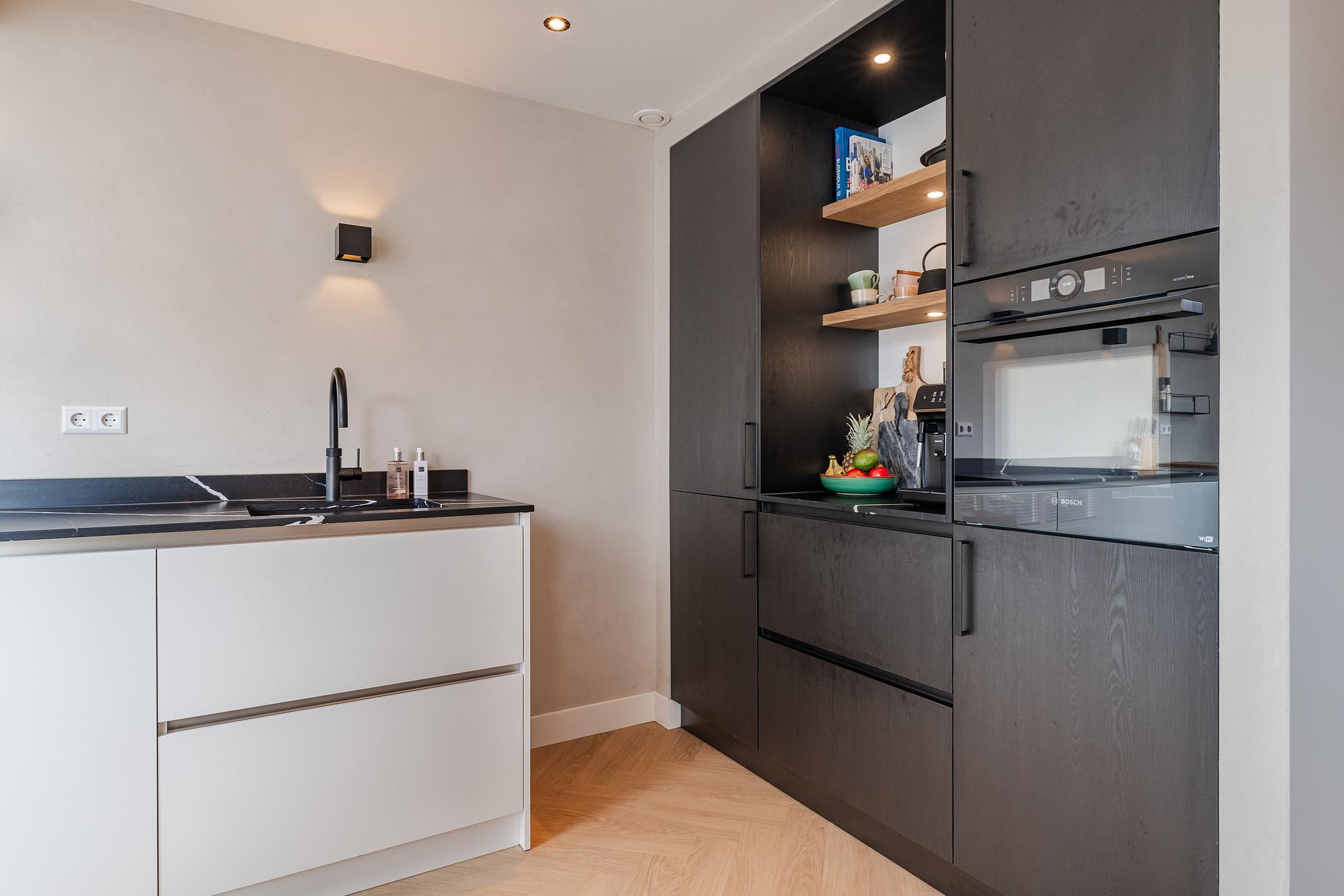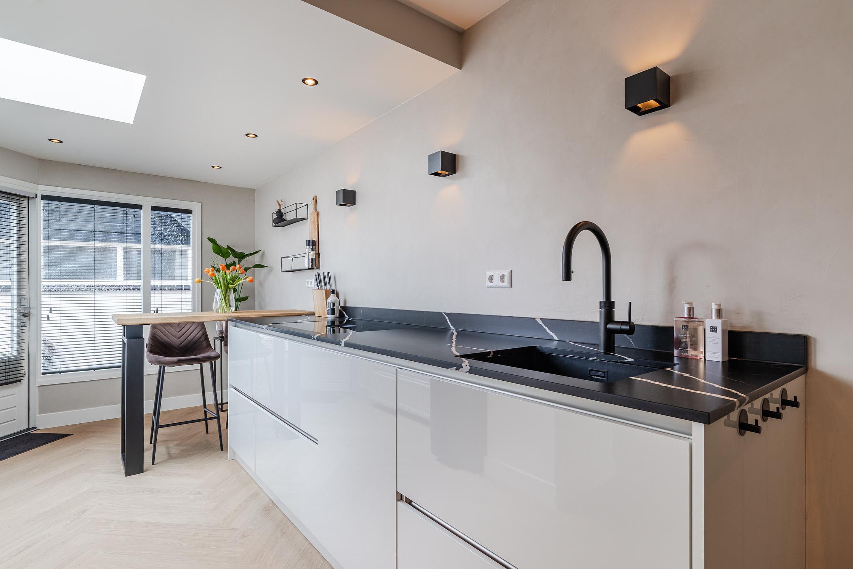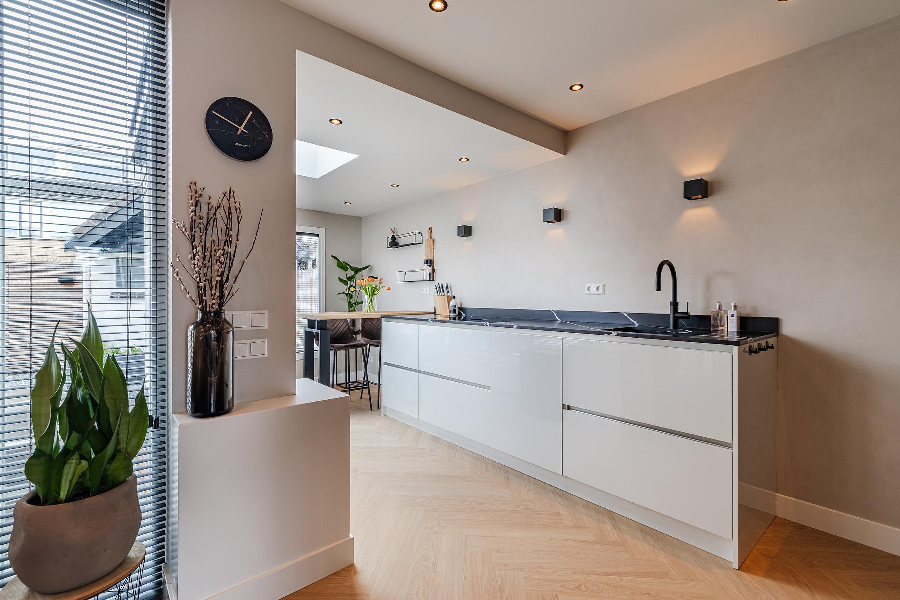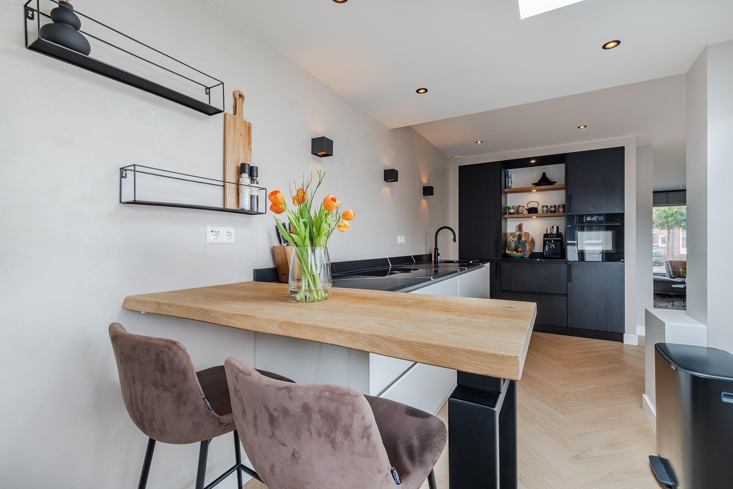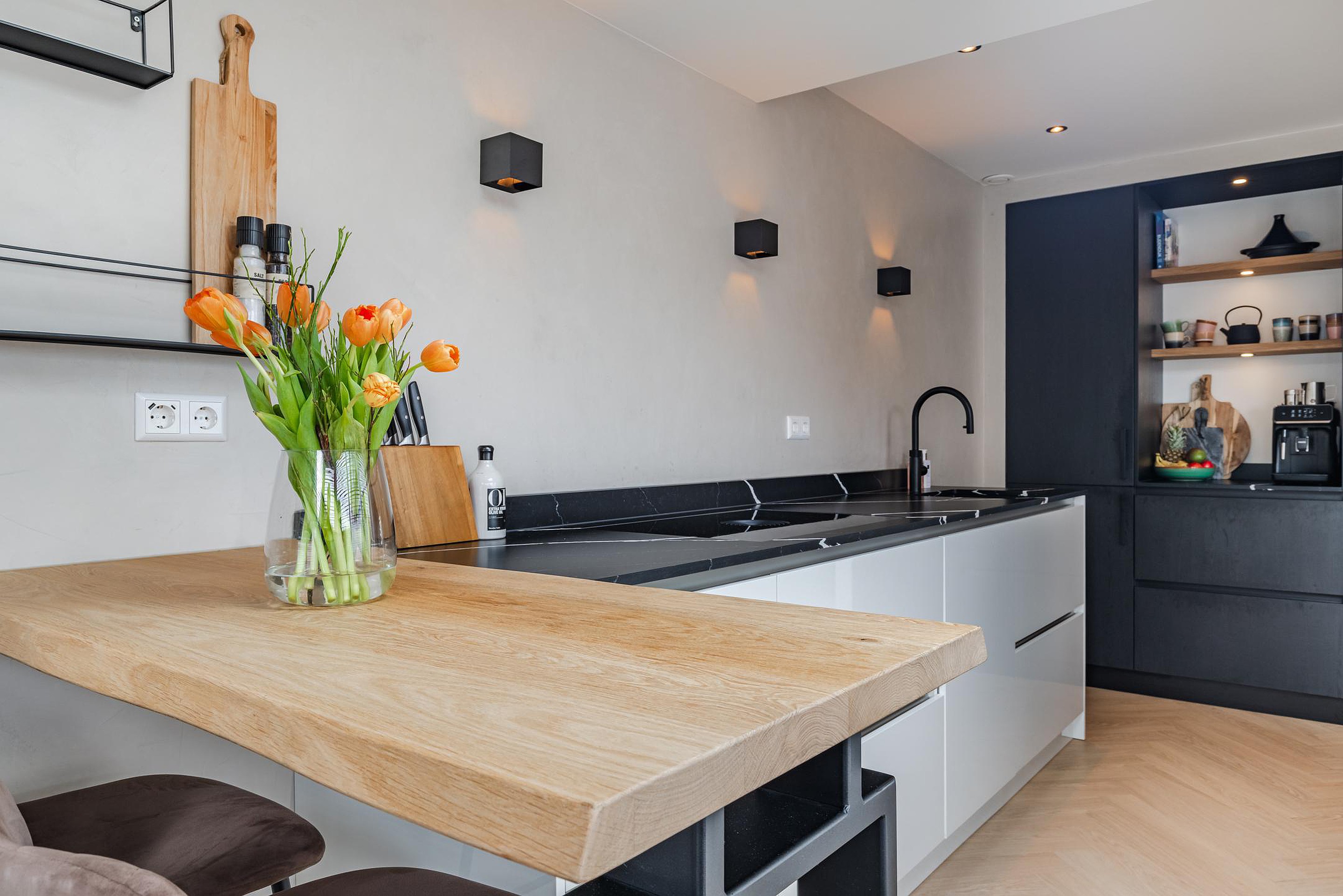 Luxe uitgebouwde keuken (2021) voorzien van Quooker, inductiekookplaat, combioven, vaatwasser en koel-vriescombinatie.