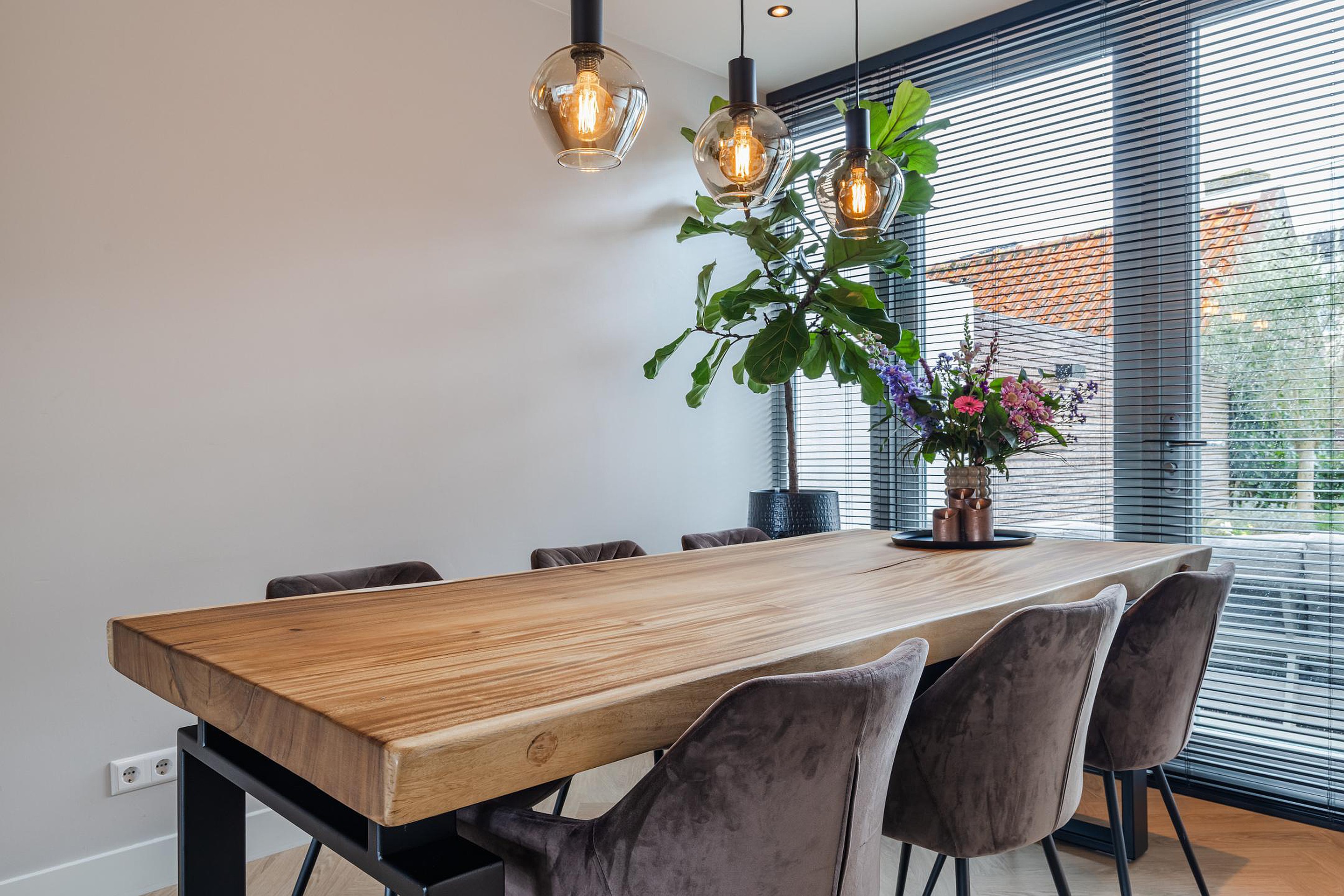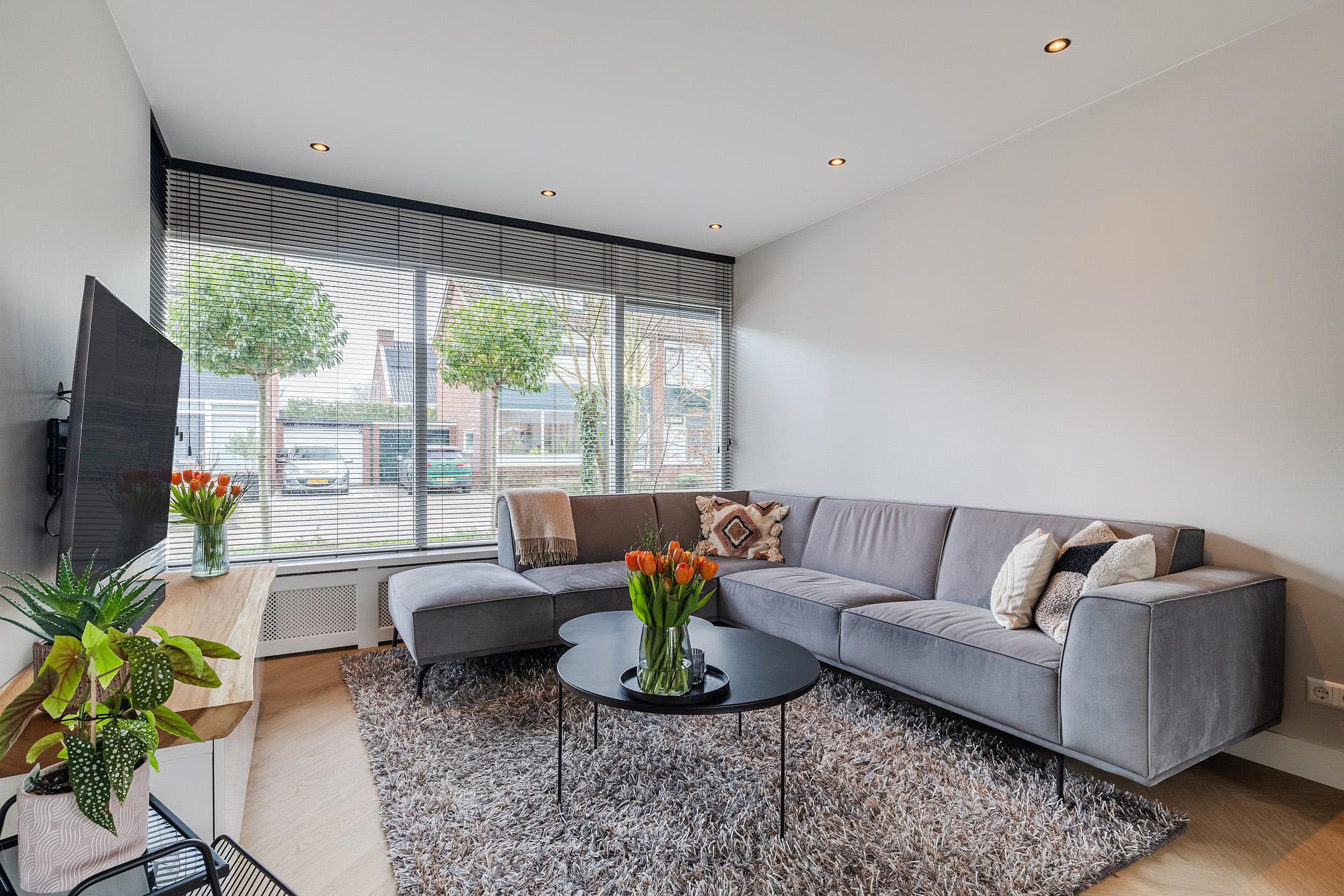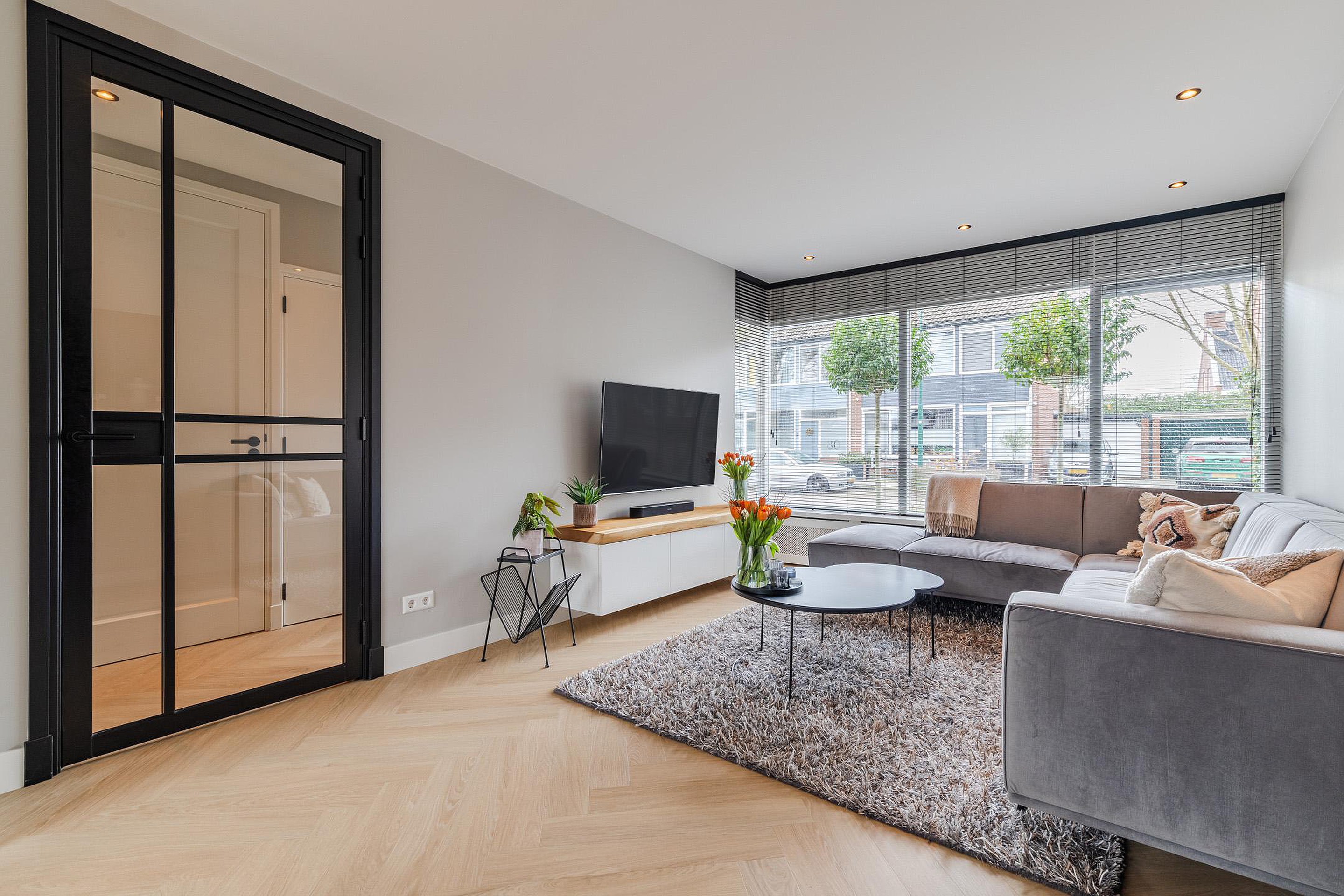 Lichte doorzon woonkamer met vloerwarming en openslaande deuren naar de tuin.