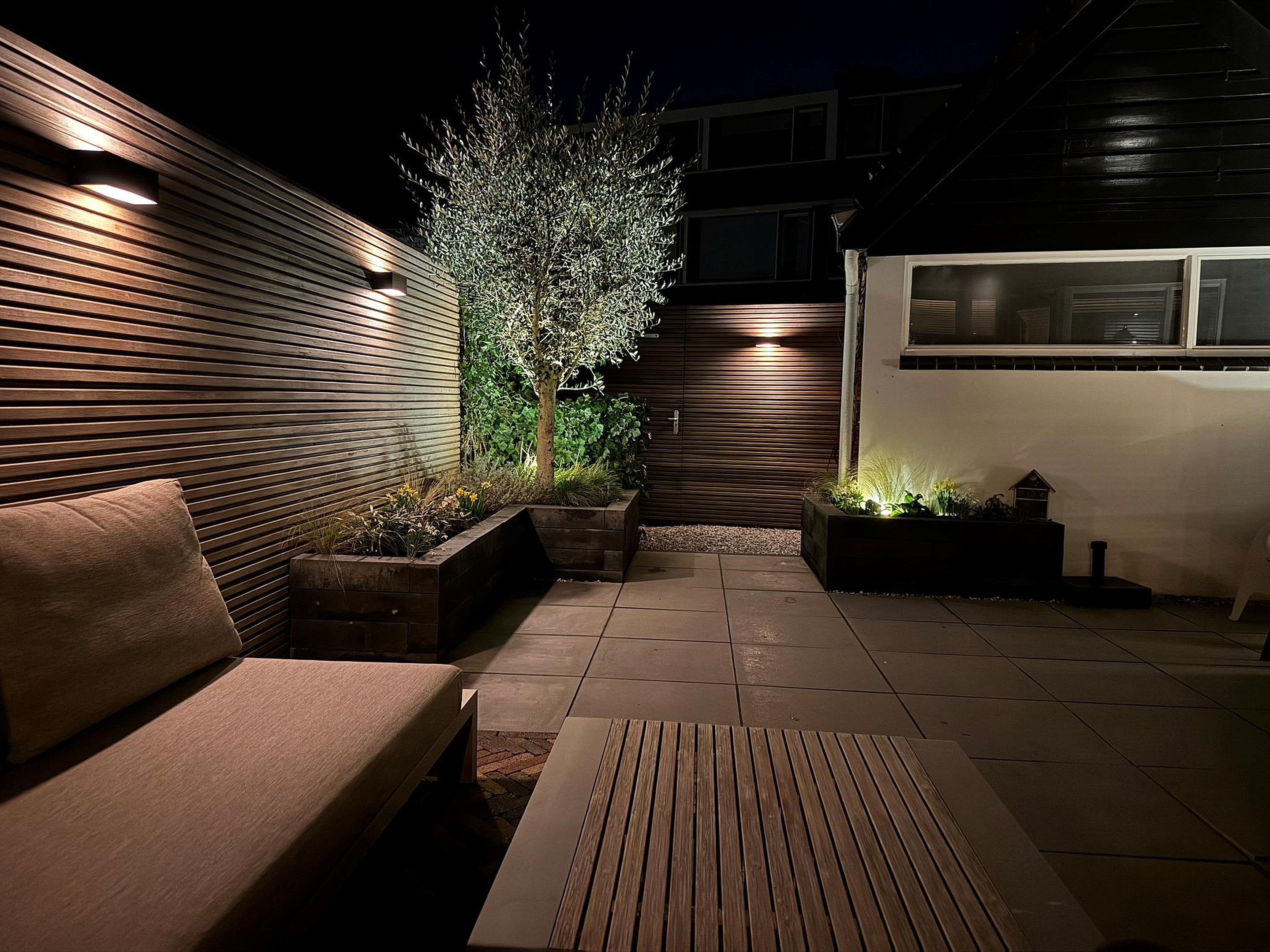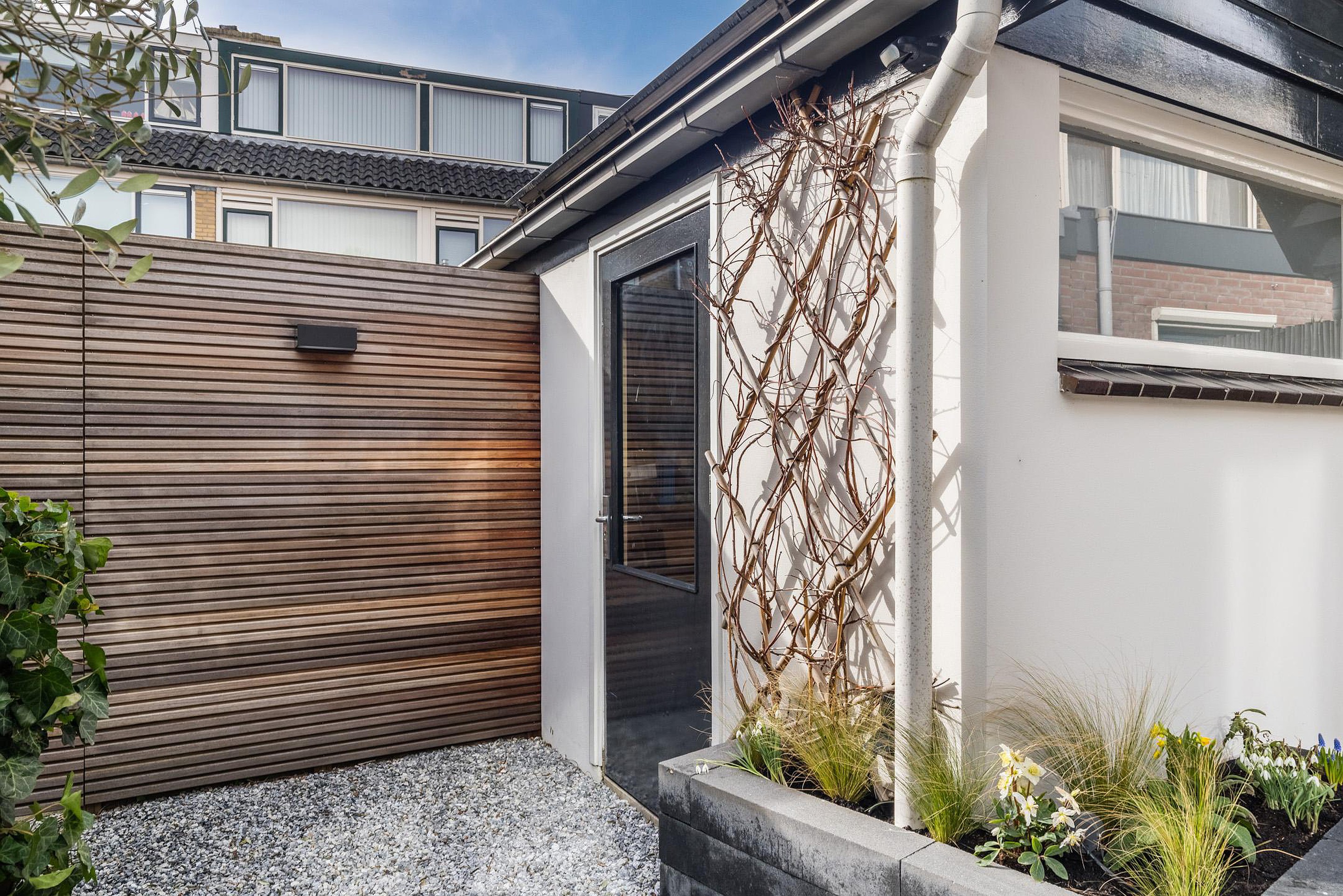 De zonnige achtertuin ligt op het zuidwesten heeft een berging en een achterom.