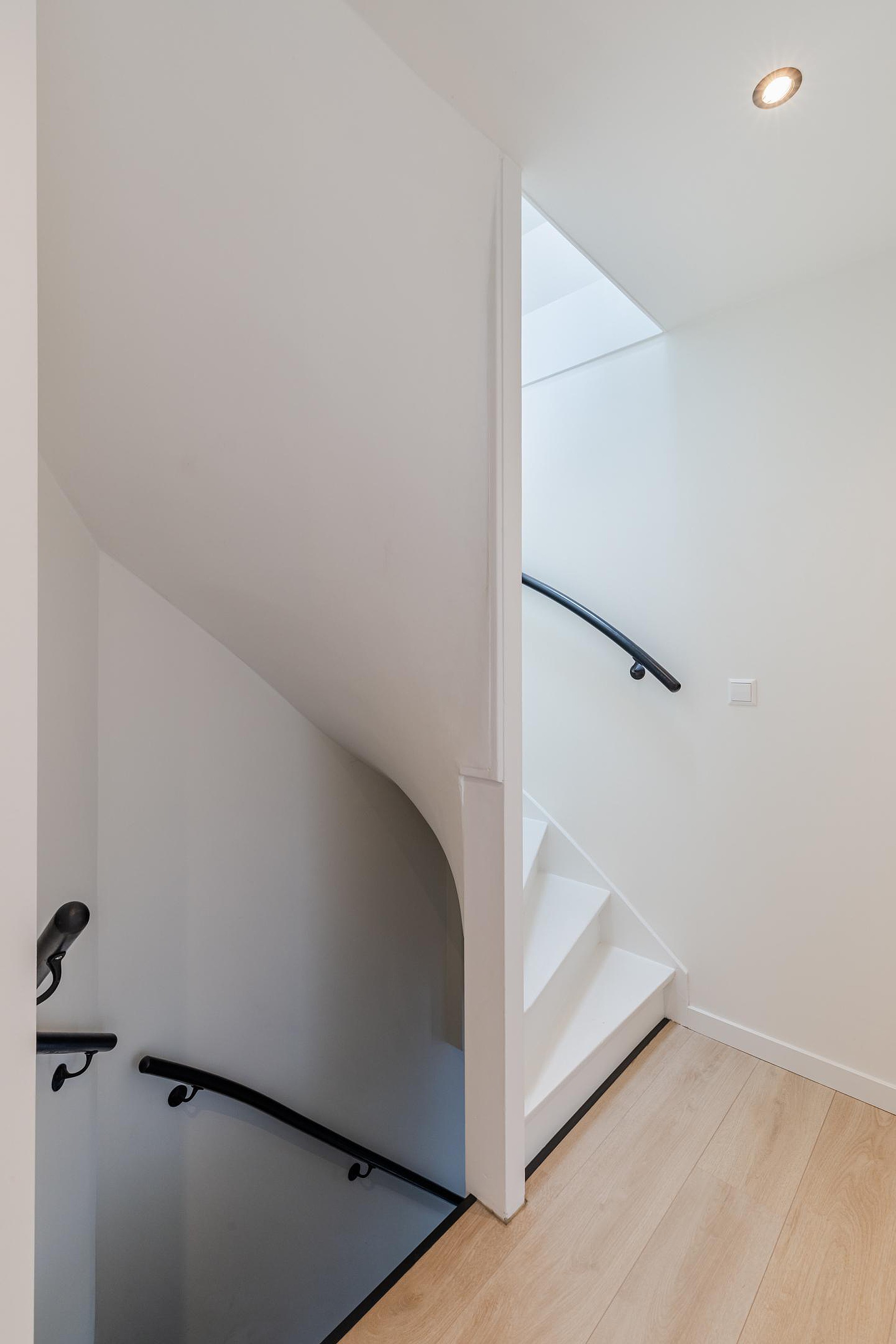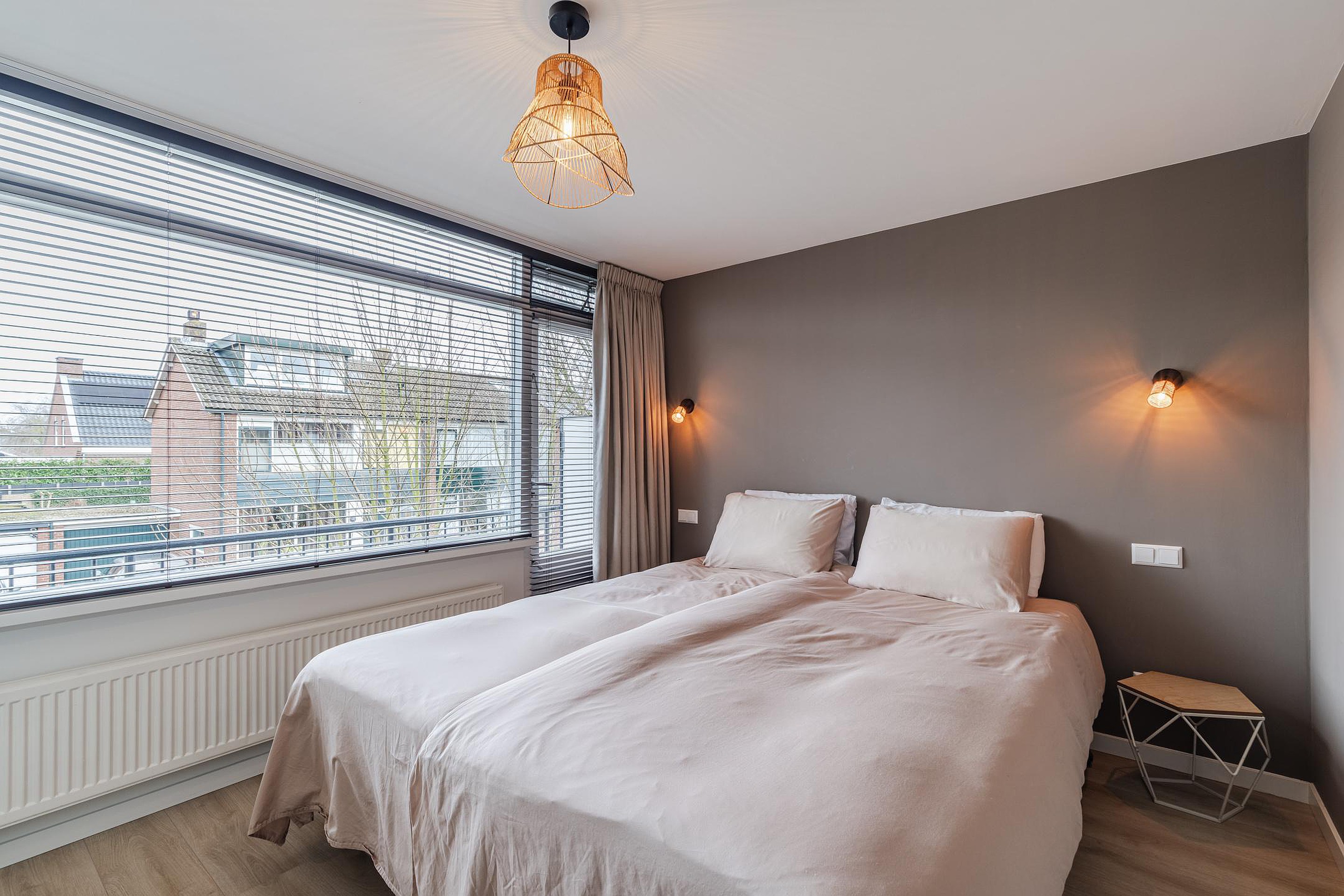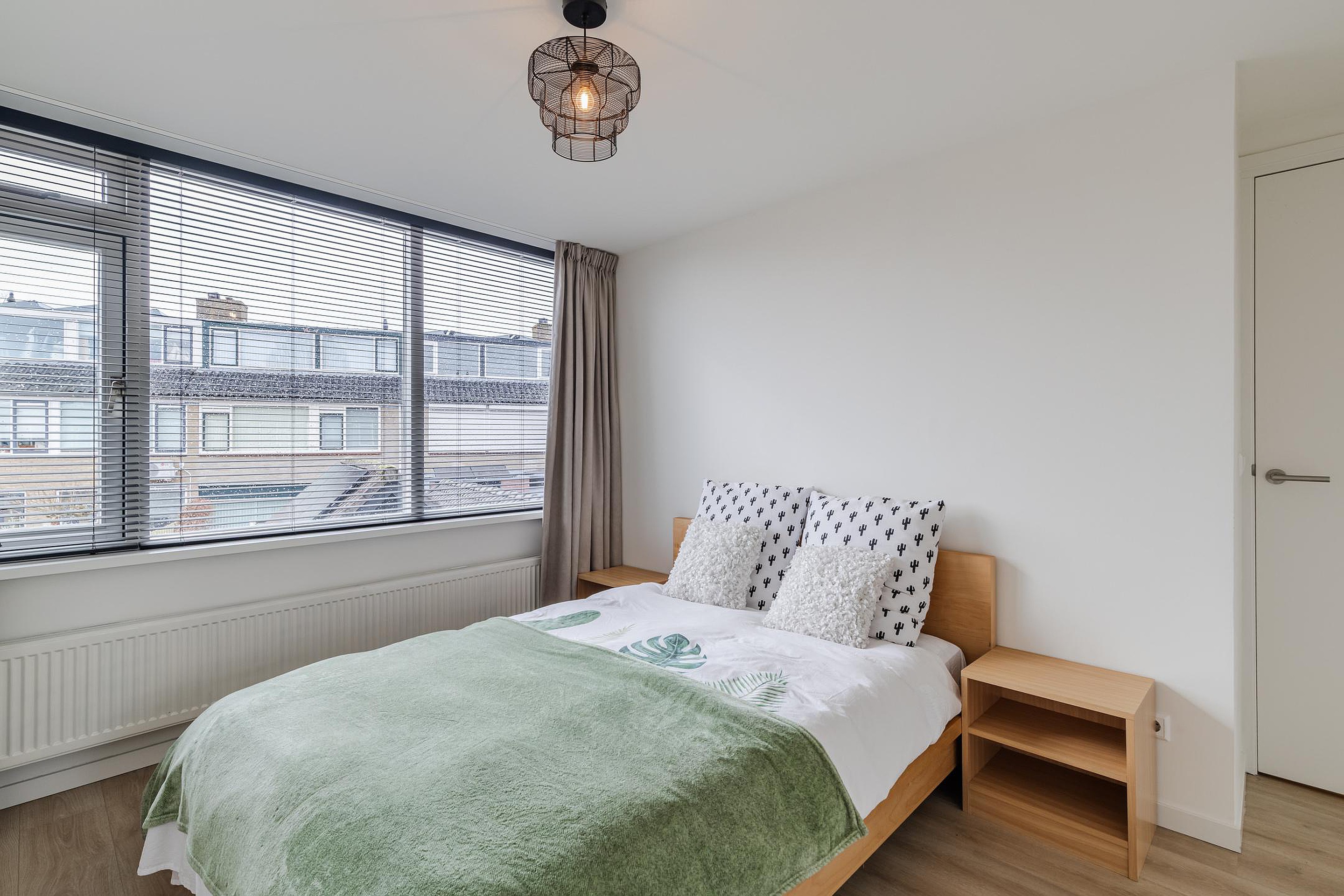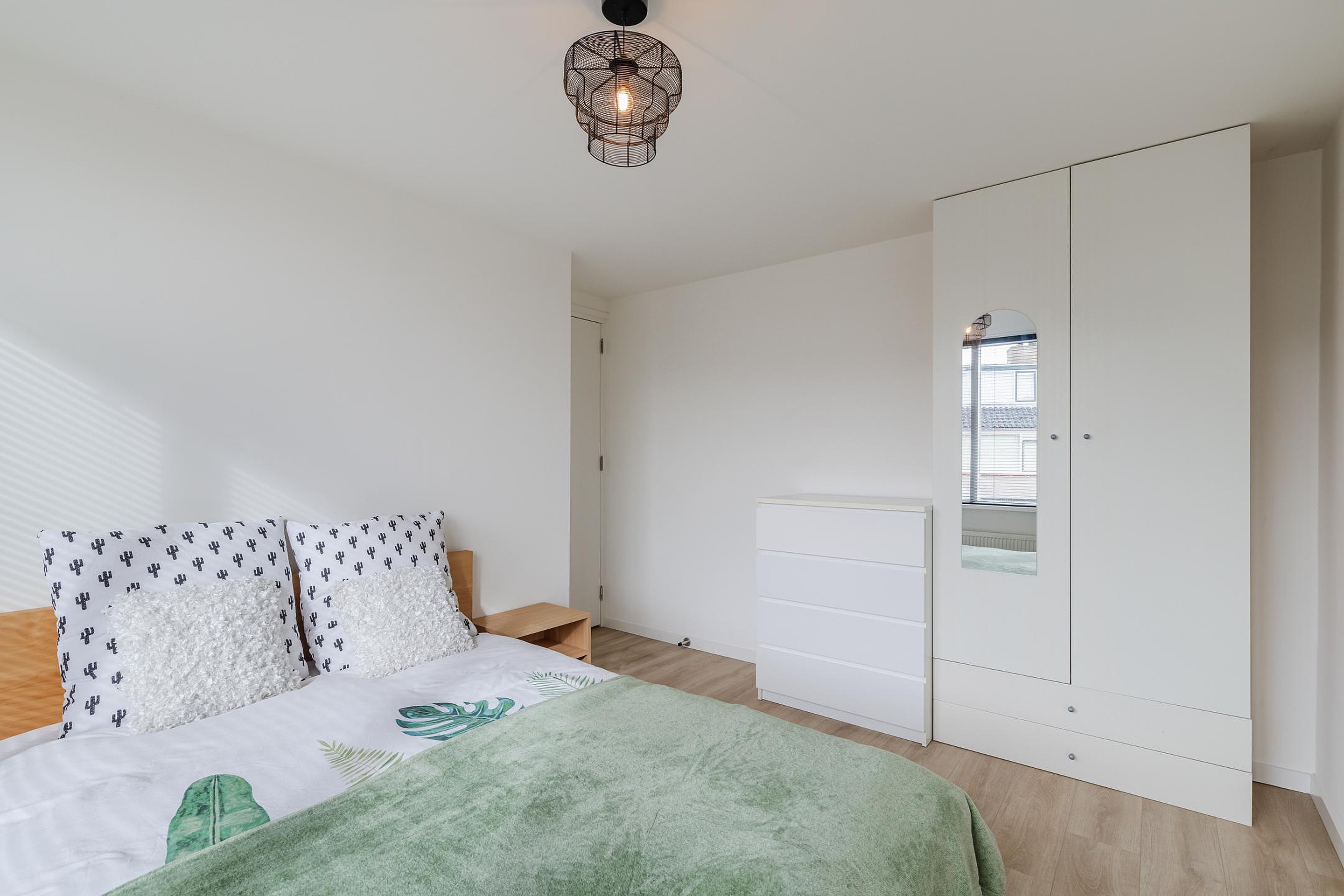 De slaapkamer aan de voorzijde heeft een inloopkast en een dakterras.