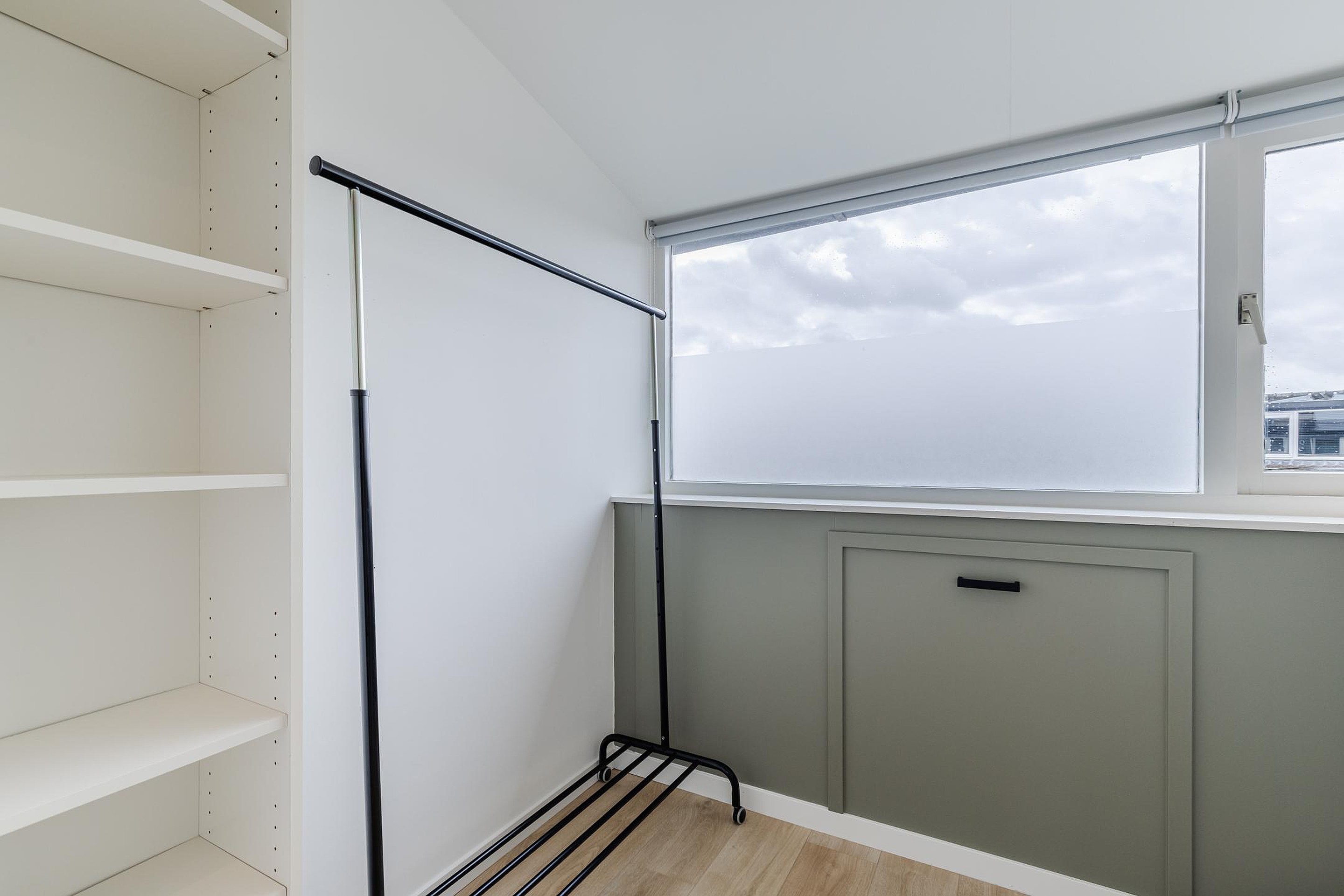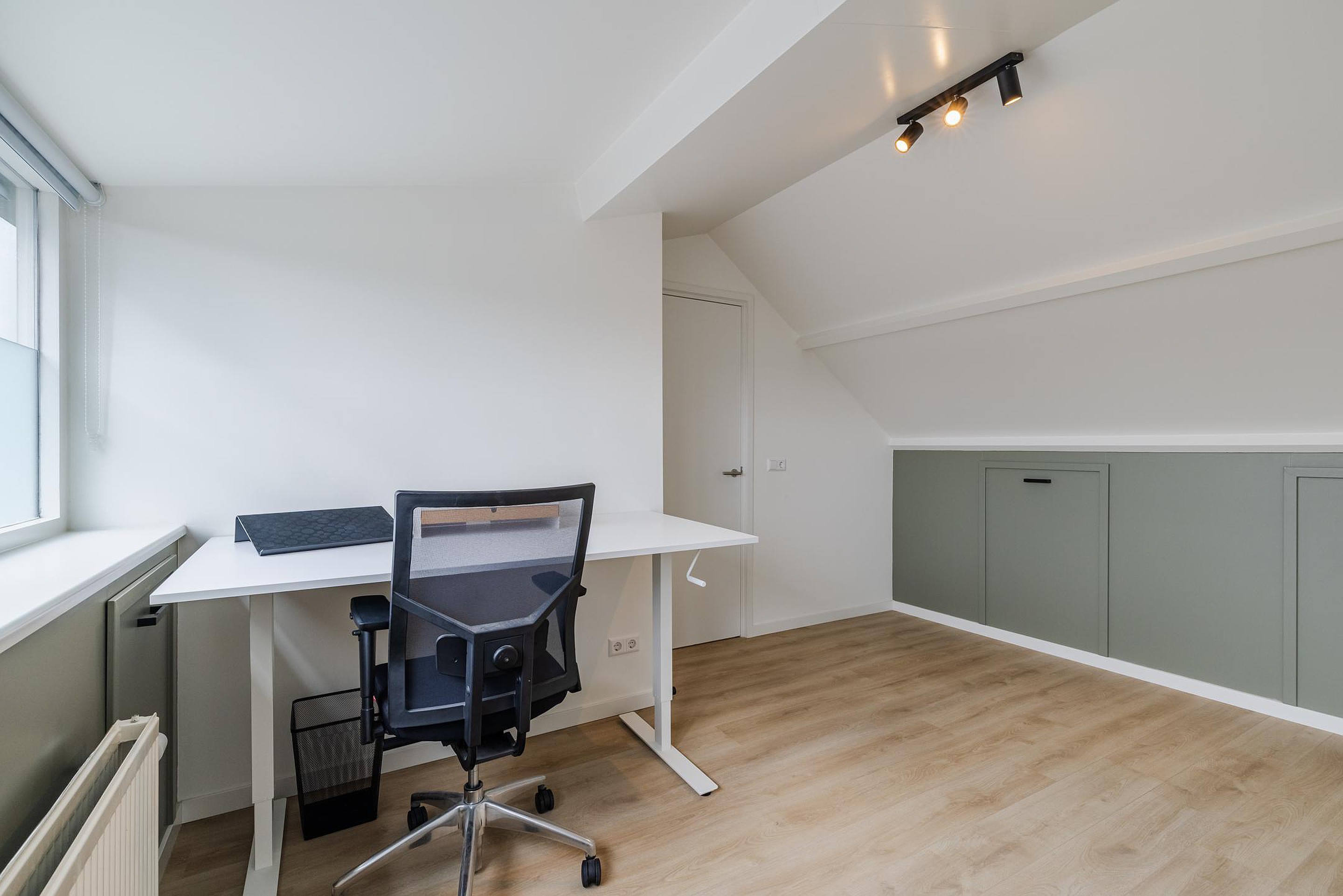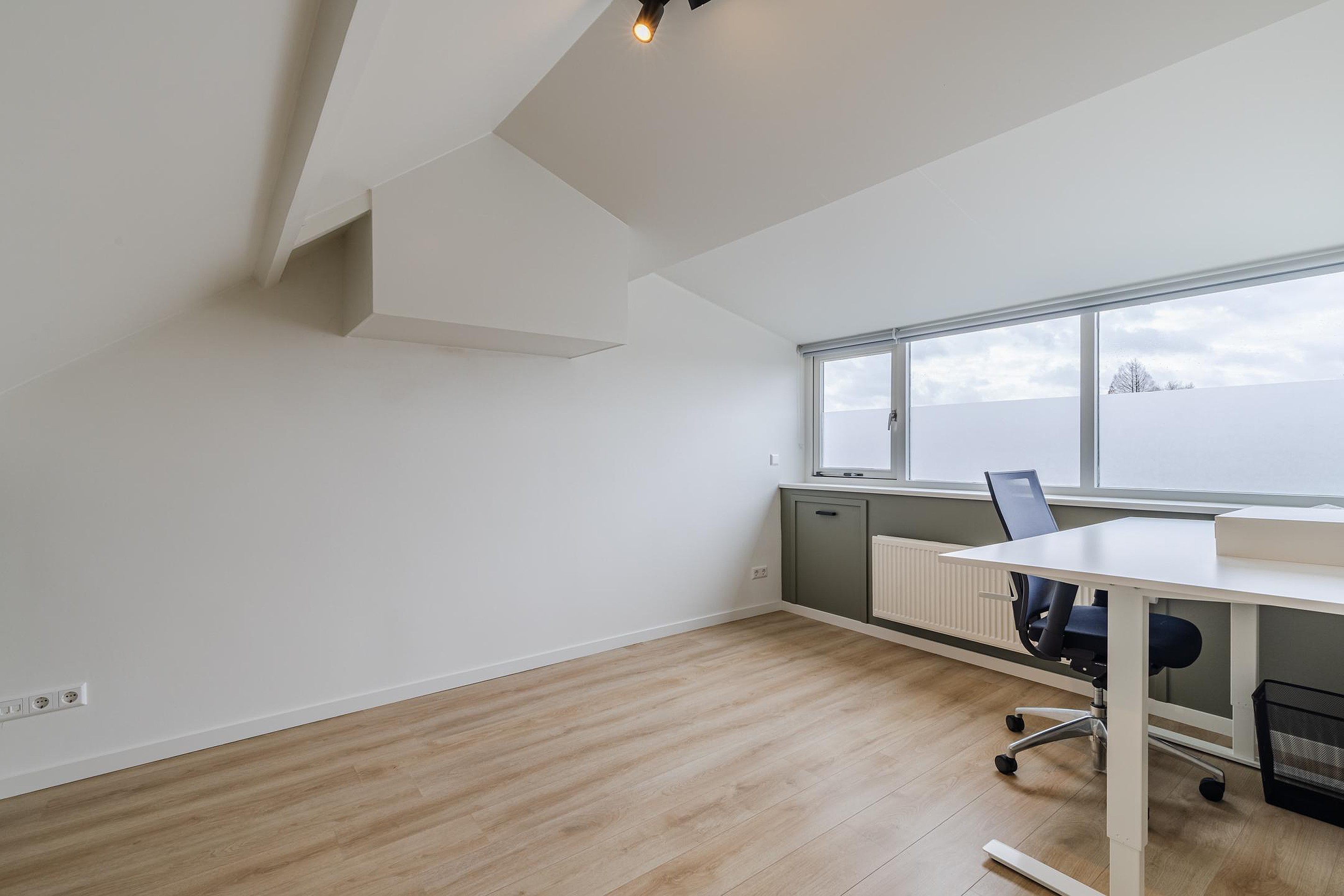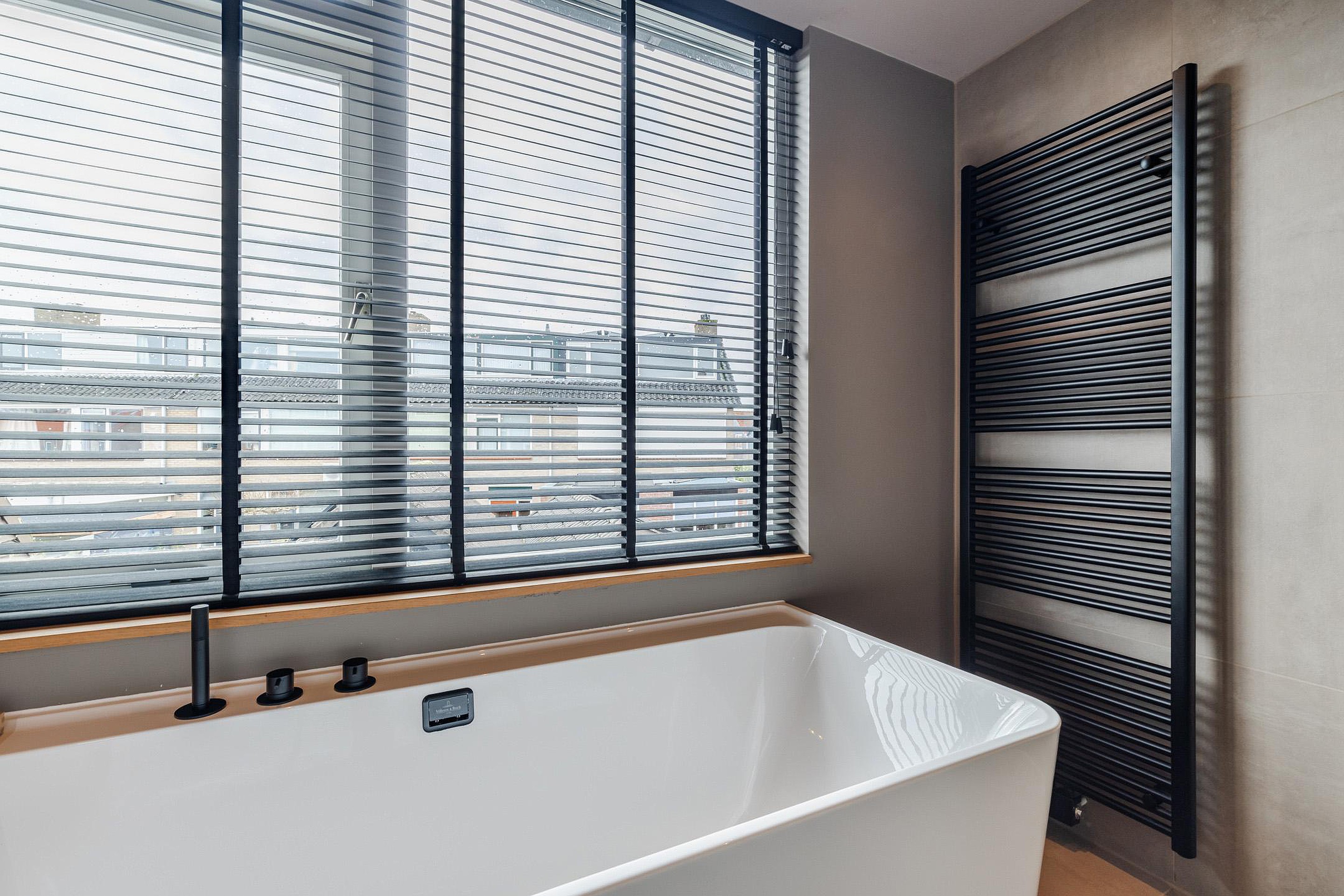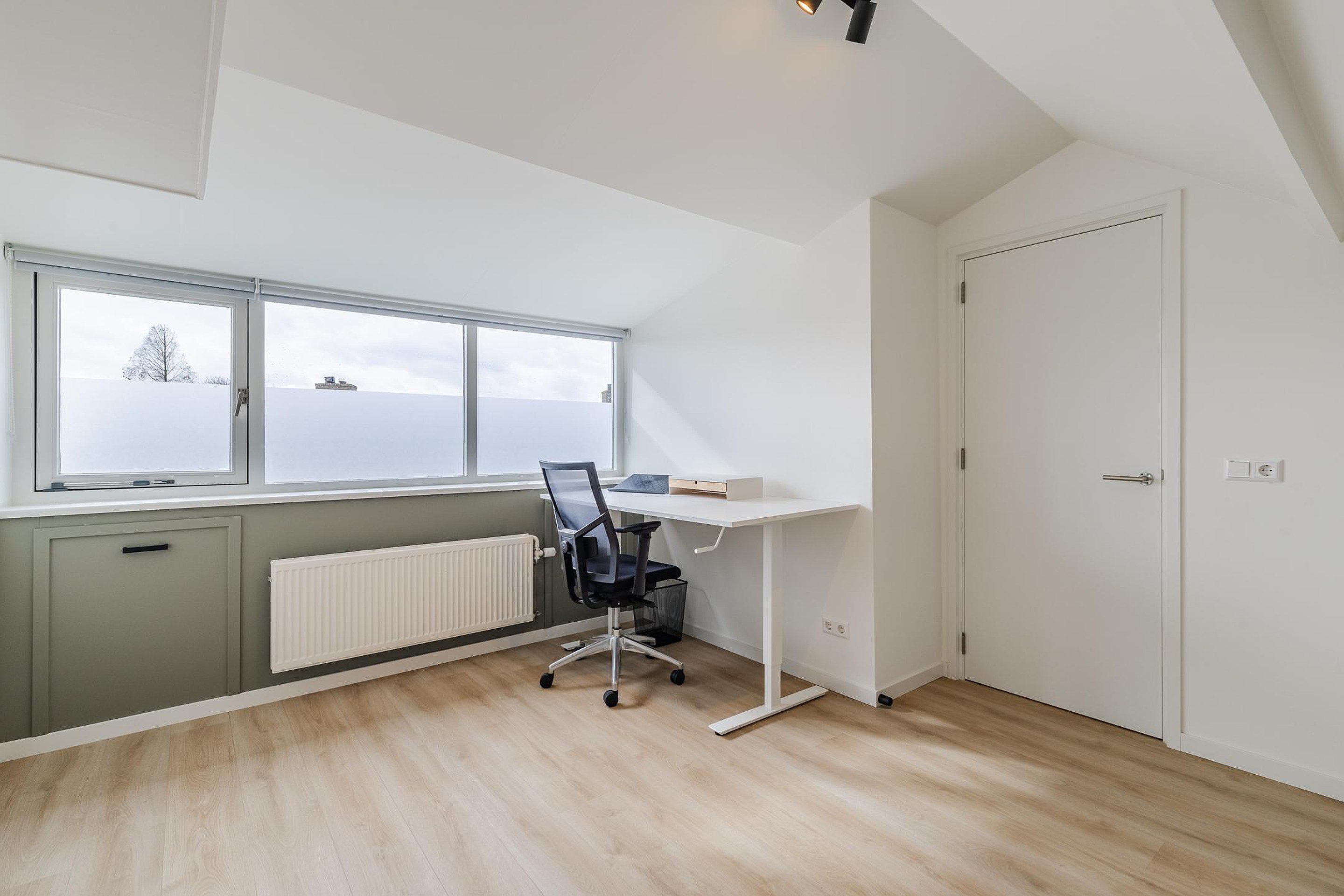 De slaapkamer aan de voorzijde heeft een inloopkast en een dakterras.