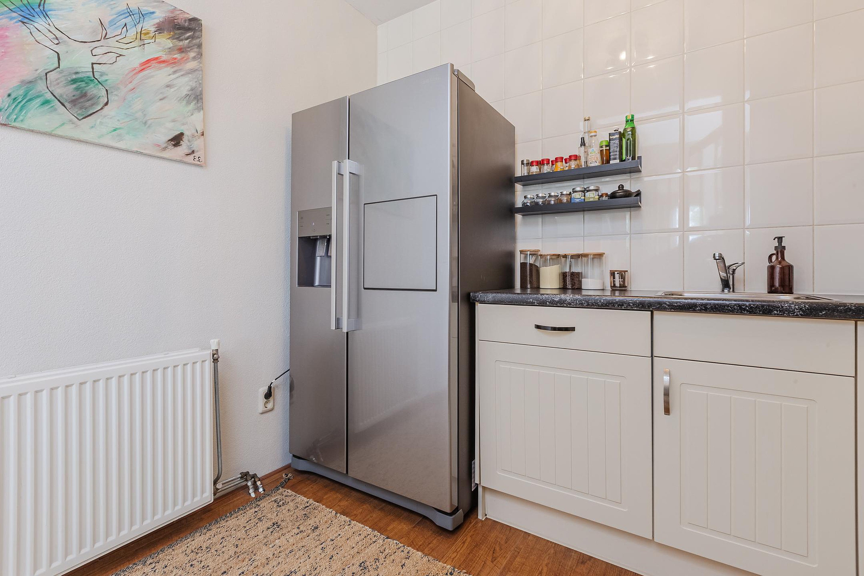 Je komt binnen in de hal met meterkast en loopt door naar de lichte woonkamer met