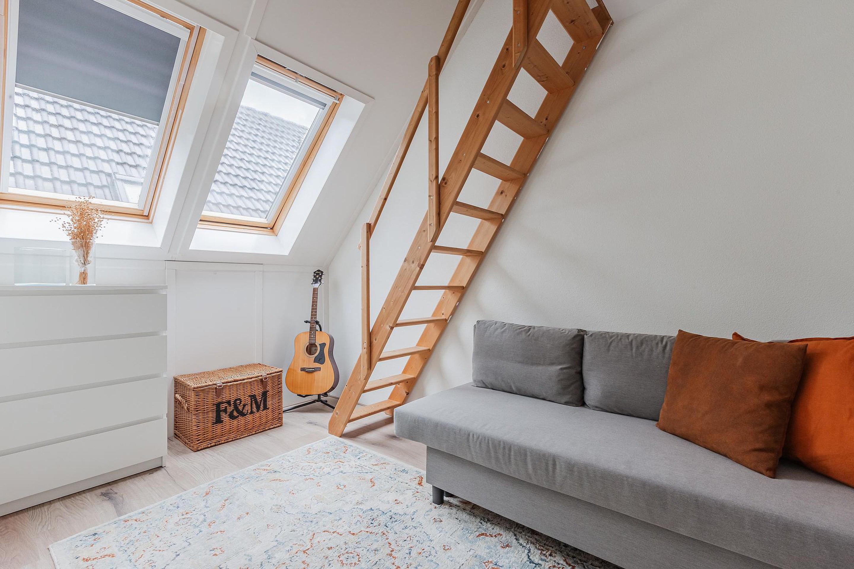 met vrij uitzicht. Aan de achterzijde ligt een tweede ruime kamer met twee Velux