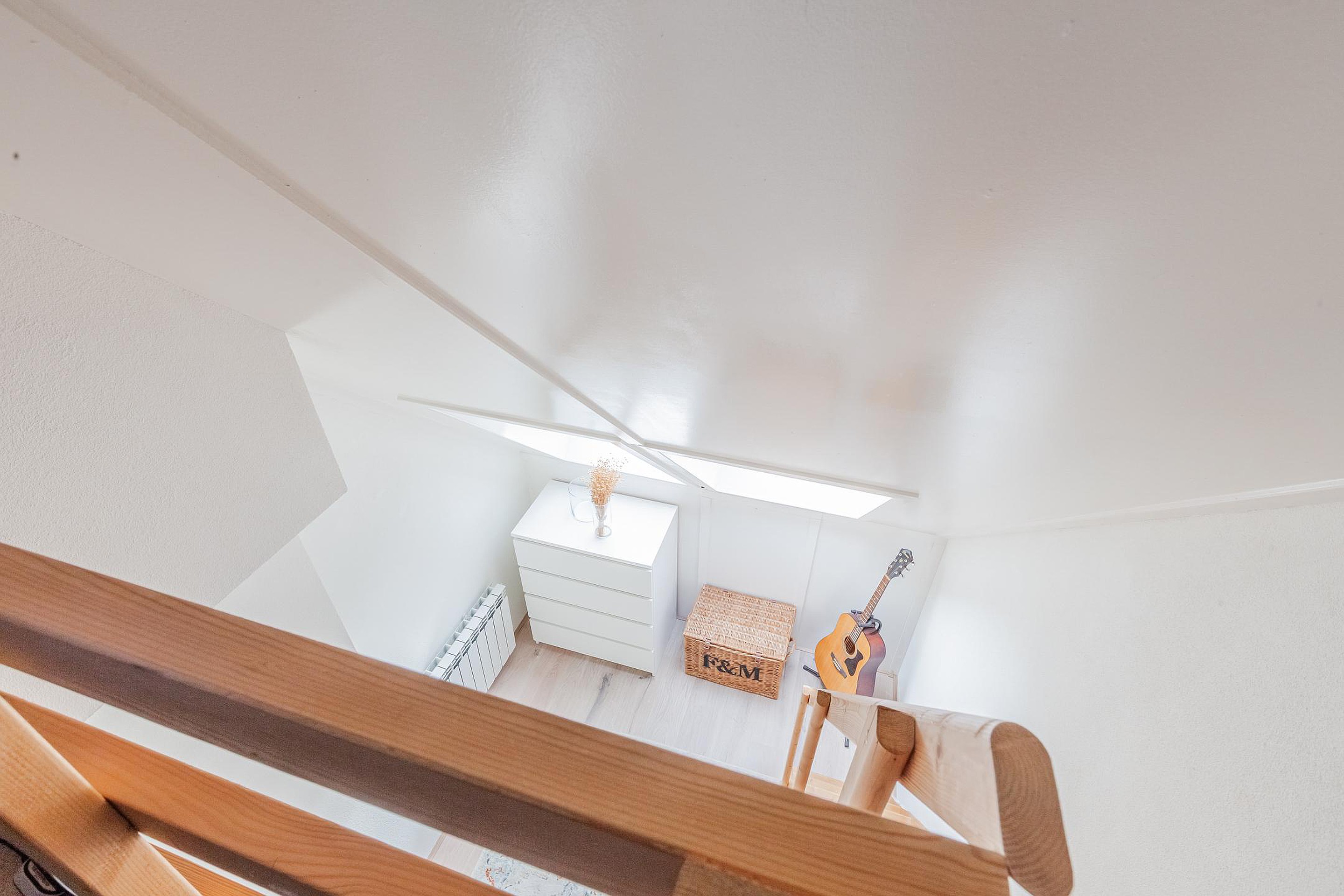 two Velux skylights and a mezzanine, creating extra space. This can be used as a