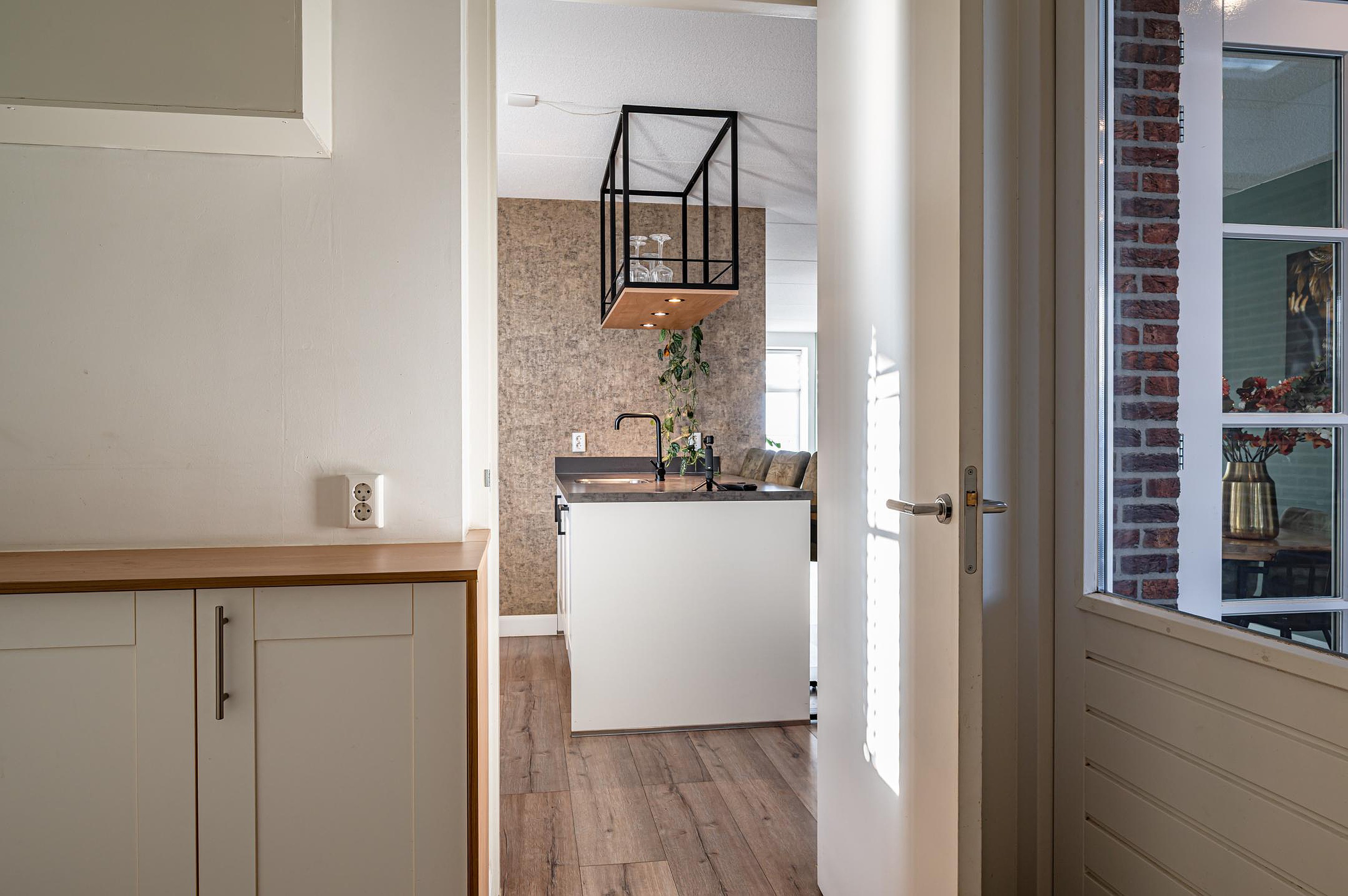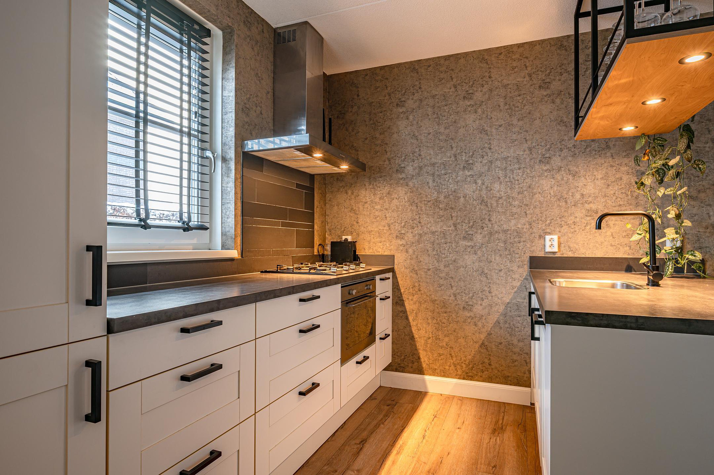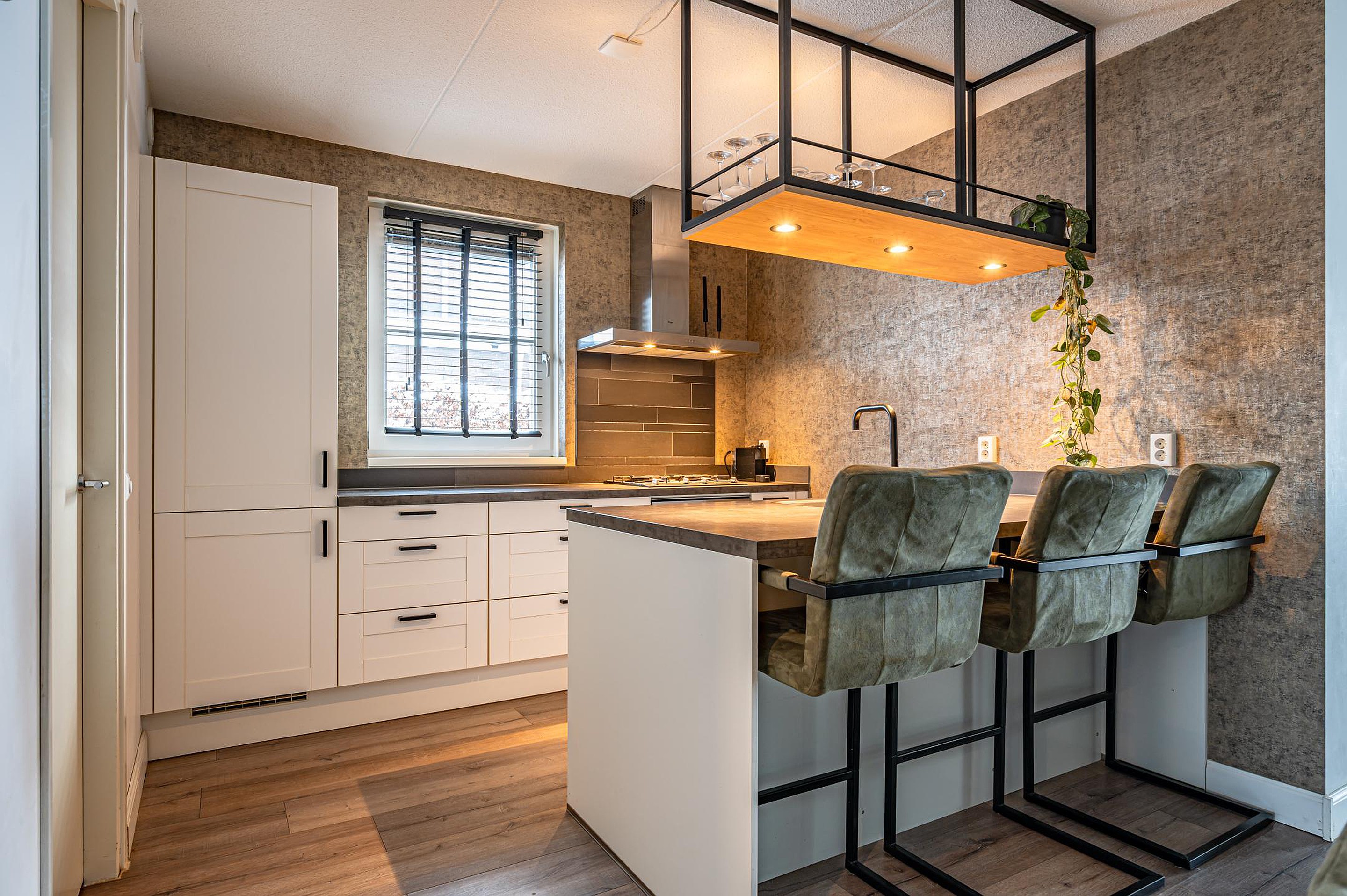 - Woonkeuken met vloerverwarming, openslaande tuindeuren en schiereiland. Voorzien van moderne inbouwapparatuur: koel/vriescombinatie, combi-oven, vaatwasser (2025), 4-pits gaskookplaat en rvs-afzuigkap.