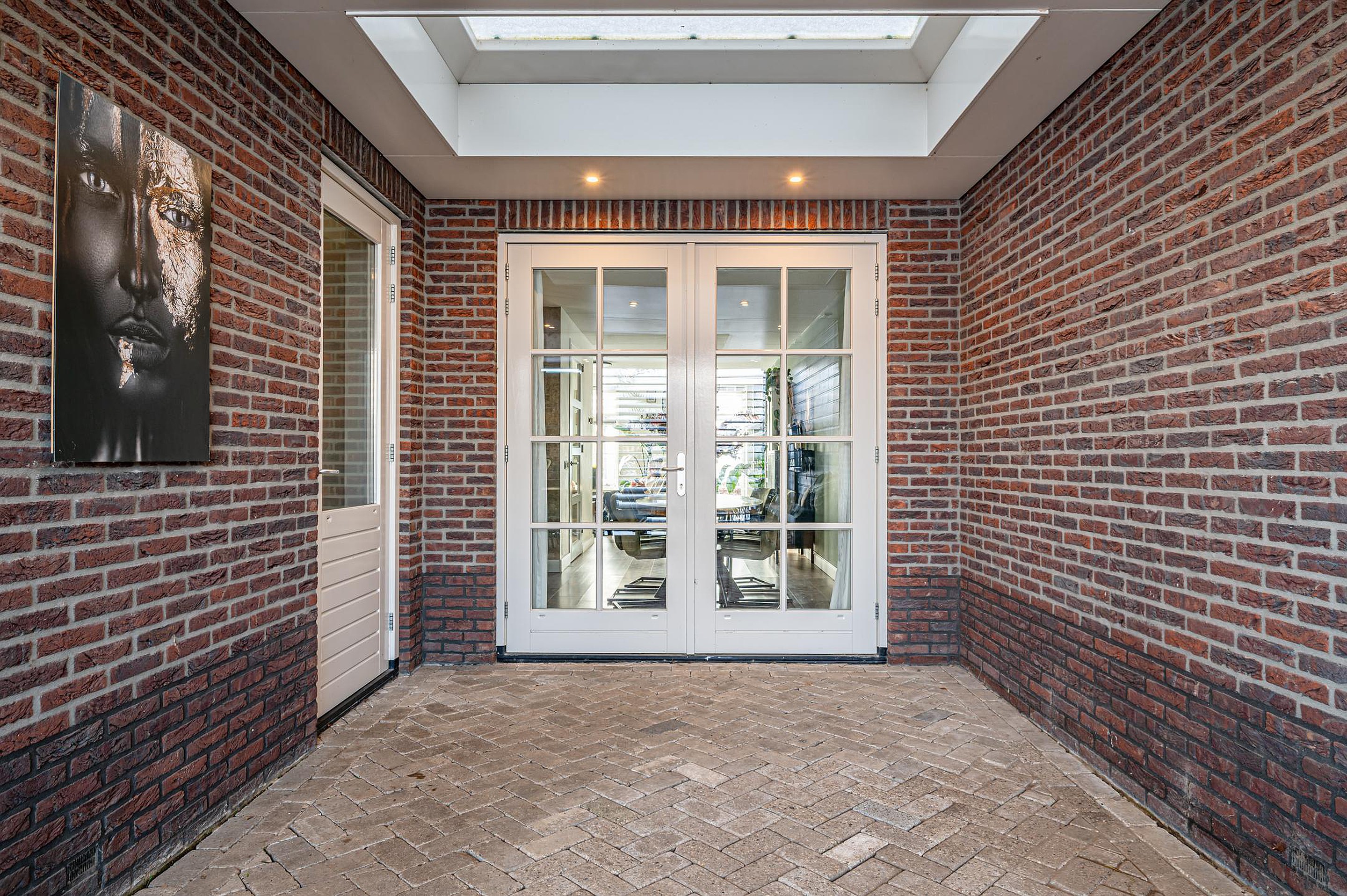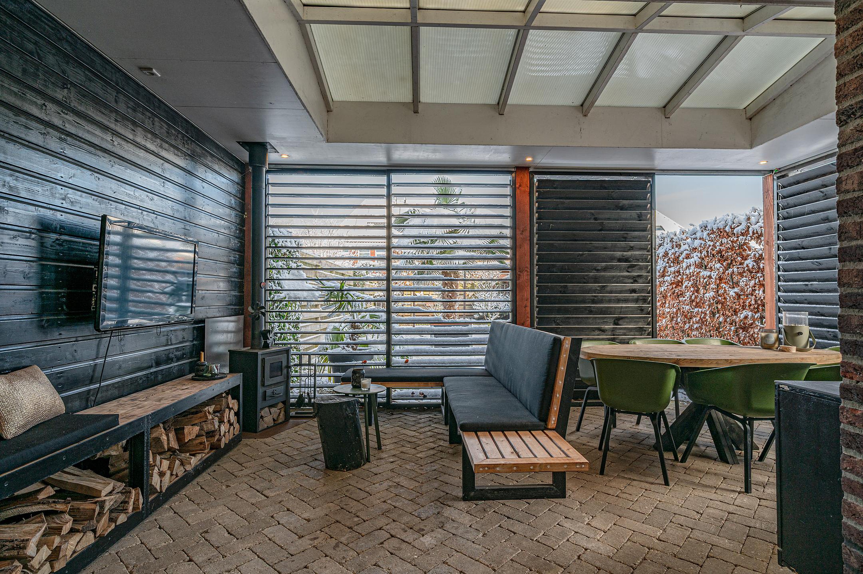 - Riante aangebouwde overkapping v.v. houtkachel, lichtkoepel en lichtstraat voor extra daglicht. Geheel is af te sluiten via lamelschuifpanelen.
