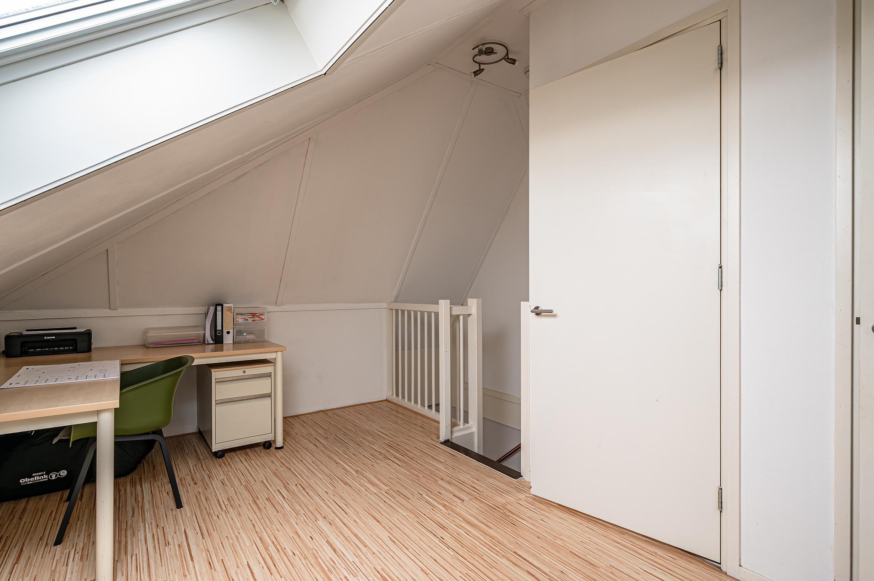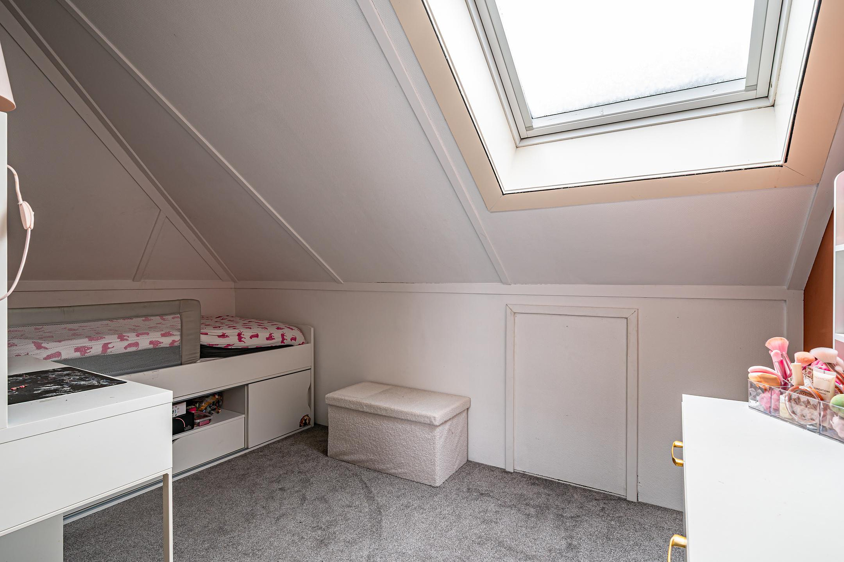 - Vaste trap naar royale overloop met laminaatvloer, groot dakraam en toegang tot de vierde slaapkamer met dakraam natuurlijke lichtinval. Verder een aparte technische ruimte welke is v.v. wasmachine aansluiting, cv ketel (Intergas 2016), omvormer van de zonnepanelen en unit van de mechanische ventilatie.