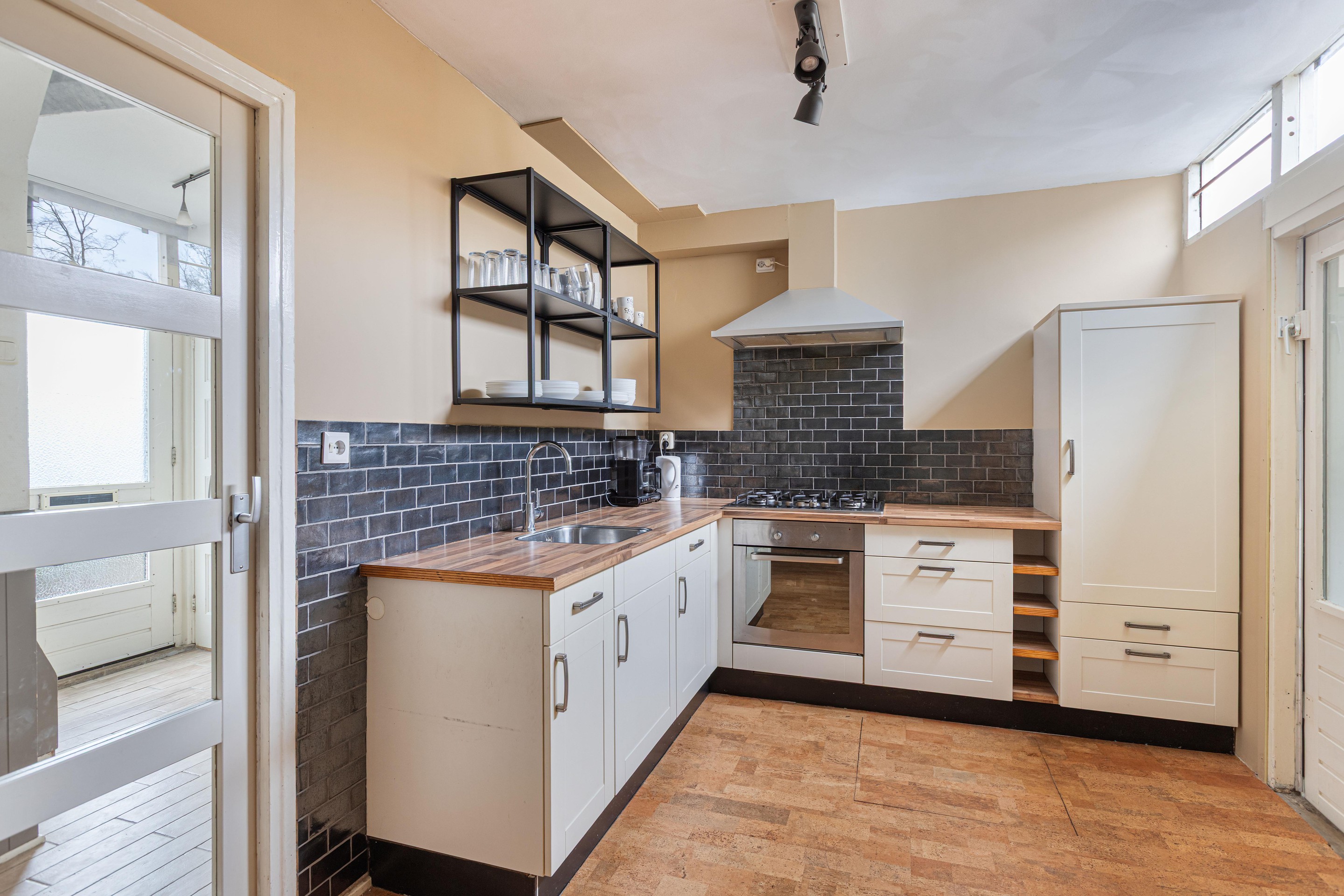 In het voorste deel van de woning vind je de woonkamer en de keuken. Aan de achterzijde is de voormalige berging bij de woning betrokken als bijkeuken en is er een aanbouw gerealiseerd met daarin de eetkamer.