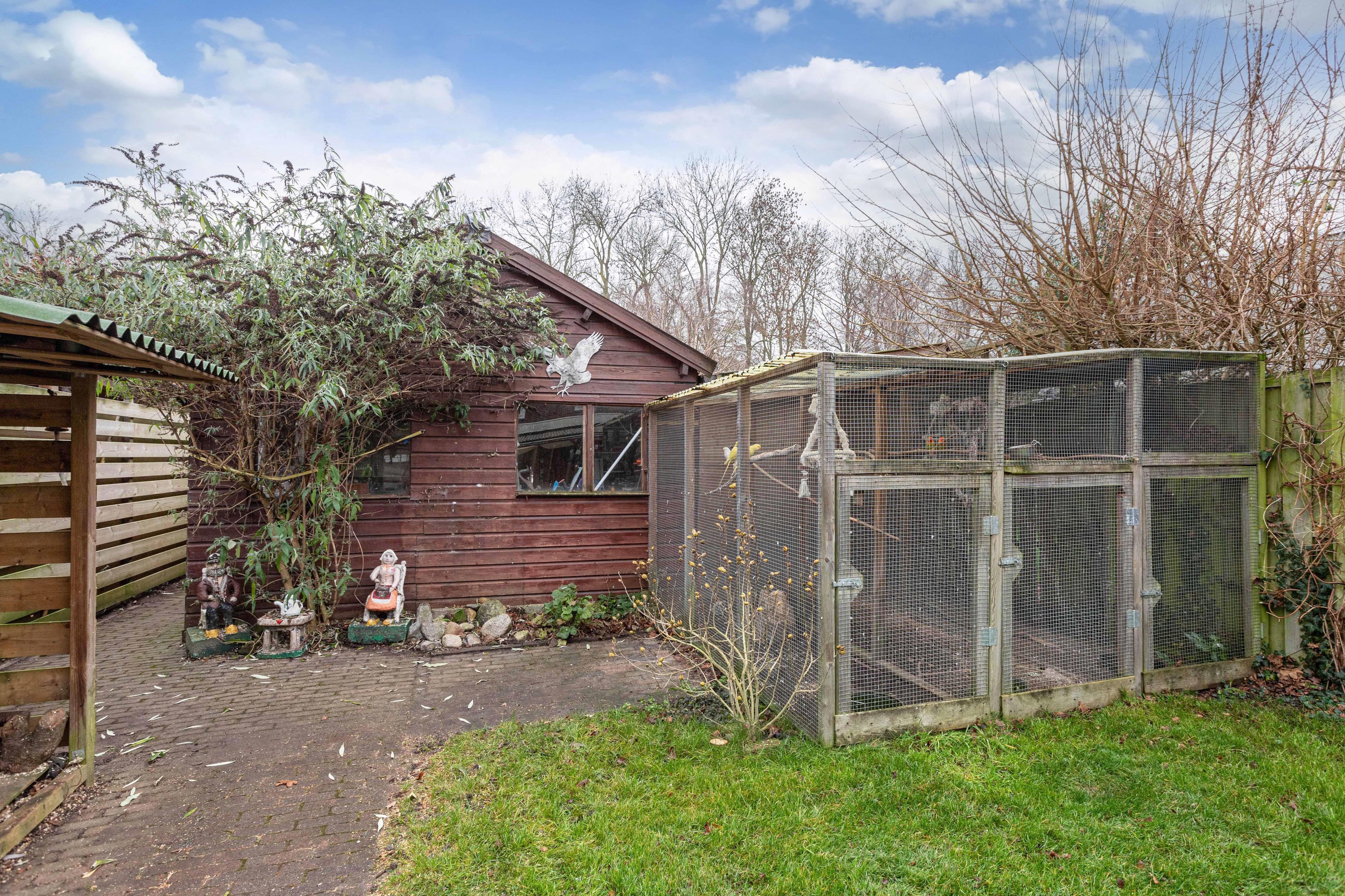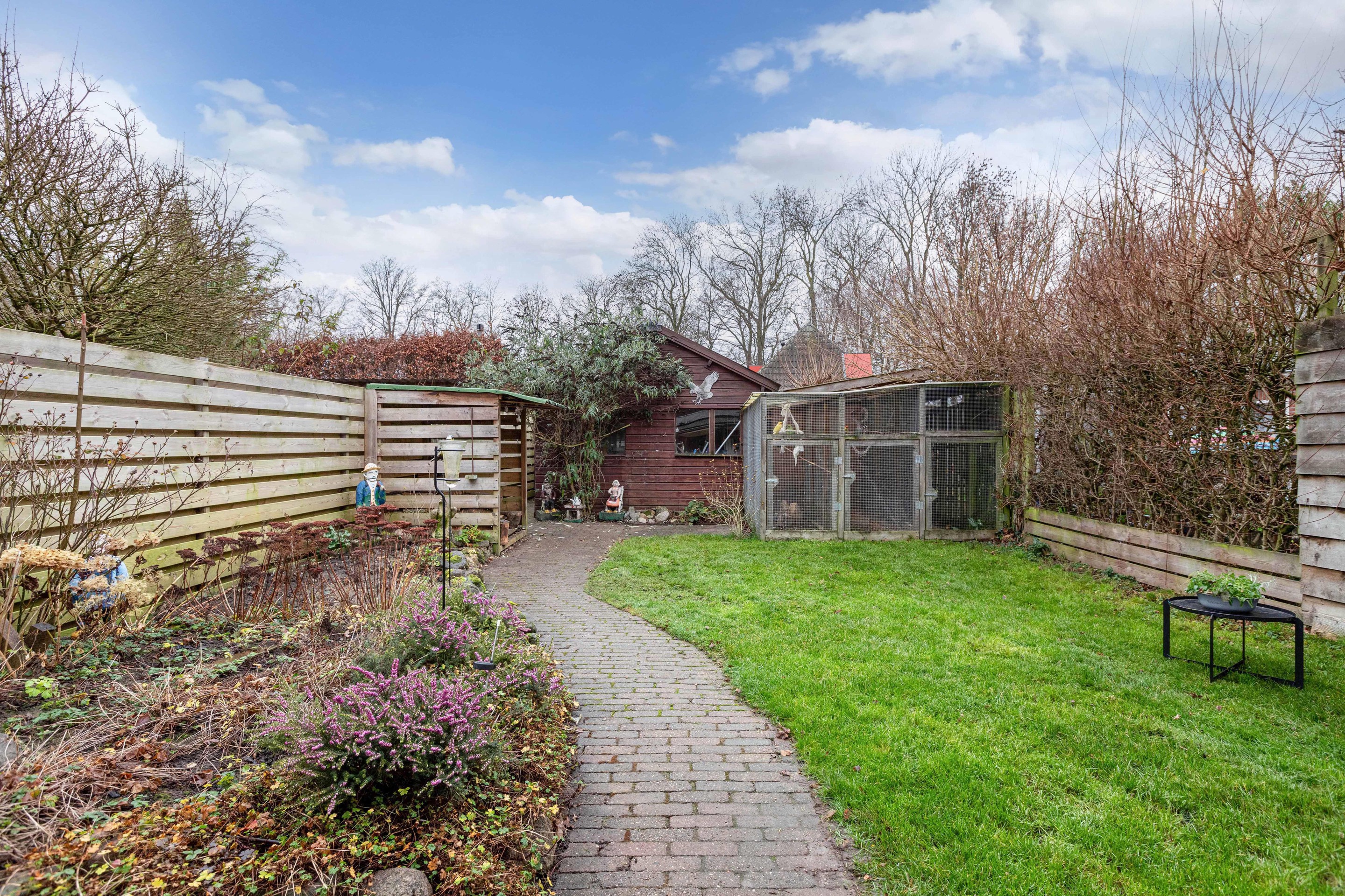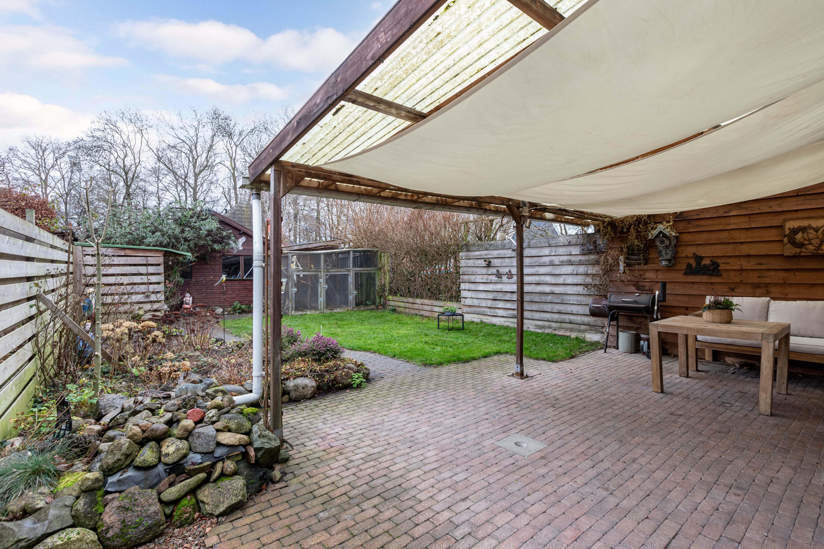 Achter het huis is een gezellige overkapping aan de woning gebouwd en heb je een besloten tuin met achterom waar je ook nog een extra houten berging vindt.