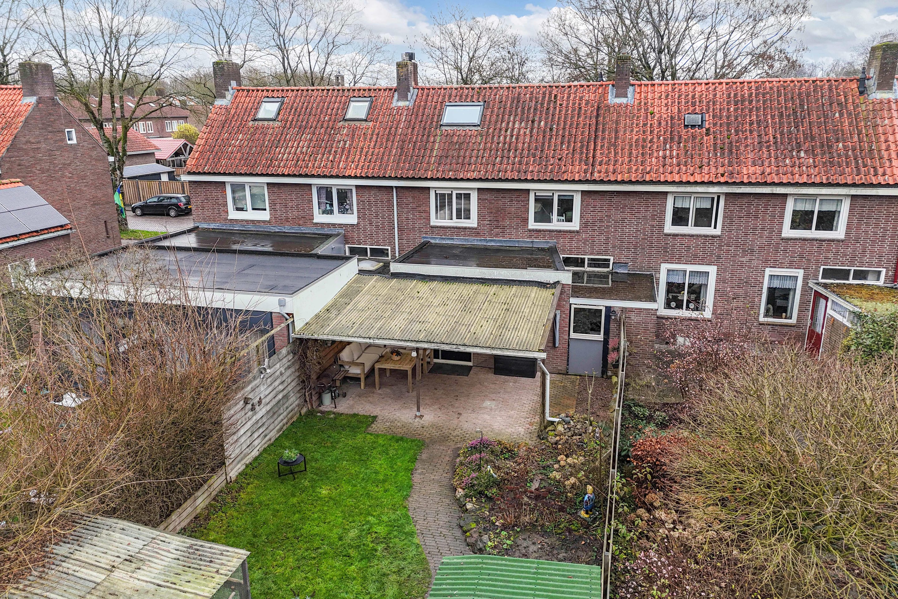 Deze tussenwoning is extra groot door een aangebouwde eetkamer. Daarnaast is de oorspronkelijke berging bij de woning aangetrokken en is er een grote overkapping. Achter het huis is een gezellige achtertuin met nog een praktische extra berging.