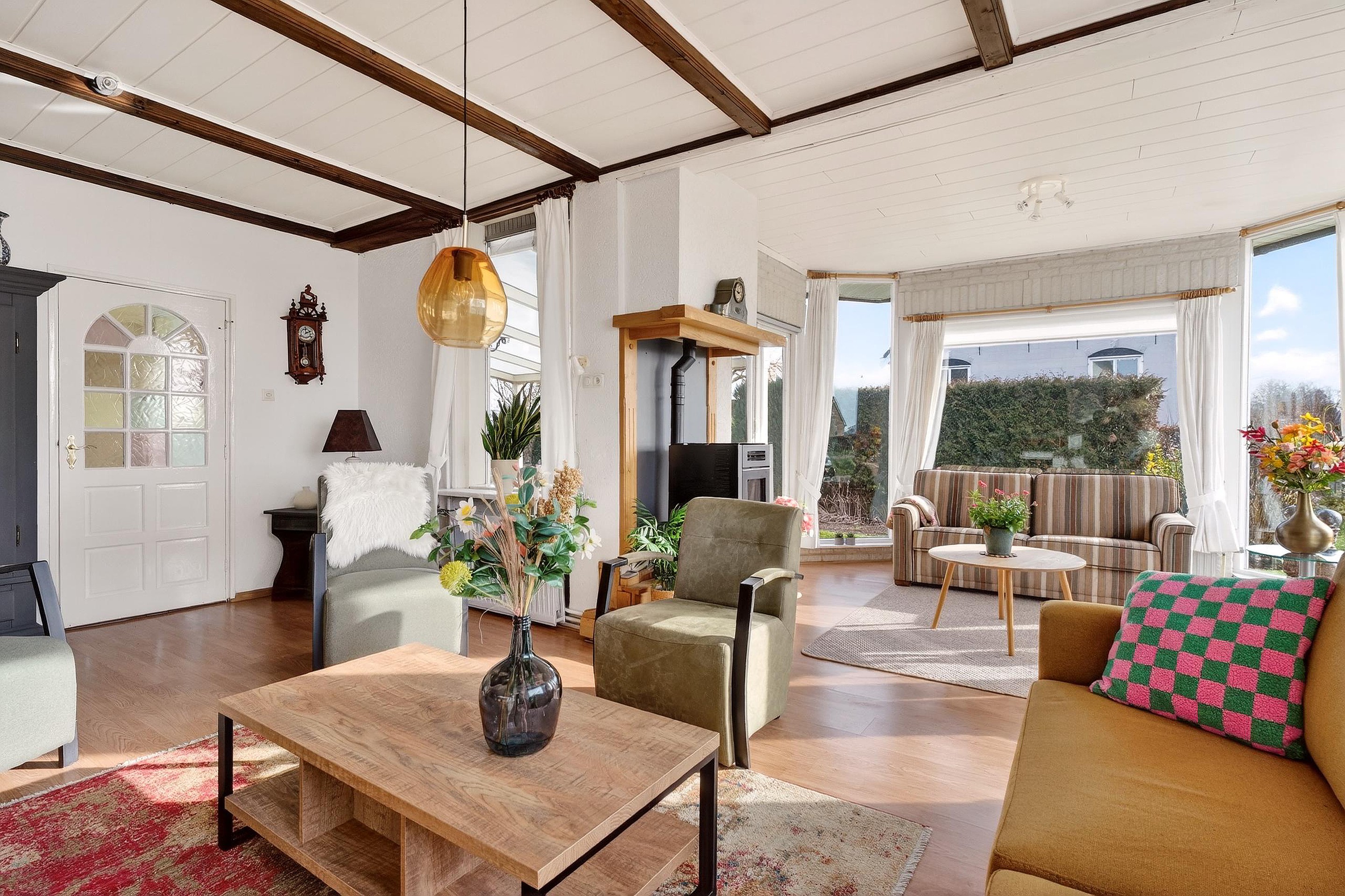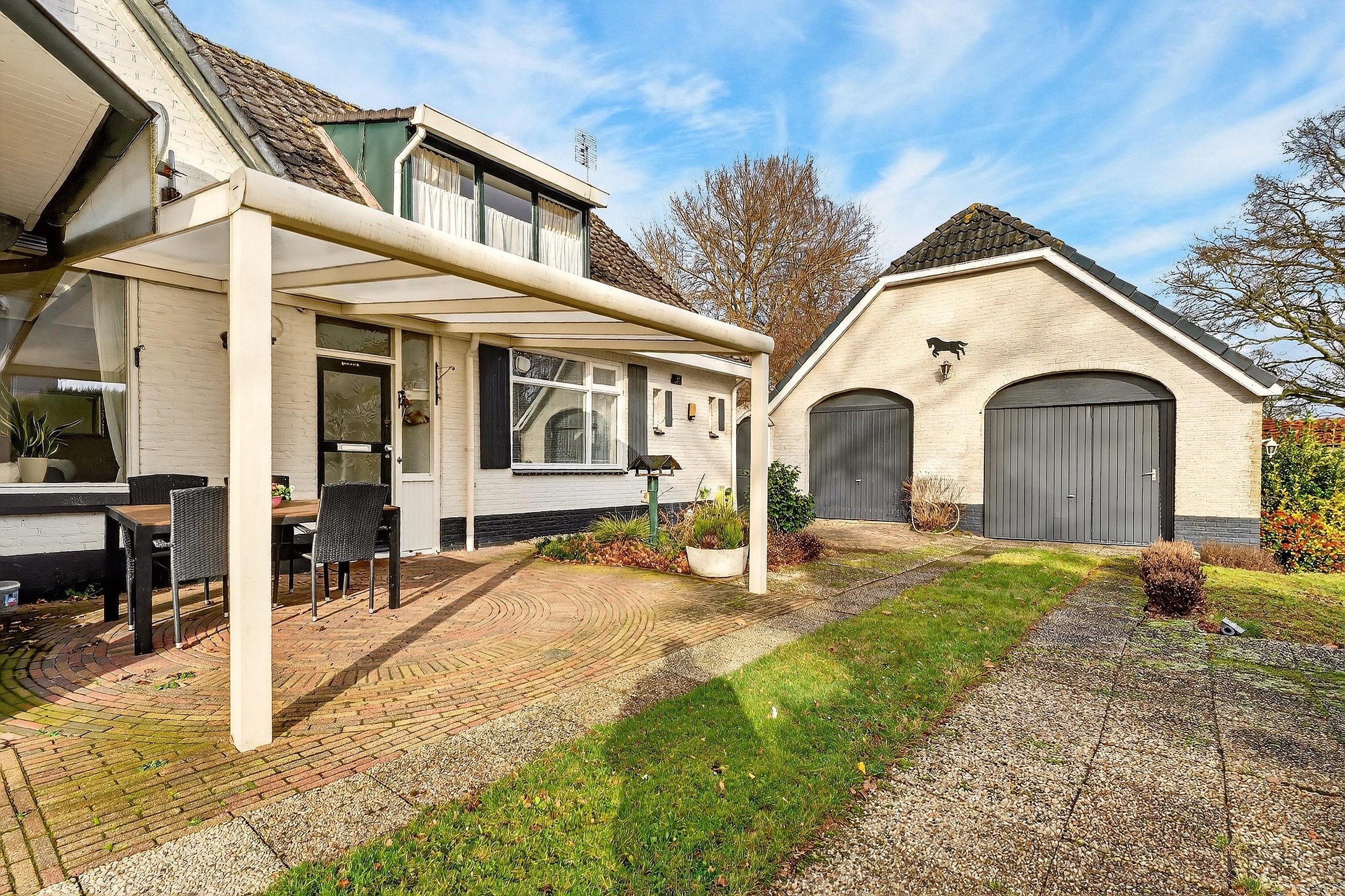 Rondom zijn er meerdere parkeerplaatsen, dubbele garage, houten berging en een diep perceel. Eventueel is er meer grond bij aan te kopen.