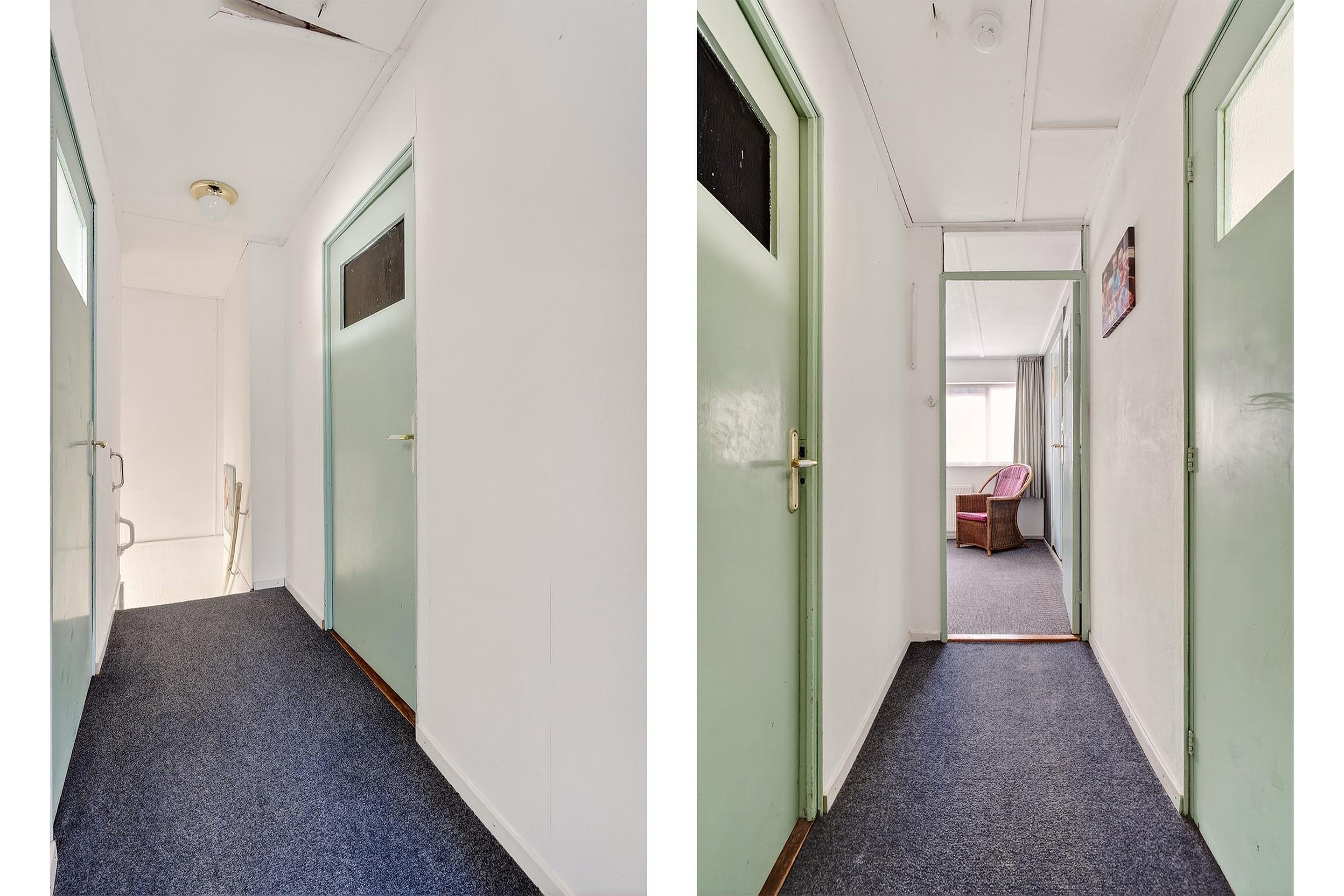 Middels overdekte overkapping betreedt men de entree, hal en trapopgang. De hal geeft toegang tot o.a. de straatgerichte woonkamer met aangebouwde erker. Aan de achterzijde is de woonkeuken gesitueerd. Via de woonkeuken betreedt men de bijkeuken met o.a. toilet met fonteintje en stookruimte waar de c.v. ketel is geplaatst in 2022.