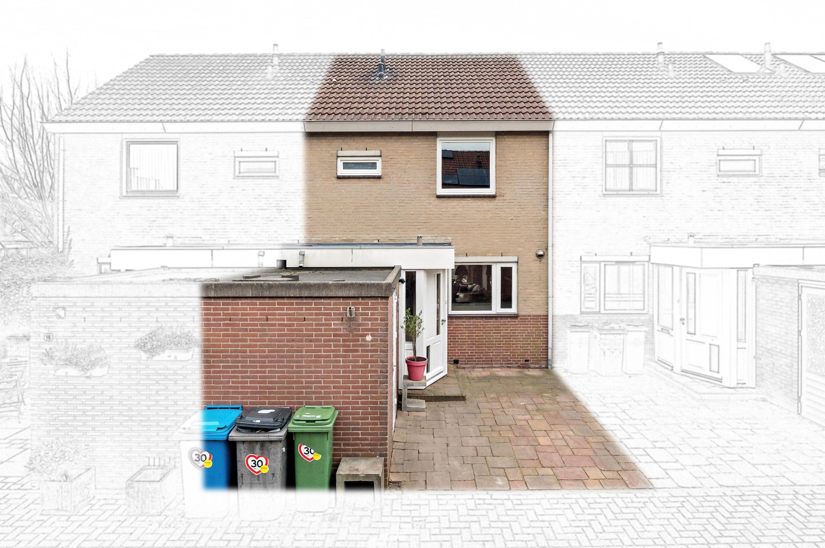 - Uitgebouwde entreehal en aanbouw aan de achterzijde