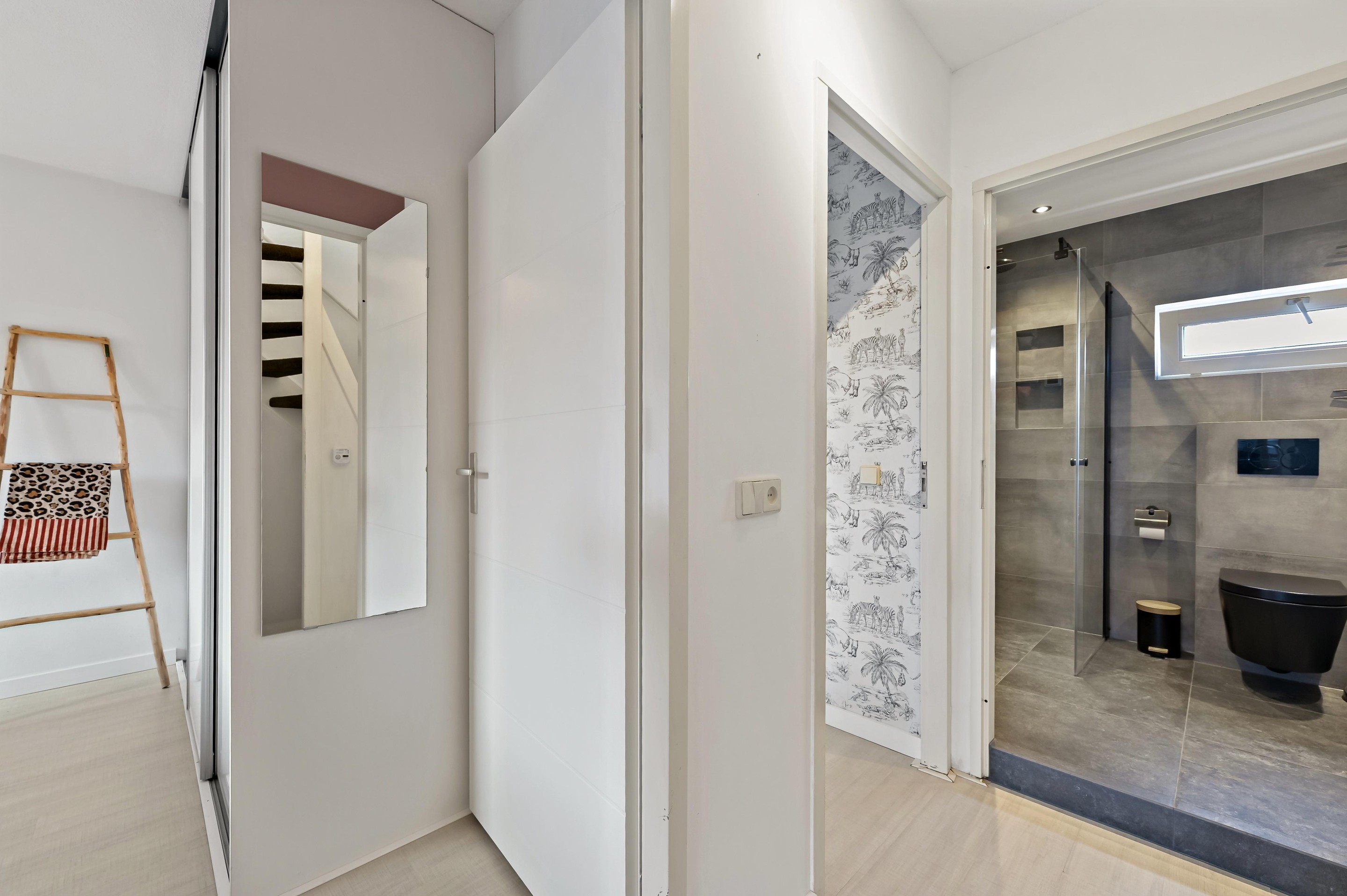 Overloop met toegang tot drie slaapkamers. Aan de achterzijde van de woning bevinden zich twee slaapkamers. Aan de voorzijde van de woning is de zeer luxe, in 2026 geplaatste badkamer aanwezig. De badkamer beschikt over een ligbad, inloopdouche, tweede toilet en wastafelmeubel. Samen met de elektrische vloerverwarming een super comfortabele badkamer in uw nieuwe woning.