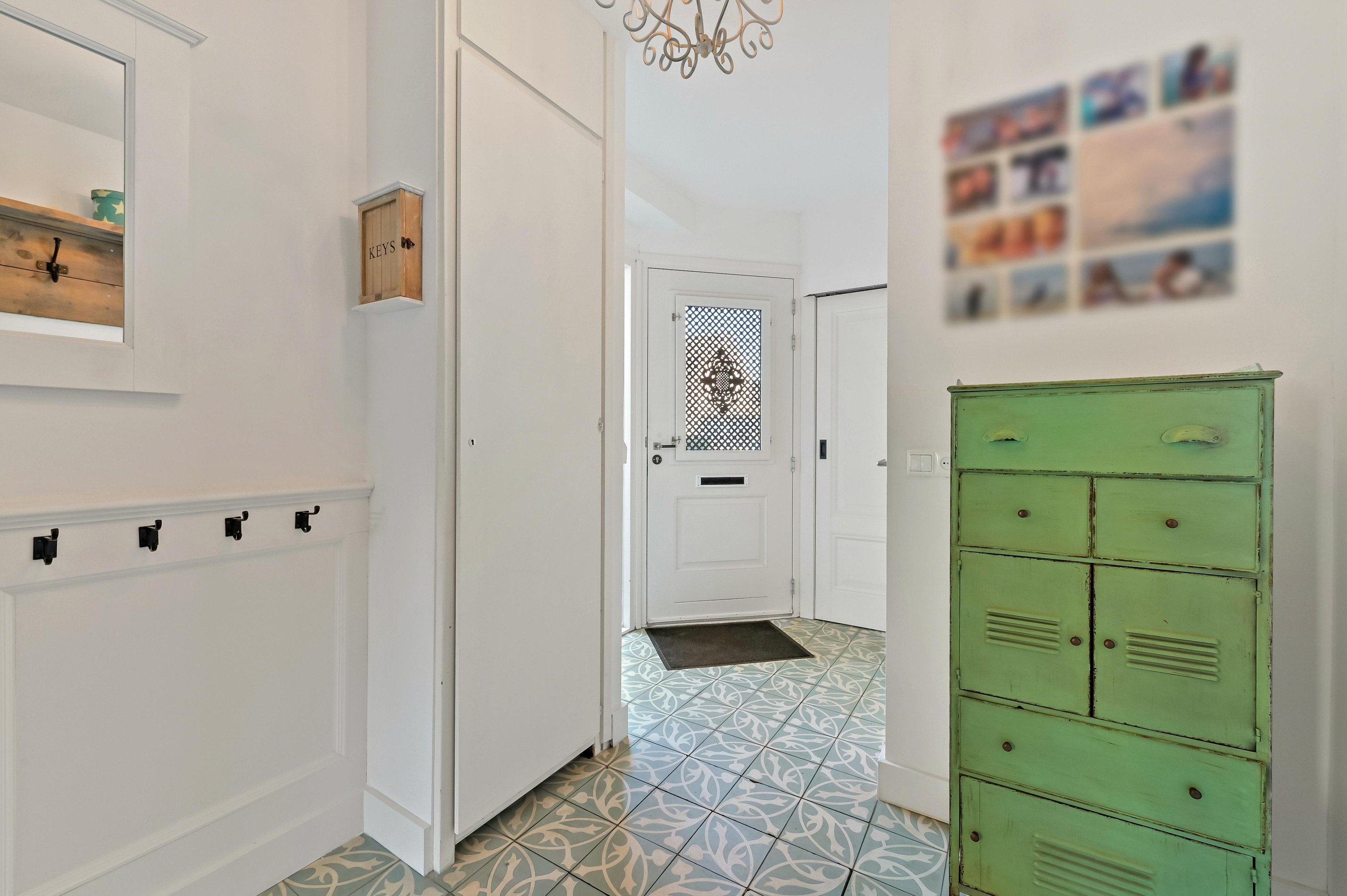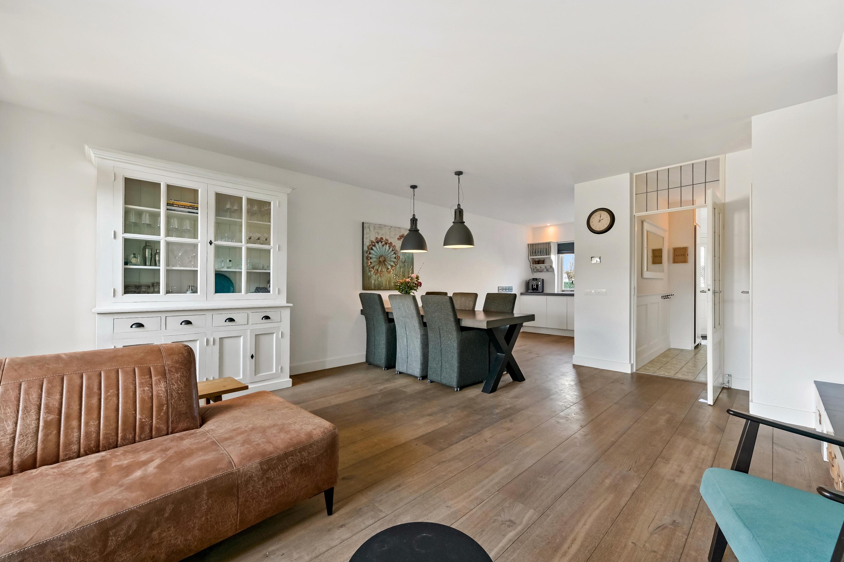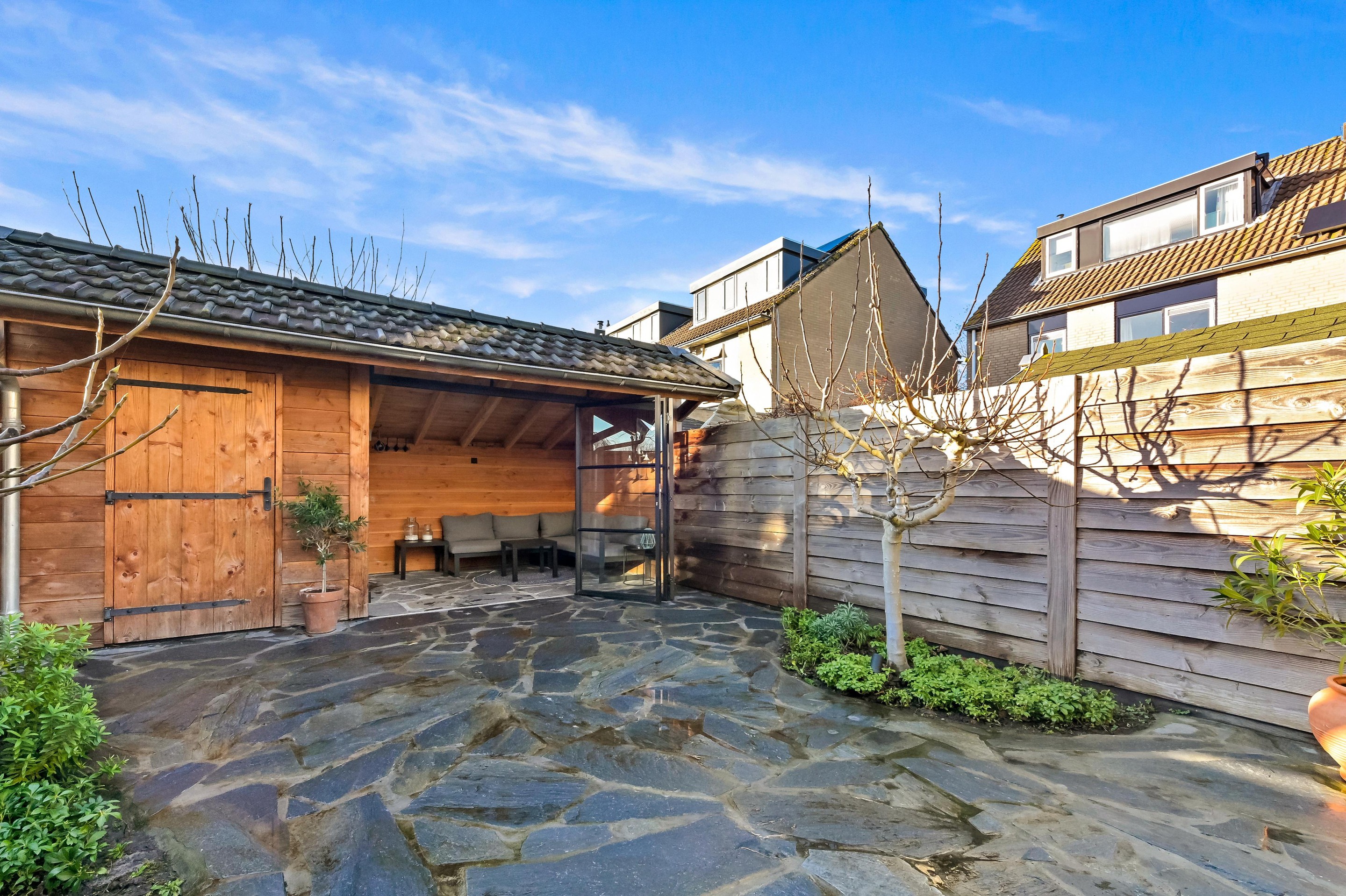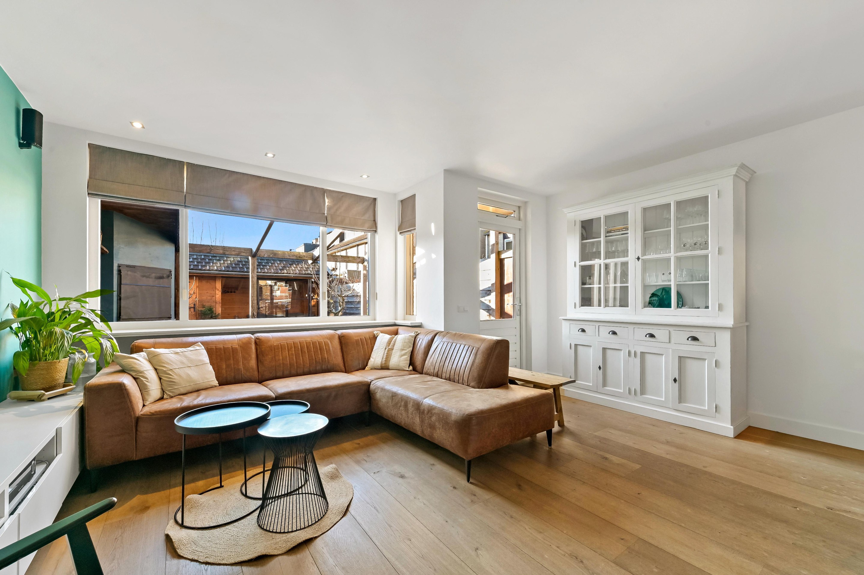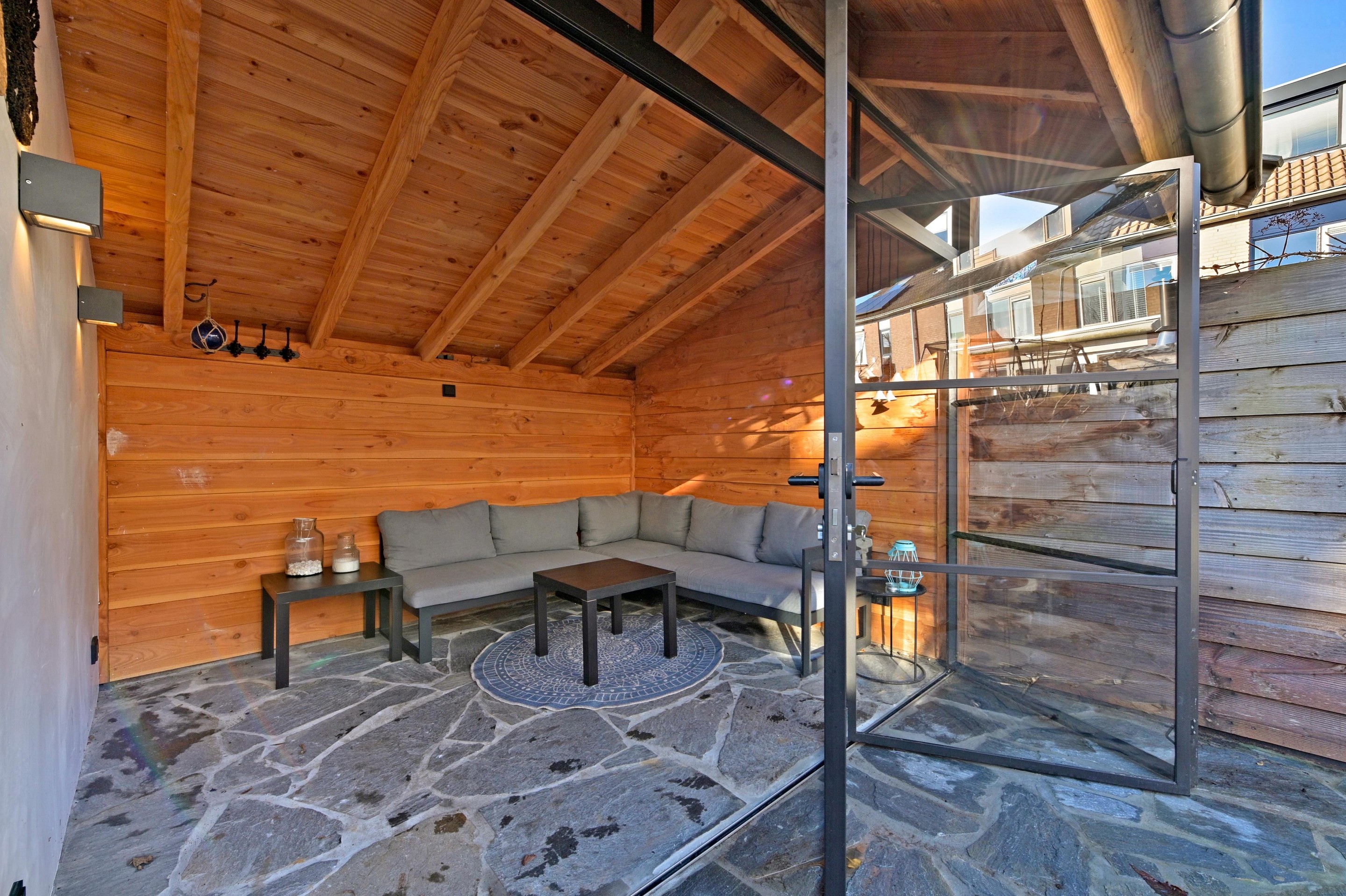 Via de voortuin bereikt u de stenen fietsenberging en de entree van de woning. De ruime hal met inpandige toegang tot de berging is voorzien van trapopgang naar de verdieping, meterkast en volledig betegelde toiletruimte, welke evenals de hal, is uitgevoerd met Portugese tegels en is voorzien van vloerverwarming. Vervolgens bereikt u de woonkamer welke is voorzien van een eiken parketvloer met vloerverwarming, een praktische trapkast en sfeervolle liftdeur-houtkachel. De erker aan de achterzijde zorgt voor extra licht in de woonkamer en een prettige verbinding met de tuin. De luxe, L-vormige keuken bevindt zich aan de voorzijde. De moderne keuken beschikt over een composiet werkblad, apothekerskast en diverse hoogwaardige inbouwapparatuur, waaronder een 5-pits gaskookplaat, plafondafzuiging, combi-oven, koelkast, vaatwasser en een Quooker met gekookt, gekoeld en bruisend water. Maar ook buiten koken behoort zondermeer tot de mogelijkheden. Direct tegen de woning is een overkapping met automatische zonwering en aangrenzende buitenkeuken met Zuid-Afrikaanse Braai gerealiseerd; ideaal voor lange zomeravonden en gezellige diners. Achterin de tuin bevinden zich een houten berging en een sfeervolle veranda met een afsluitbare glazen vouwwand, waardoor u het hele jaar door van het buitenleven kunt genieten.