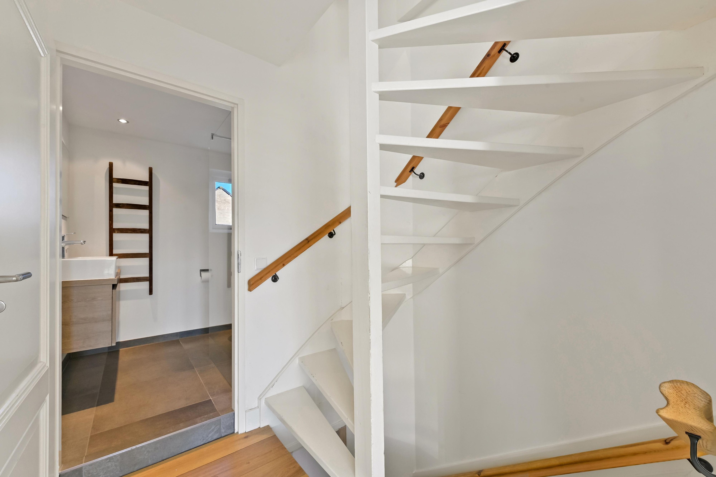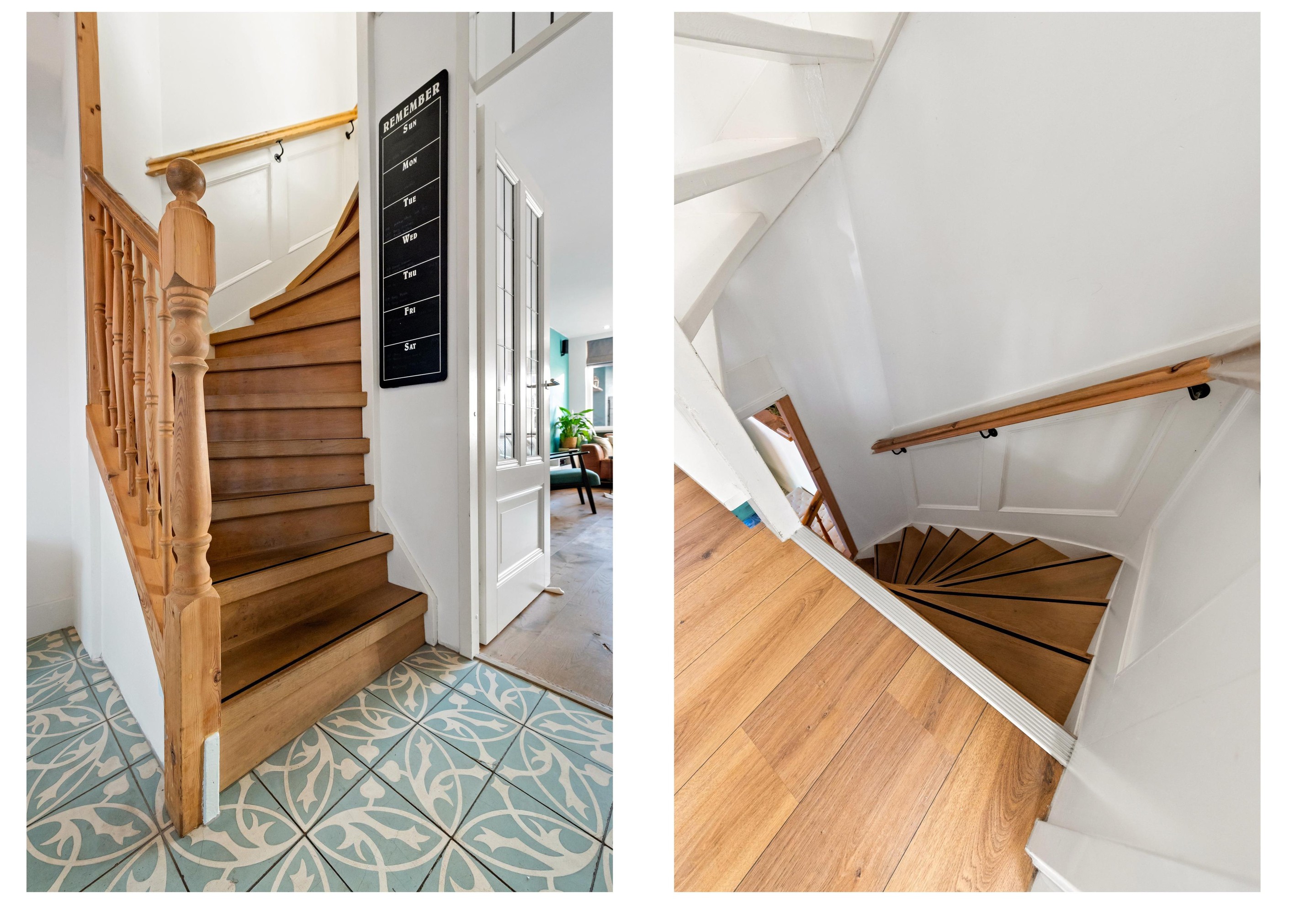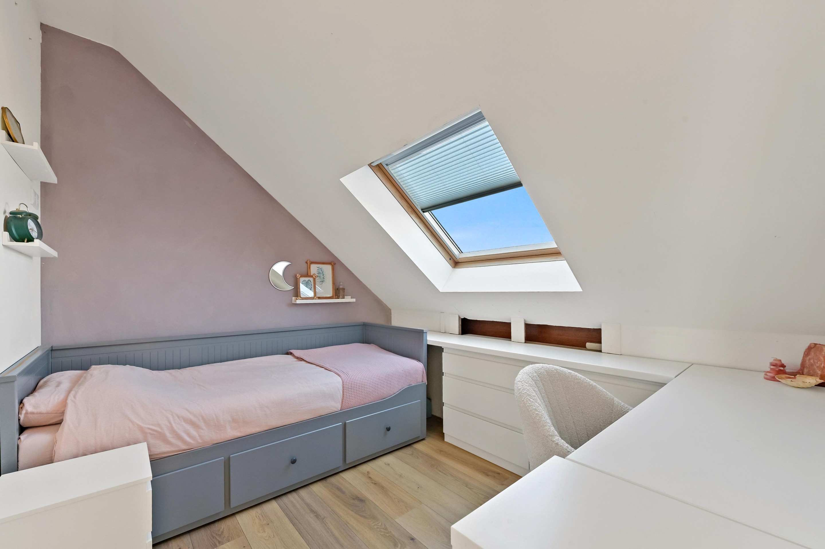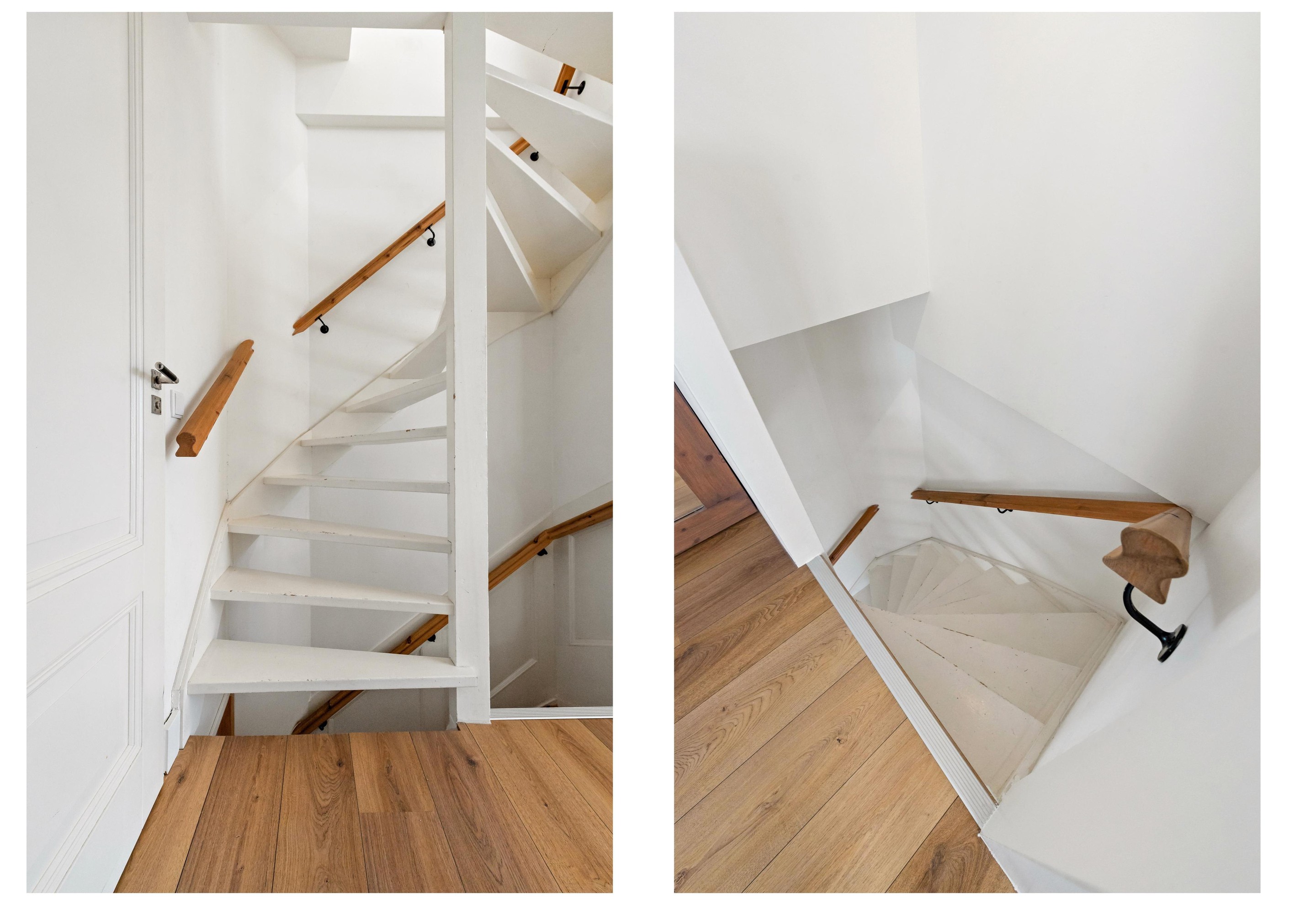 Tweede verdieping De tweede verdieping biedt verrassend veel ruimte dankzij de grote dakkapel aan de achterzijde. Op de overloop vindt u een wastafel, praktische bergkasten en de opstelplaats voor wasmachine en wasdroger. Daarnaast is er via een vlizotrap toegang tot de bergvliering. Op de tweede verdieping zijn twee slaapkamers aanwezig. De slaapkamer aan de achterzijde is voorzien van dakkapel, elektrisch bedienbare zonwering en inbouwspots. De slaapkamer aan de voorzijde beschikt over een groot dakraam en is aangenaam licht.