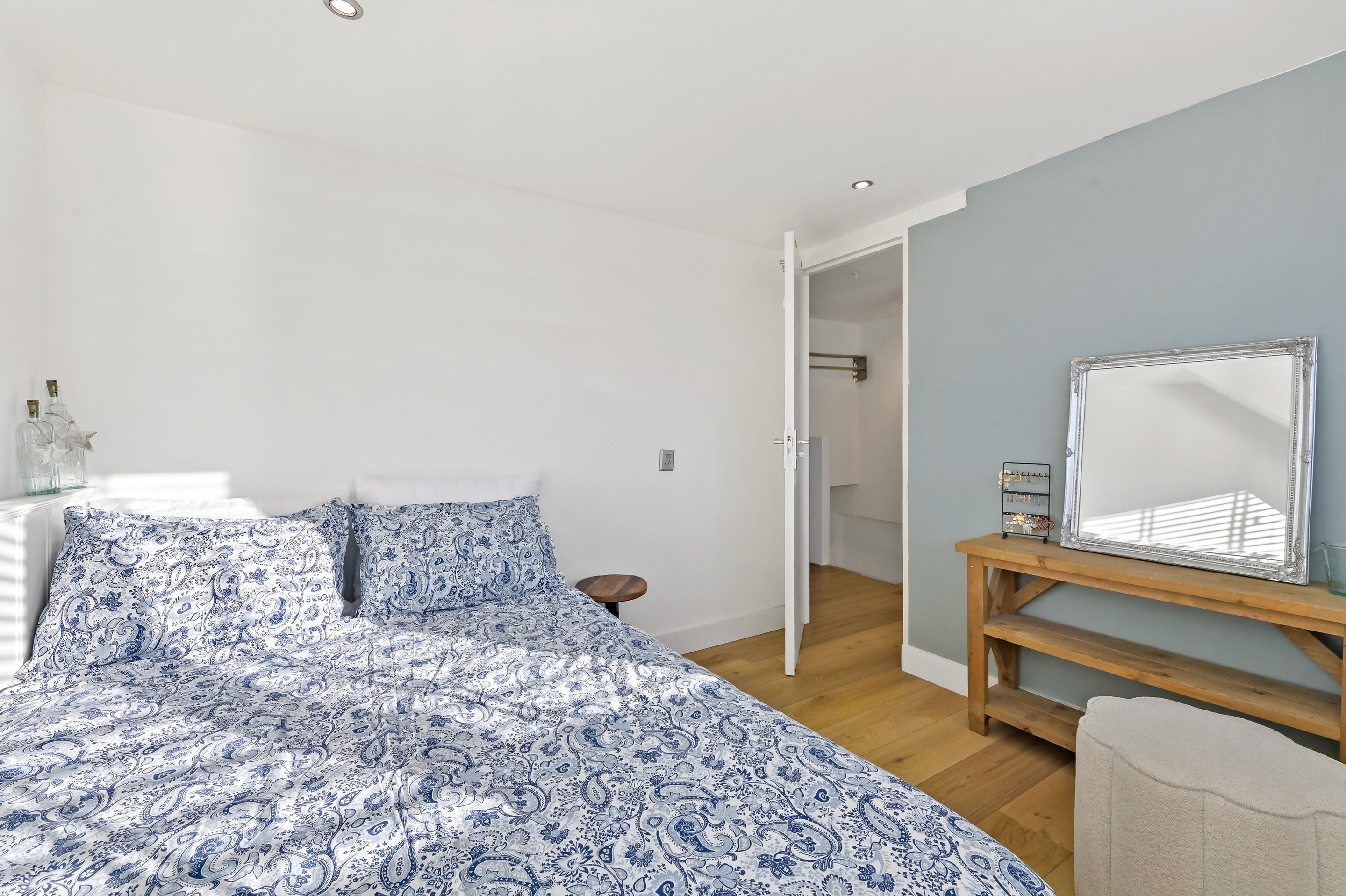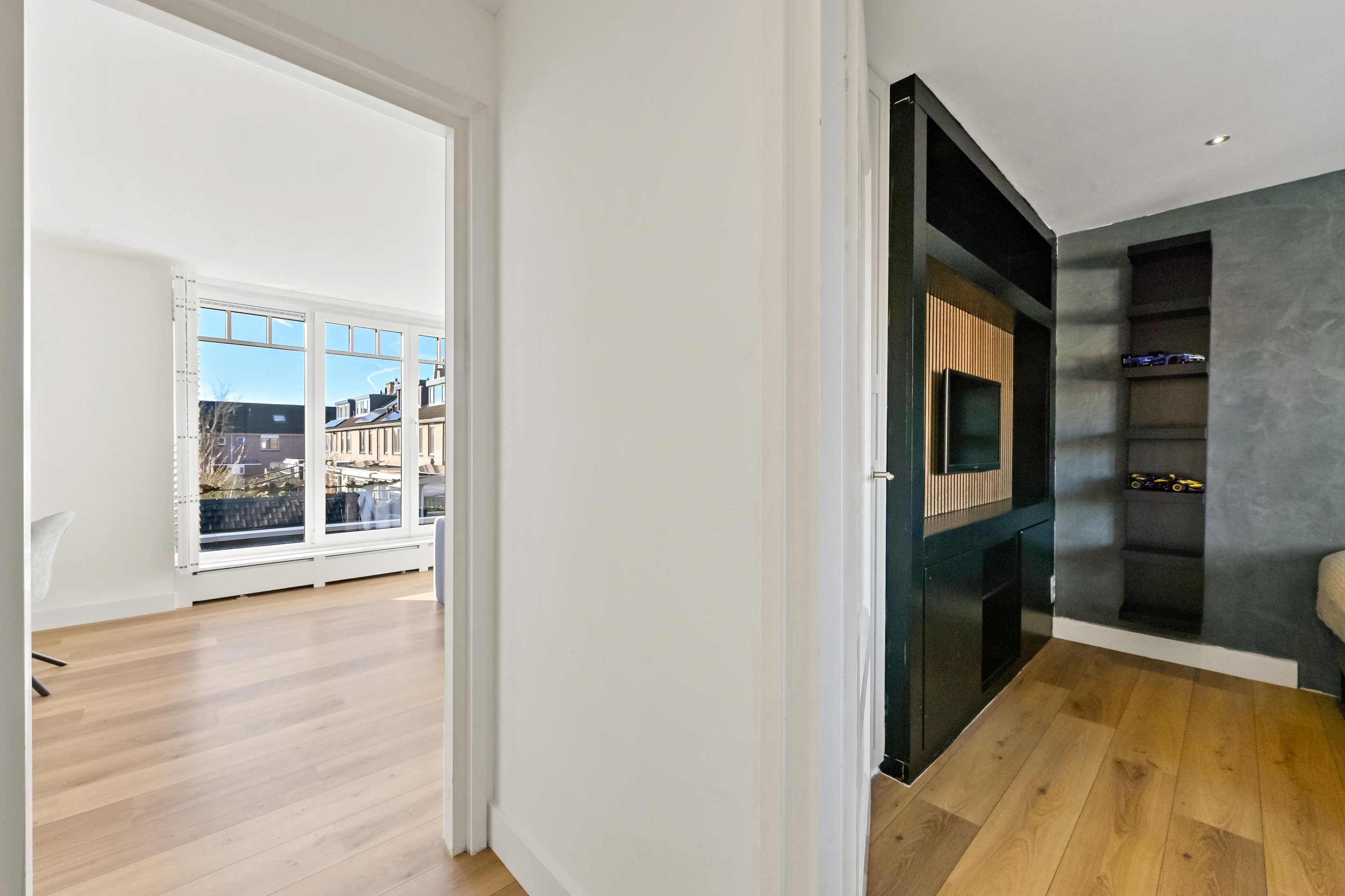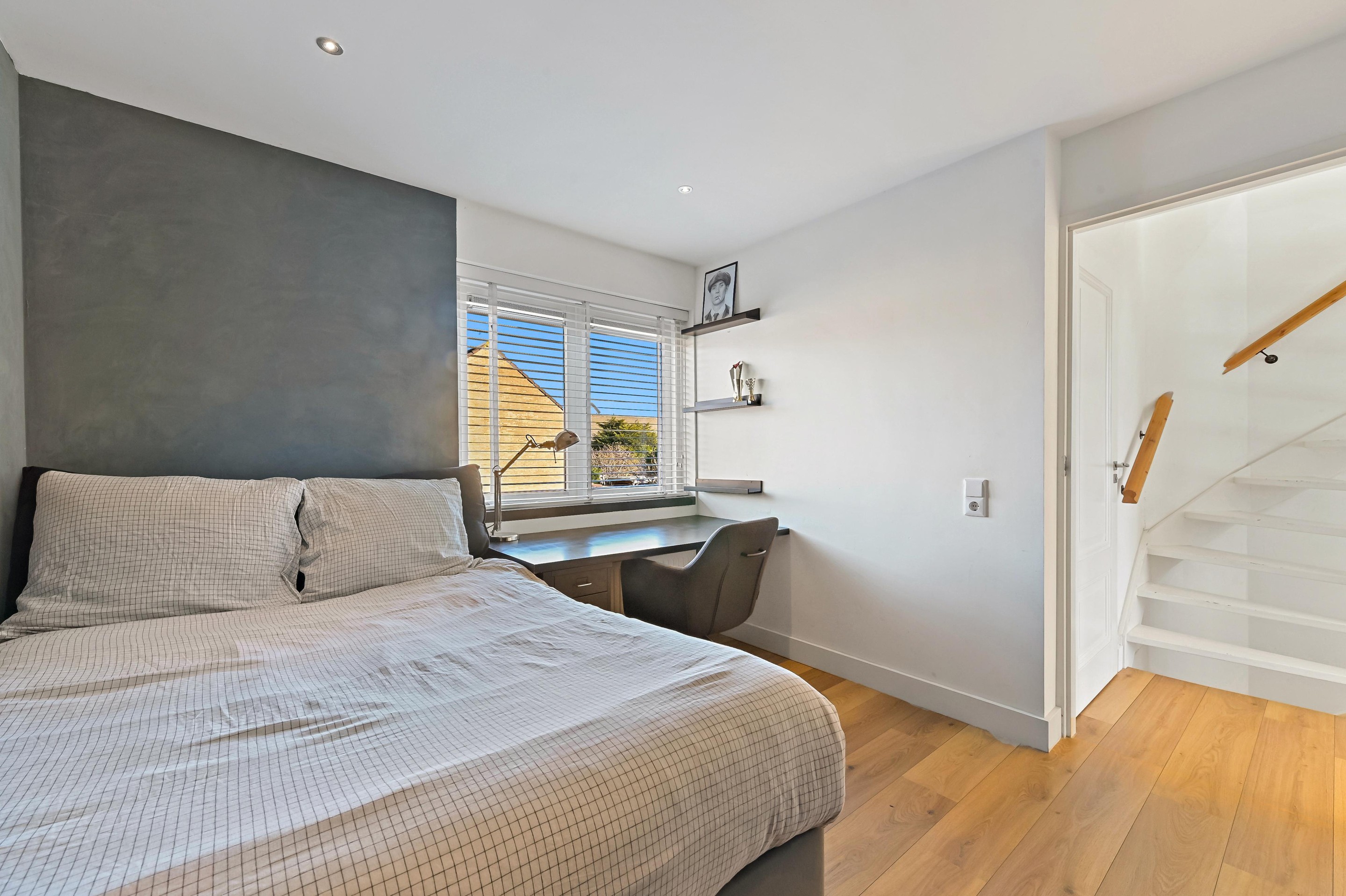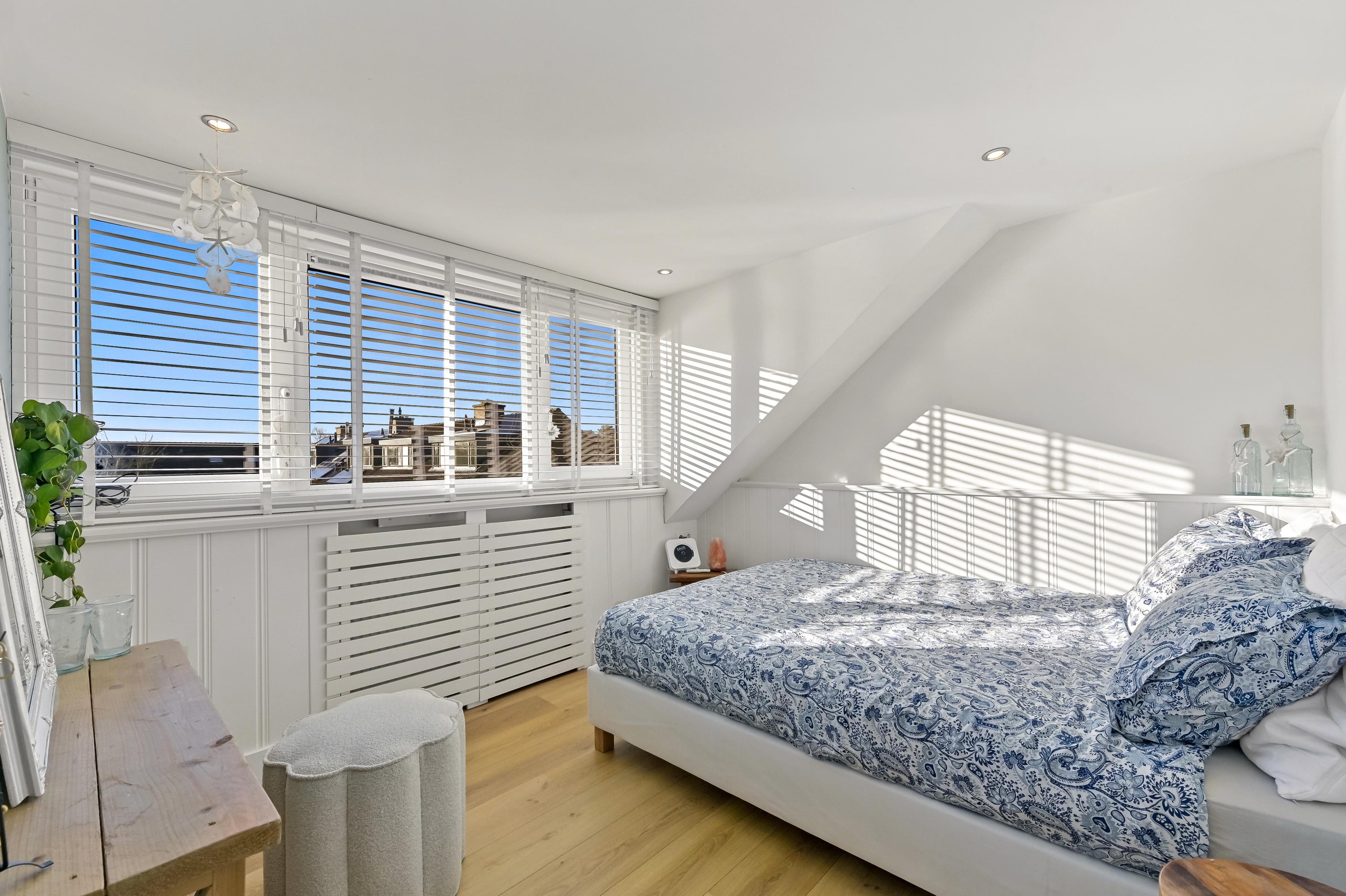 Eerste verdieping Ruime overloop met trapopgang naar de tweede verdieping en toegang tot alle vertrekken. Aan de achterzijde is een royale slaapkamer gesitueerd met vaste kasten en een grote raampartij met elektrisch bedienbare zonwering. Voorheen waren dit twee slaapkamers. De tweede slaapkamer bevindt zich aan de voorzijde van de woning. Deze kamer is eveneens voorzien van een vaste kast. Ook de luxe badkamer aan de voorzijde is compleet uitgevoerd met een wastafelmeubel, inloopdouche met rainshower en een tweede toilet.