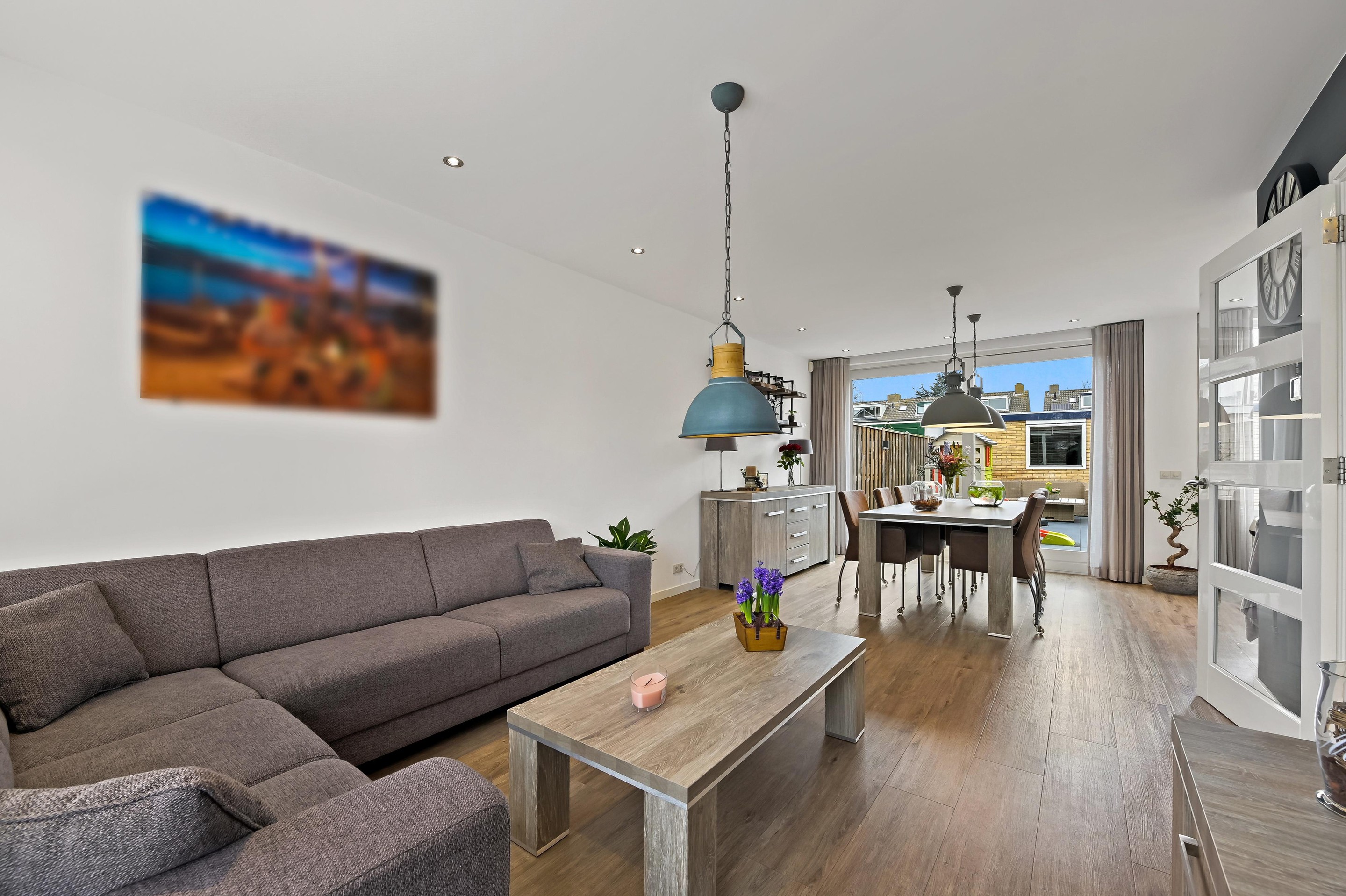 Via de verzorgd aangelegde voortuin met groenborders en tuinverlichting bereik je de entree van de woning. De lichte hal is ruim van opzet en biedt naast de trapopgang voldoende ruimte voor de garderobe. Ook vind je hier een praktische trapkast voor het opbergen van spullen. De meterkast is tijdens de verbouwing in 2018 vervangen en voorzien van een uitgebreide groepenkast met schakelautomaten. De moderne toiletruimte met automatische verlichtingssensor is vergroot en voorzien van een wandcloset en fonteintje in een bergmeubel. Vanuit de hal kom je in de lichte woonkamer met sfeervolle inbouwspots in het plafond. De woonkamer beschikt aan de voorzijde over een elektrisch bedienbaar zonnescherm en een grote schuifpui aan de achterzijde met toegang tot de tuin. De moderne keuken in L-opstelling biedt veel bergruimte en is bovendien voorzien van diverse Siemens inbouwapparatuur waaronder een vijf zone inductie kookplaat, RVS afzuigkap, koelkast met vriesvak, combi-oven, vaatwasser, spoelbak en plintboiler. De begane grond is stijlvol afgewerkt en voorzien van onder andere strak gestucte wanden en plafonds, een stijlvolle PVC vloer met vloerverwarming, op maat gemaakte raambekleding en professioneel gespoten binnendeuren. Via de loopdeur in de keuken kom je in de zonnige achtertuin met groenborder, tuinverlichting, buitenkraan, drainage en zij-ingang. De tuin is ruim van formaat en voelt prettig aan dankzij de ligging met vrij uitzicht aan de achterzijde. Hier kun je de gehele dag heerlijk van de zon genieten! Vanuit de tuin is de garage via een loopdeur te bereiken. De garage is voorzien van een betonnen vloer, elektra en verlichting. De elektrisch bedienbare overheaddeur zorgt ervoor dat je via de Plantage met gemak de auto of fiets in de garage kunt parkeren.