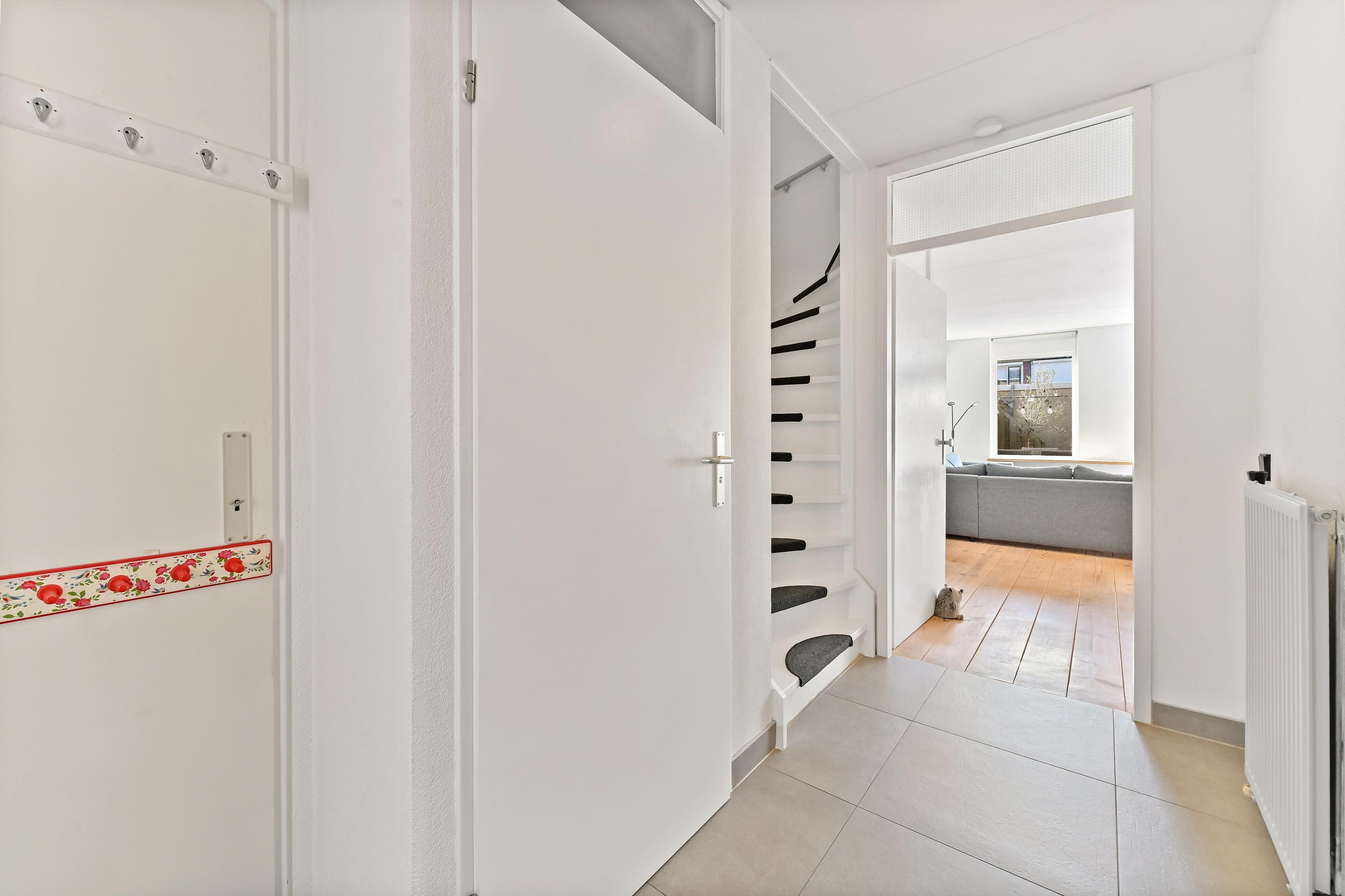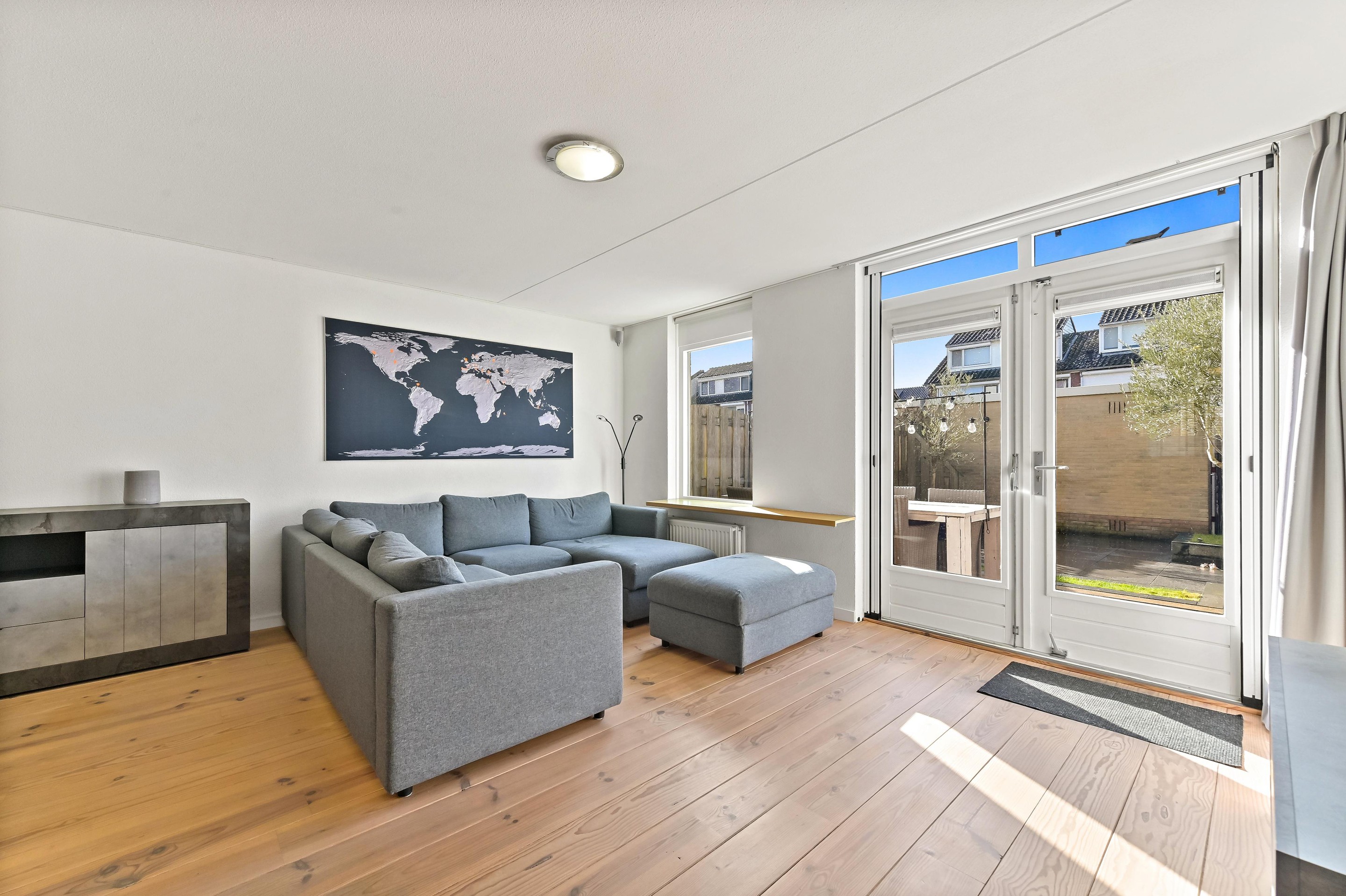 Via het autovrije voetpad aan de voorzijde bereikt u de entree van de woning. In de hal bevinden zich de meterkast, het toilet met wandcloset en fonteintje en de trapopgang naar de eerste verdieping. Vervolgens stapt u in de lichte en breed georiënteerde woonkamer. De grote raampartijen aan de achterzijde zorgen voor een prachtige lichtinval en vrij uitzicht op de fraai aangelegde achtertuin met berging en achterom. Dankzij de openslaande deuren staat de woonkamer in directe verbinding met buiten, waardoor u op zonnige dagen optimaal kunt genieten van het binnen- en buitenleven. De achtertuin is ruim 10 meter diep en gunstig gelegen op het zuidwesten, waardoor u hier volop van de middag- en avondzon geniet. In de tuin is tuinverlichting aanwezig welke functioneert met behulp van sensoren. Achterin de tuin staat een stenen berging waar u met gemak de fietsen van het gehele gezin kunt stallen. De woonkamer is ruim en praktisch ingedeeld en beschikt over een trapkast voor extra bergruimte. Aan de voorzijde van de woning bevindt zich de moderne keuken in parallel opstelling met verdiept aanrechtblad en aangrenzende bar. De keuken is enkele jaren gelegen volledig gerenoveerd en stijlvol afgewerkt. Naast de diverse opbergmogelijkheden is de keuken voorzien van hoogwaardige inbouwapparatuur waaronder een koel-vrieskast, vaatwasser, Bora inductiekookplaat met geïntegreerde afzuiging, combi-oven en spoelbak met Quooker. Kookfanaten kunnen hier met veel plezier aan de slag!