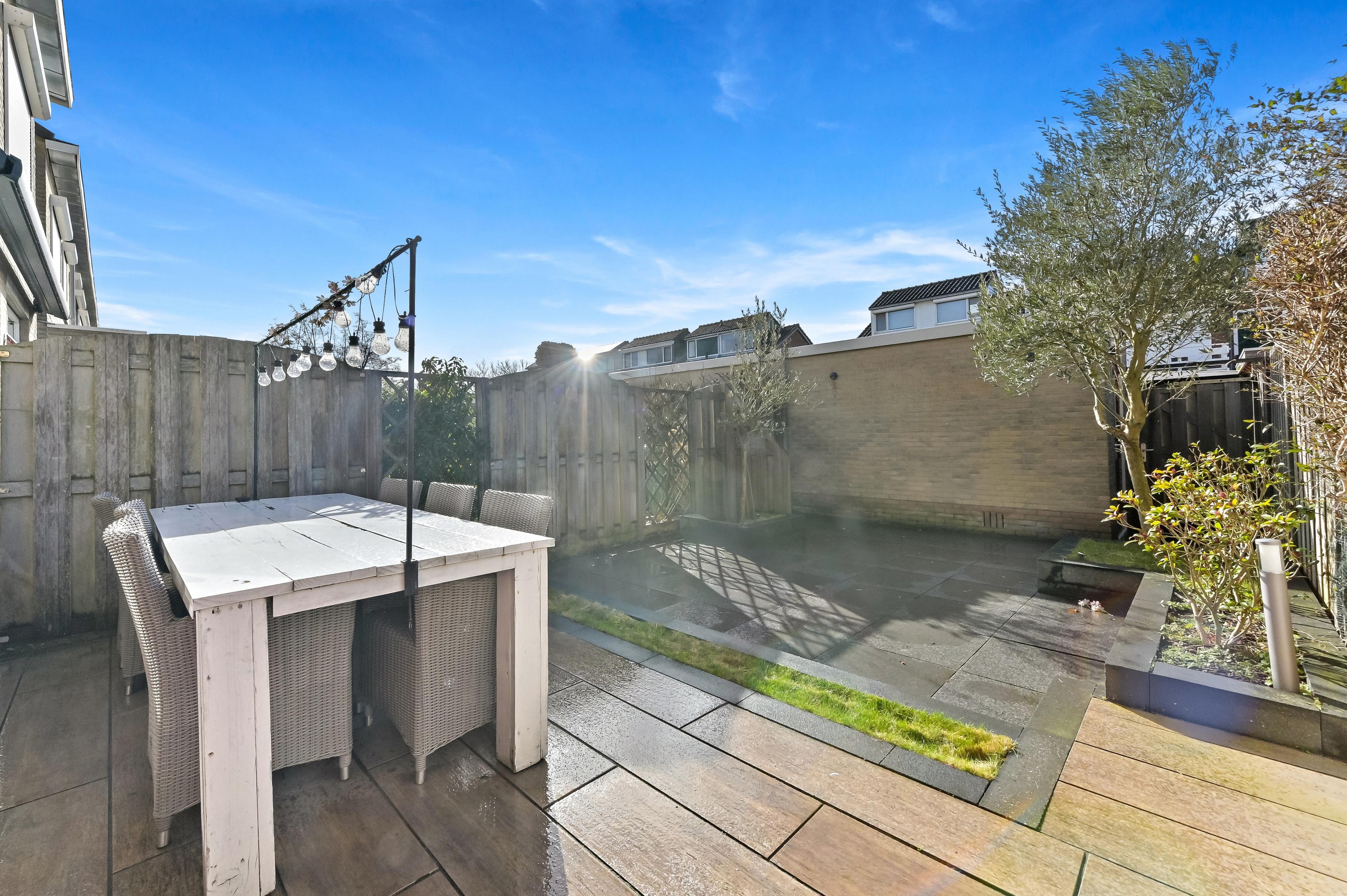 - Zonnige achtertuin op het zuidwesten met berging en achterom