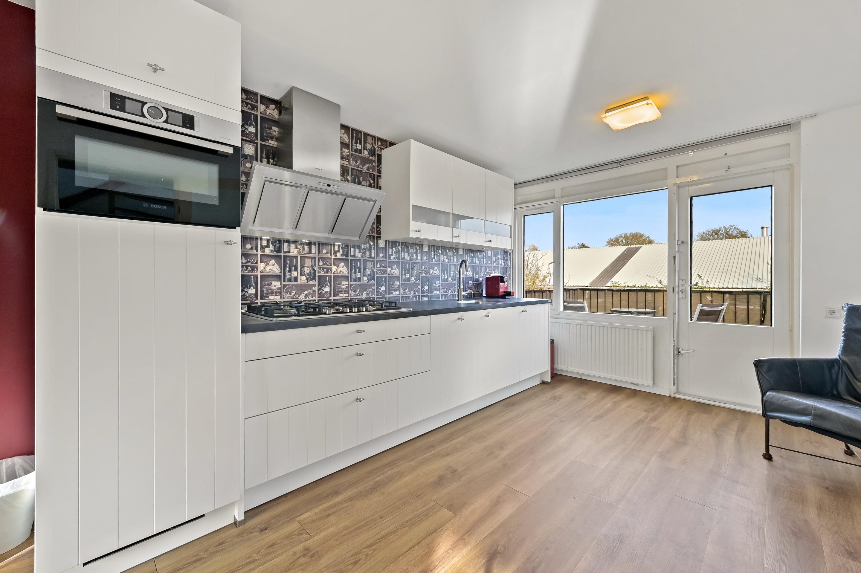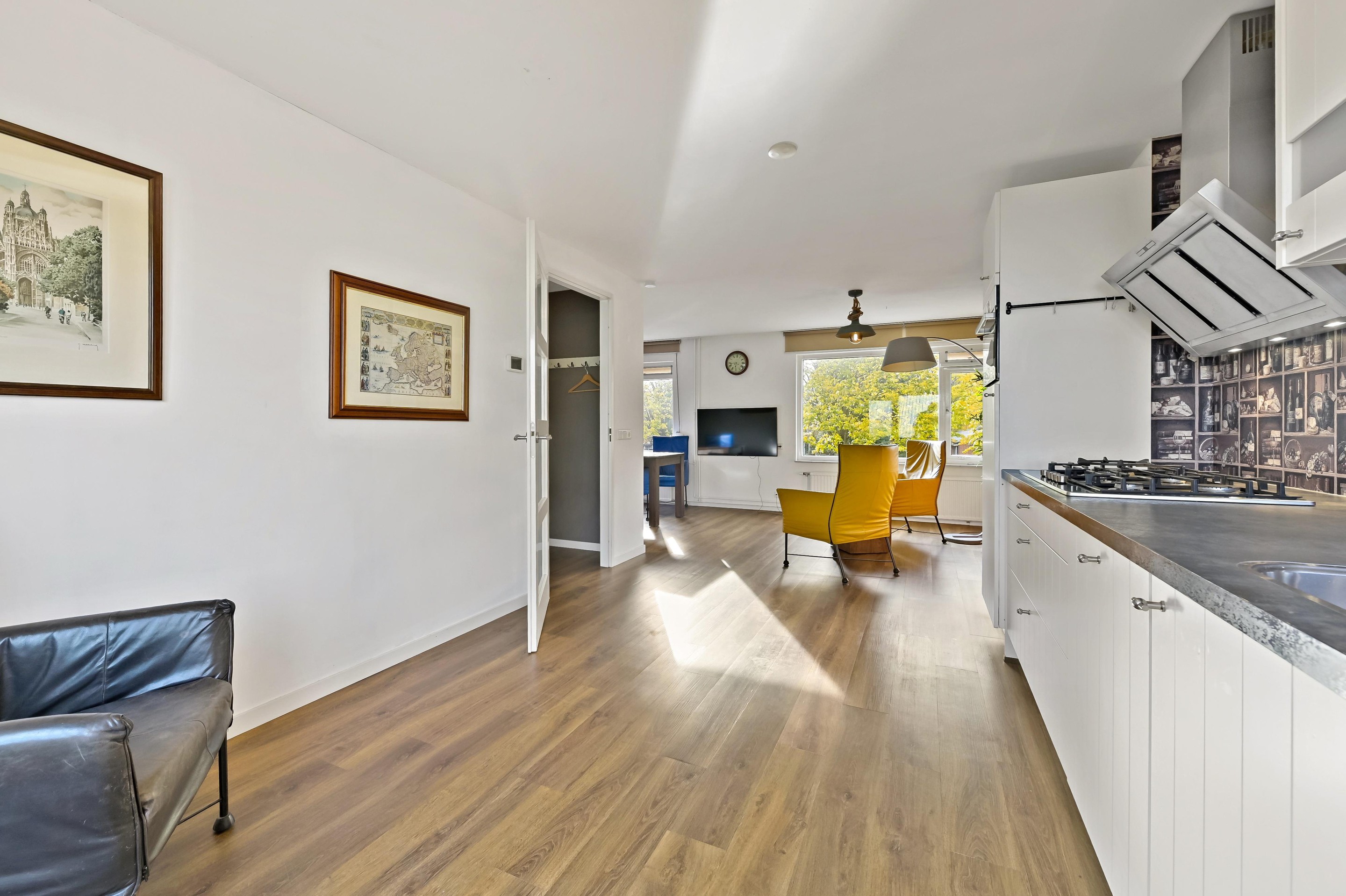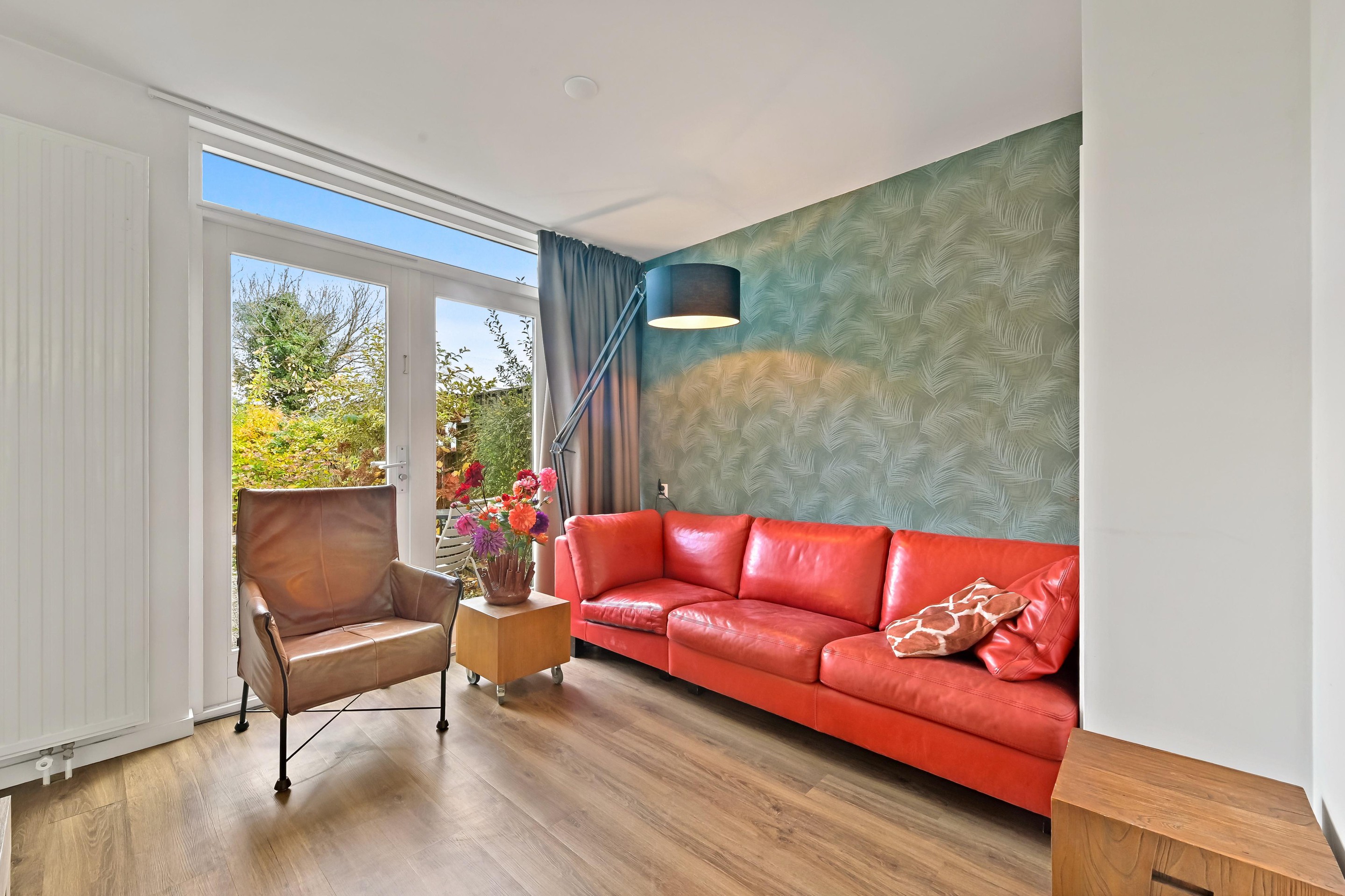 Vanuit de hal is er toegang tot een tussenhal naar de woonkamer en een (eerste) moderne toiletruimte welke is voorzien van wandcloset en fonteintje. De nette (eerste) keuken in rechte opstelling bevindt zich aan de voorzijde van de woning. De keuken is voorzien van diverse inbouwapparatuur, waaronder een koel-vriescombinatie, gaskookplaat, RVS afzuigkap, vaatwasser en combi-oven. In de keuken is voldoende plek voor het plaatsen van een fijne eettafel met zicht op de Hofsingel. Het sfeervolle zitgedeelte bevindt zich aan de achterzijde van de woning en biedt via openslaande deuren toegang tot de achtertuin met berging en achterom. Grenzend aan de (eerste) woonkamer vind je nu een (eerste) slaapkamer met loopdeur naar de tuin, vaste kast met aansluitingen voor de wasmachine/droger en de badkamer. De nette (eerste) badkamer is voorzien van douchecabine, wasgelegenheid en mechanische ventilatie.