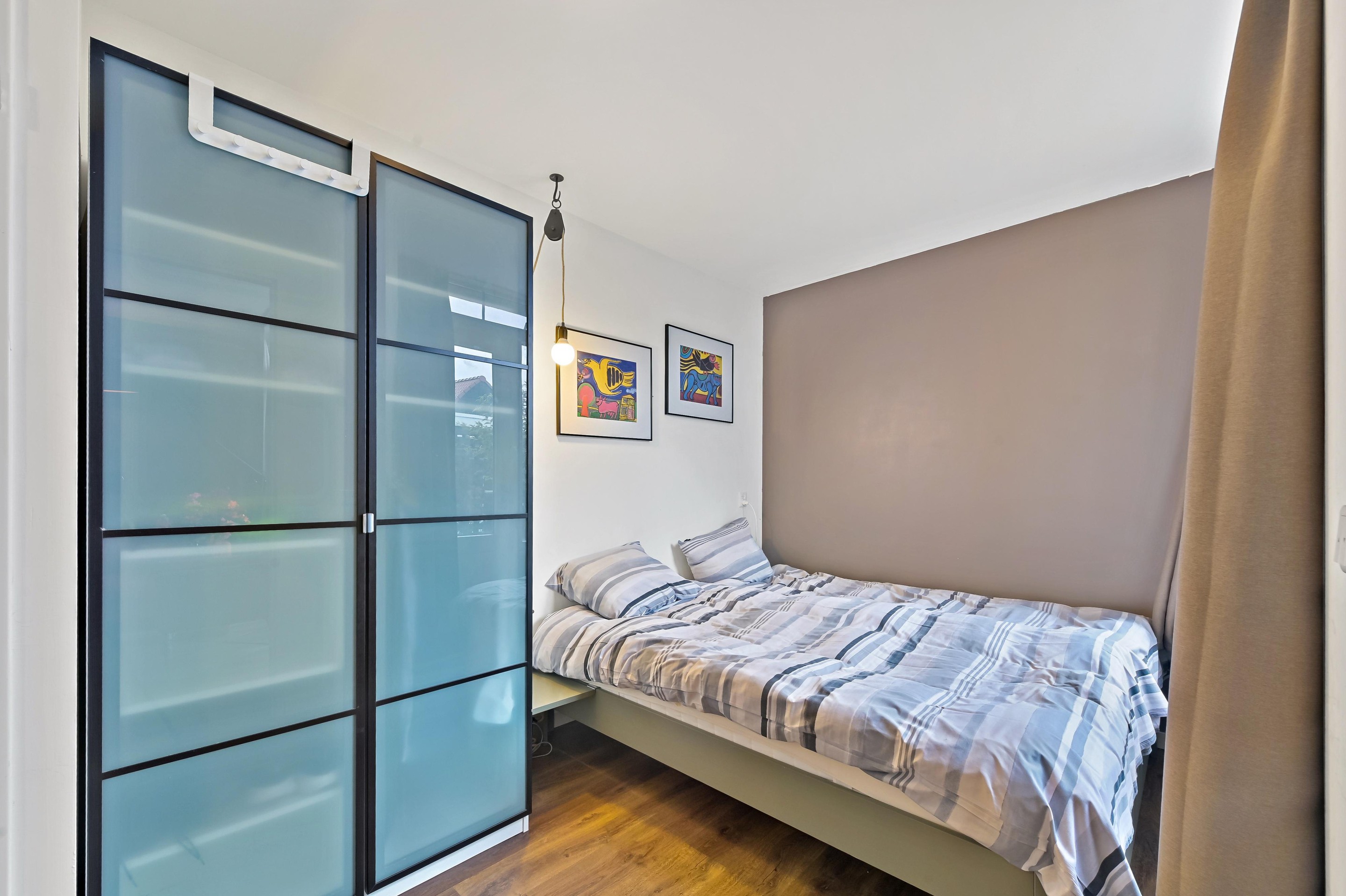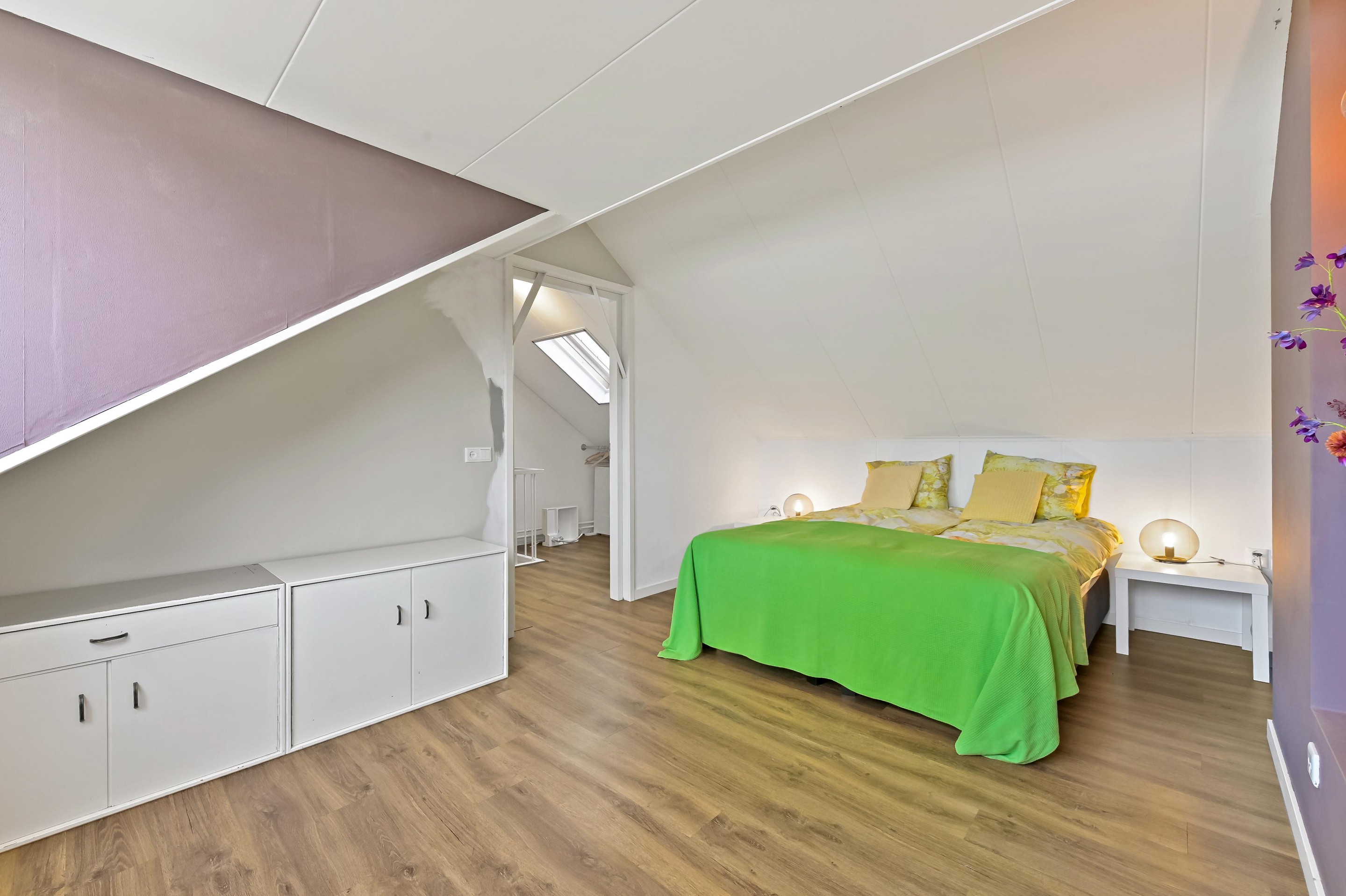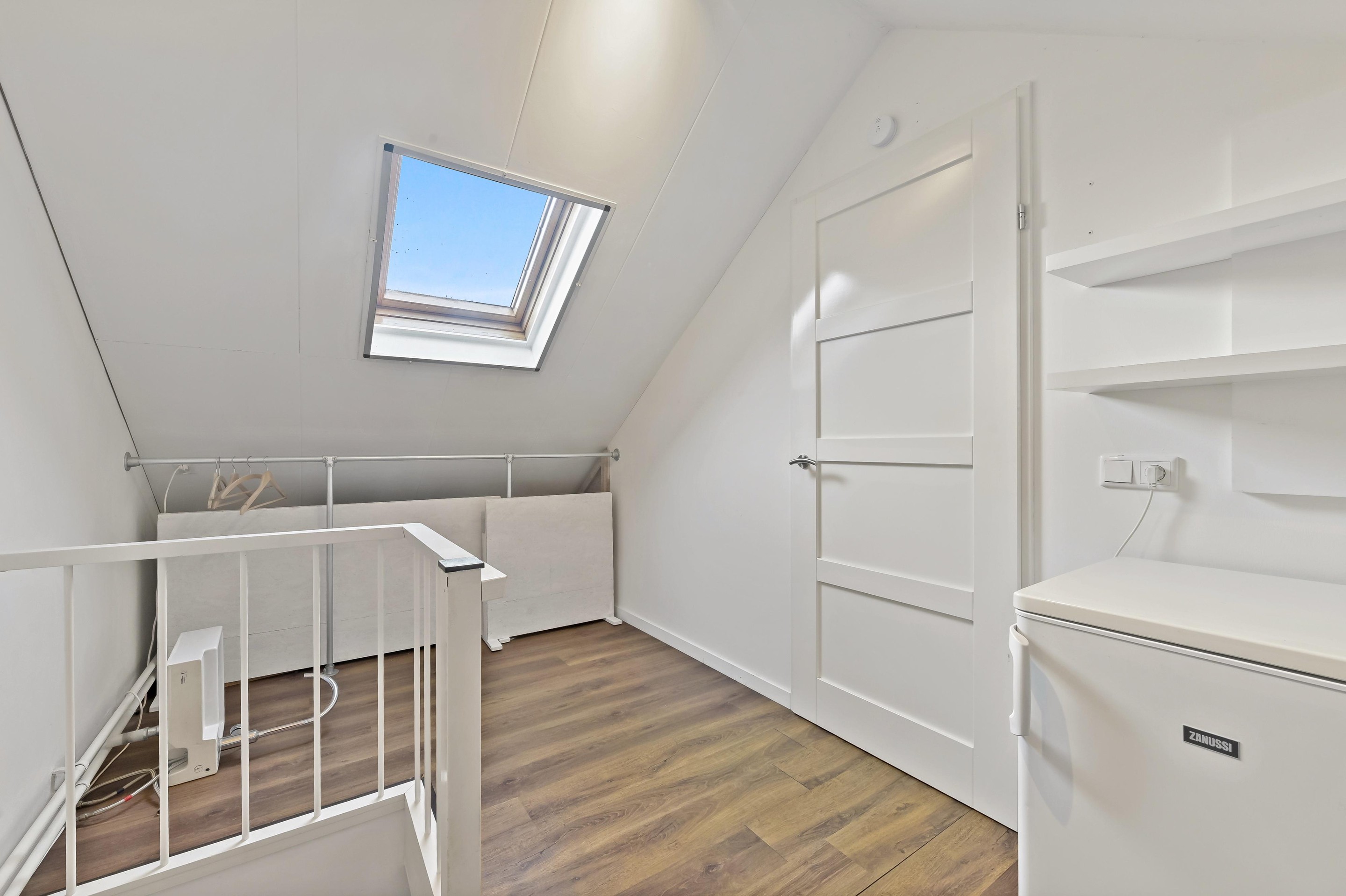 Overloop met opstelplaats voor de C.V. ketel, wasmachine en wasdroger. De overloop beschikt over een dakraam en veel bergruimte achter de knieschotten. Op de tweede verdieping is een ruime slaapkamer met dakkapel aan de achterzijde te vinden.