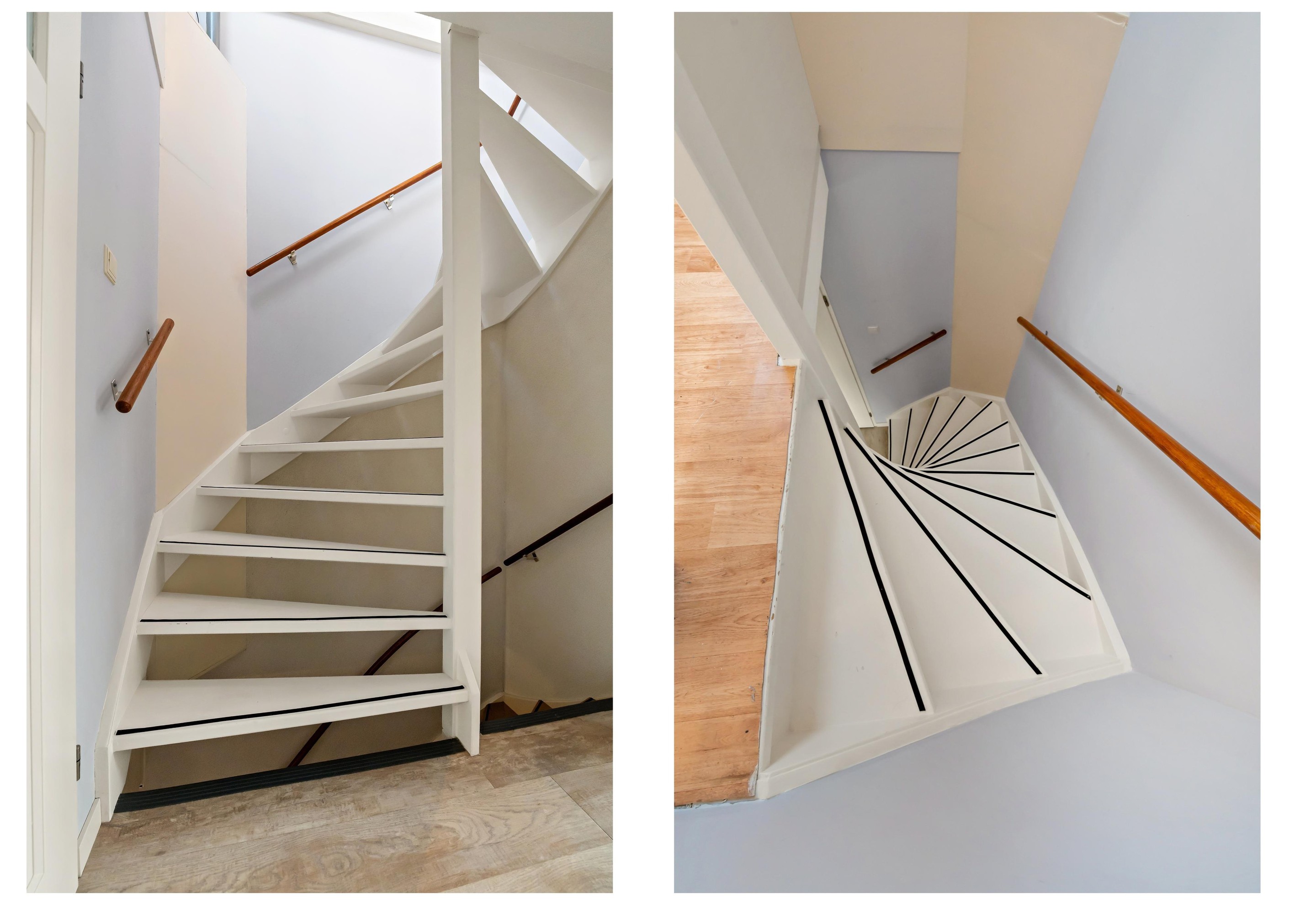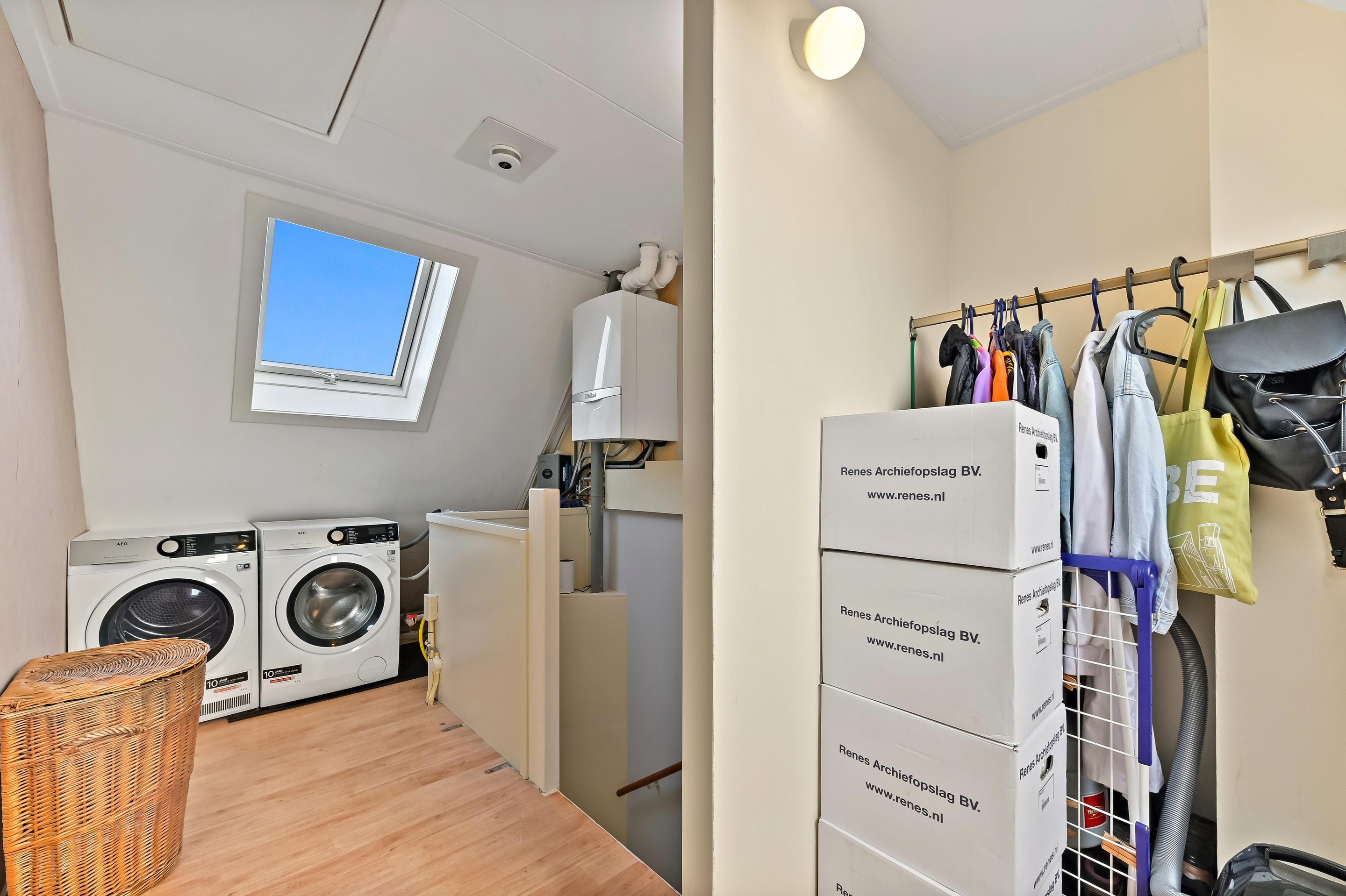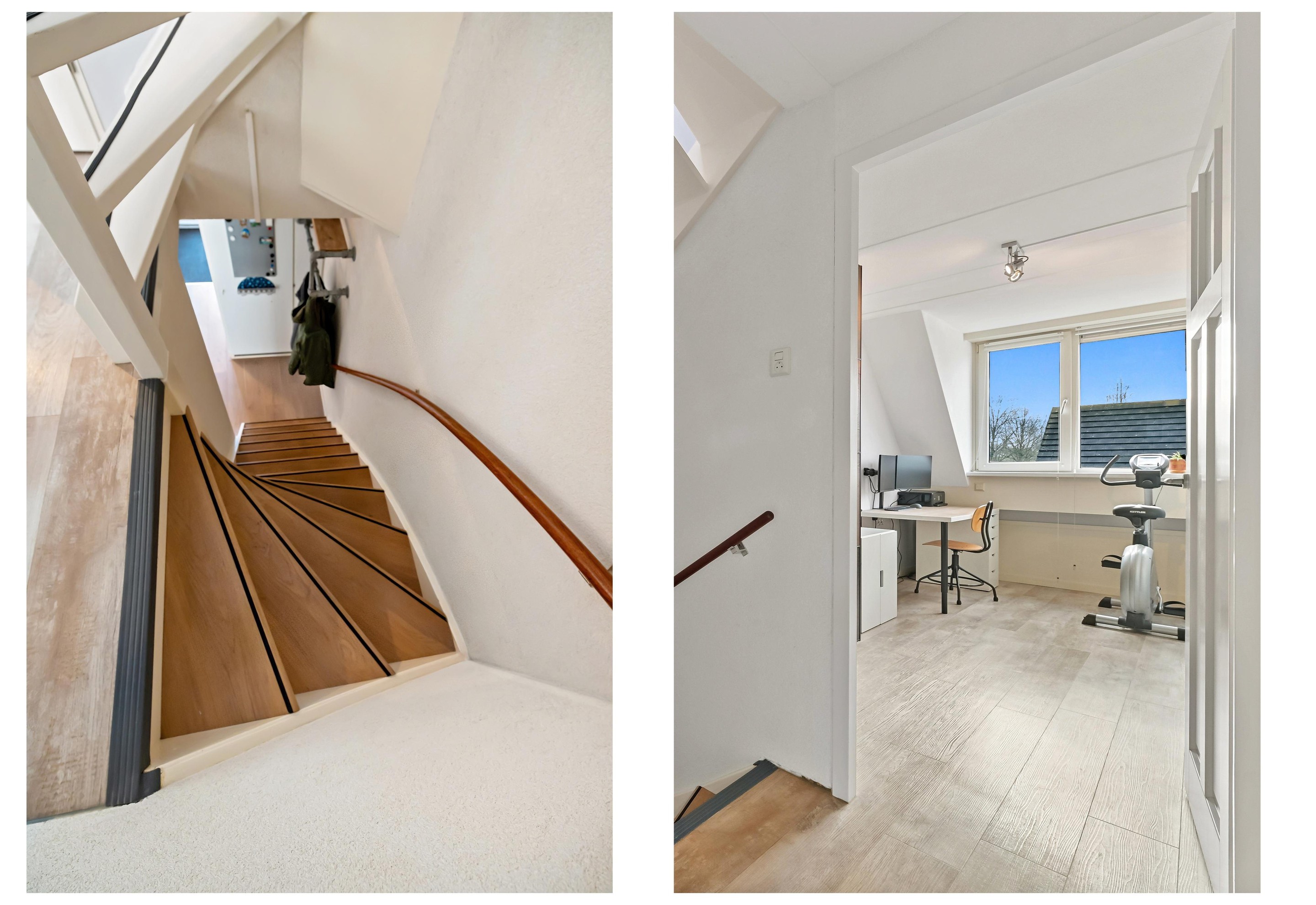 Ruime overloop met grote dakramen en vlizotrap naar de bovengelegen bergvliering. Op de overloop vindt u de aansluitingen voor de wasmachine, wasdroger, C.V. ketel (Vaillant uit 2011) en omvormer voor de zonnepanelen. Aan de andere zijde is nog een ruimte aanwezig die ingericht kan worden als bijvoorbeeld werk- of strijkruimte. De ruime vierde slaapkamer over de volledige lengte is voorzien van een nette PVC vloer, groot dakraam en bergruimte achter de knieschotten. Dit is een fijne kamer om in te richten als bijvoorbeeld kinderkamer of sportruimte.
