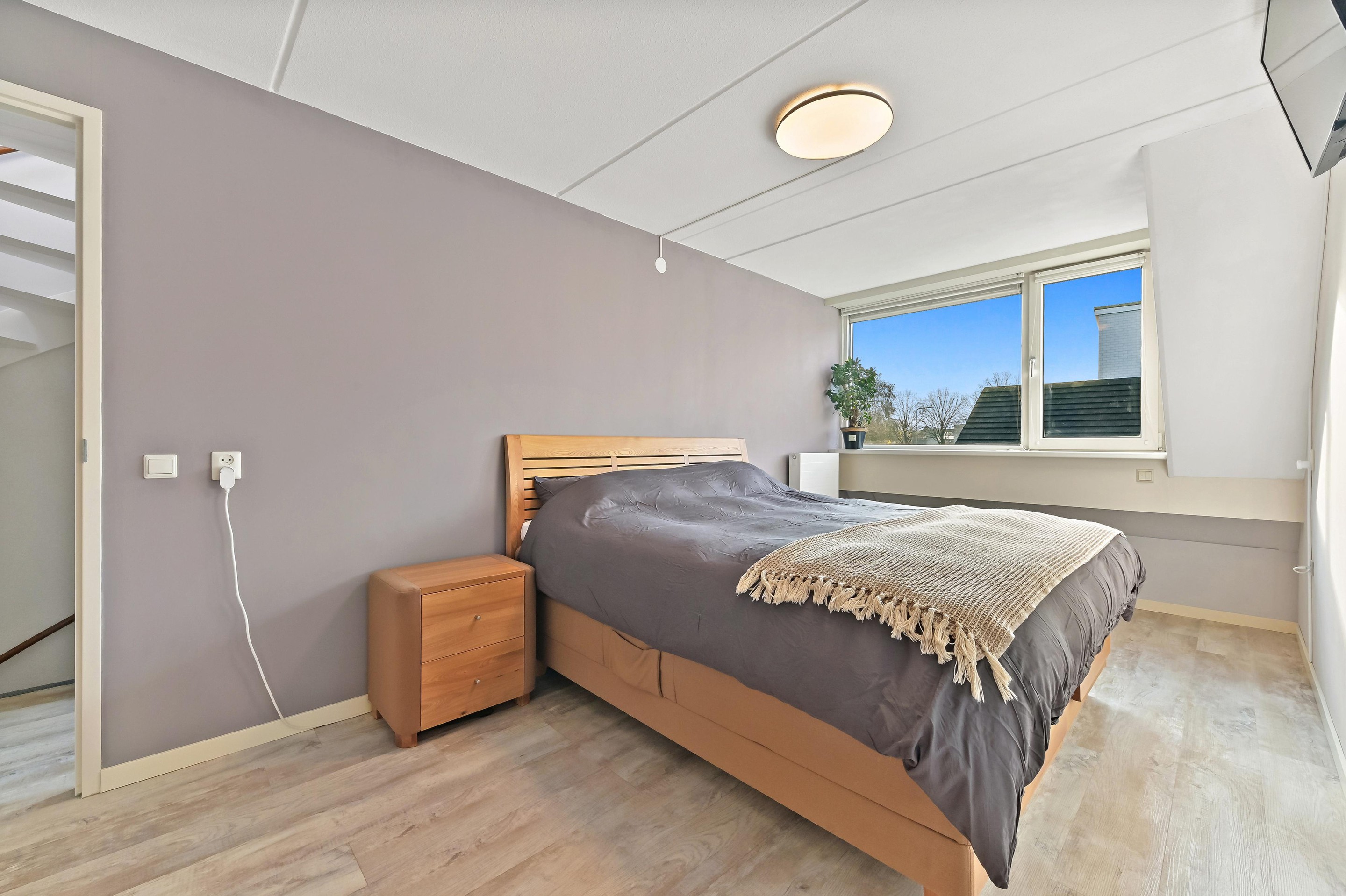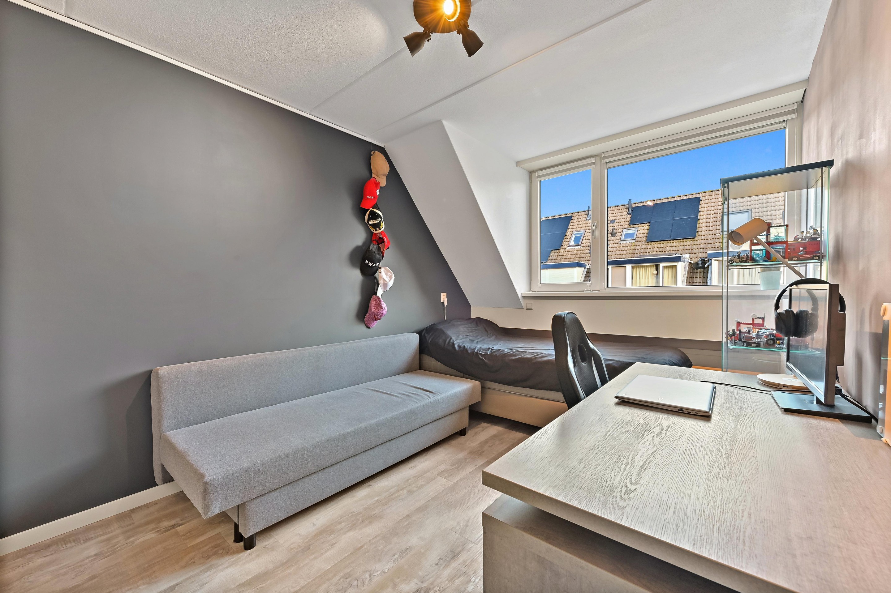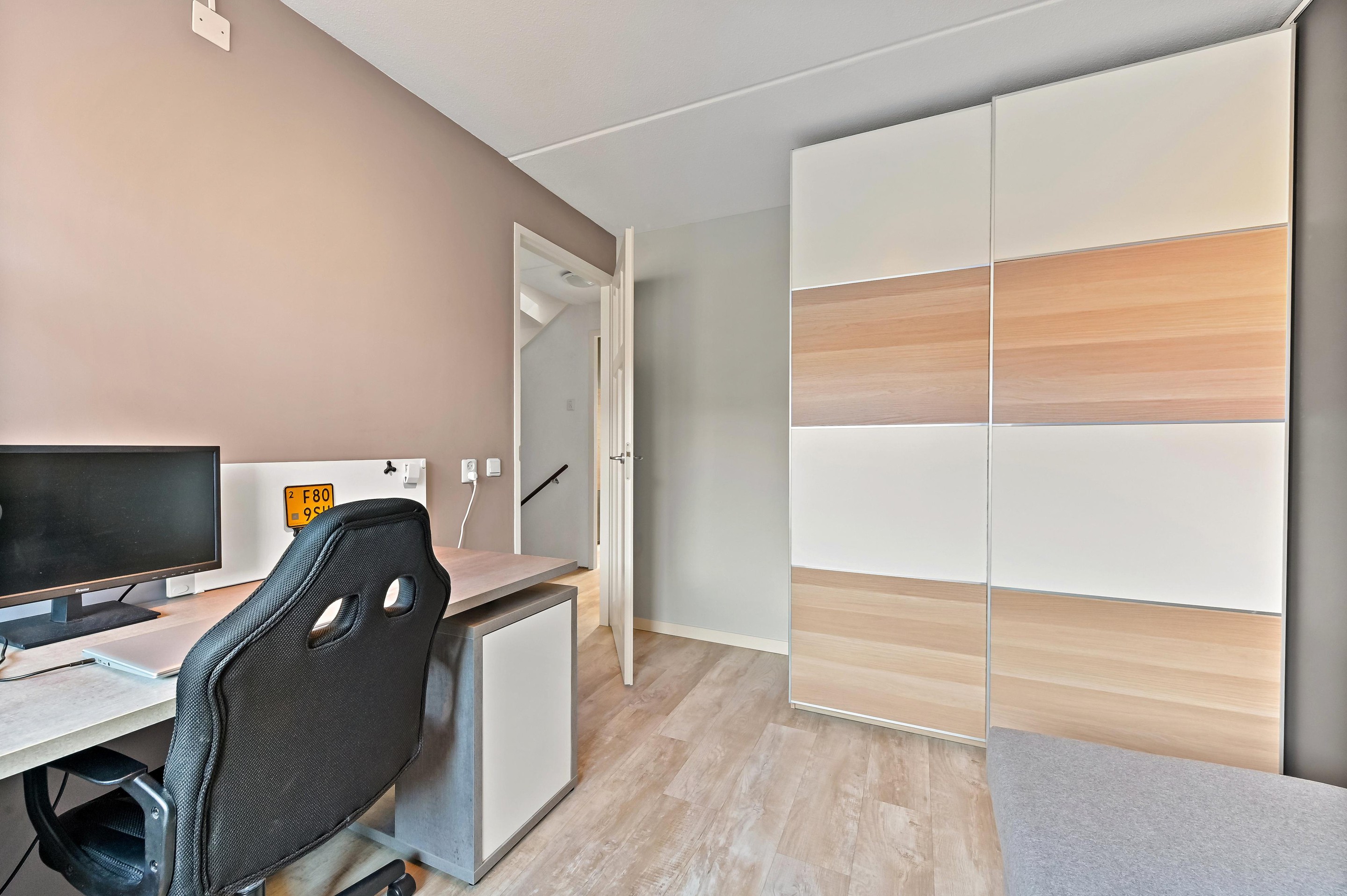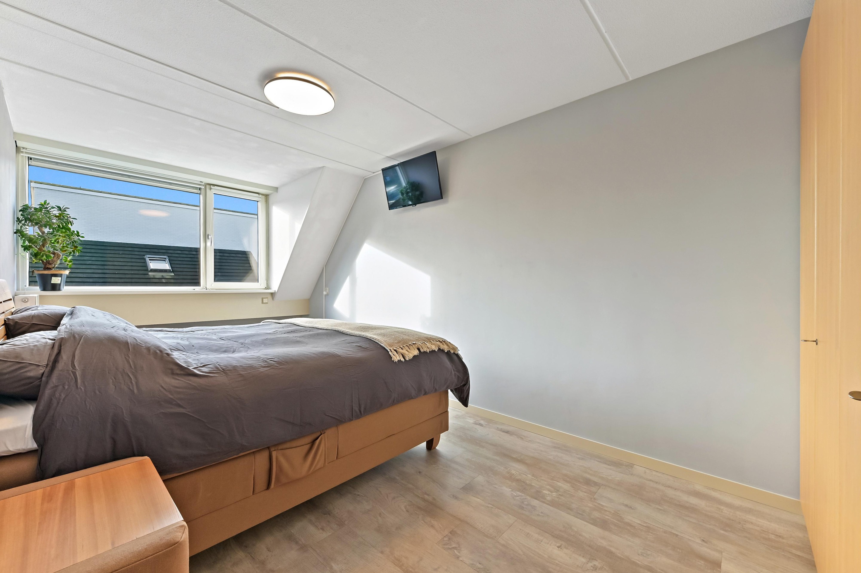 De eerste verdieping met trapopgang naar de zolderetage biedt toegang tot drie ruime slaapkamers en de badkamer. De hoofdslaapkamer bevindt zich aan de achterzijde evenals de tweede slaapkamer welke op dit moment wordt gebruikt als kantoorruimte aan huis. Aan de voorzijde van de woning is de derde slaapkamer te vinden. De badkamer is compleet uitgerust met ligbad, douchecabine met rainshower, tweede toilet en wastafelmeubel. De eerste verdieping is (met uitzondering van de badkamer) voorzien van een nette PVC vloer en gestucte wanden. Dankzij de grote dakkapellen welke zijn voorzien van elektrisch bedienbare rolluiken is de eerste verdieping heerlijk ruim.