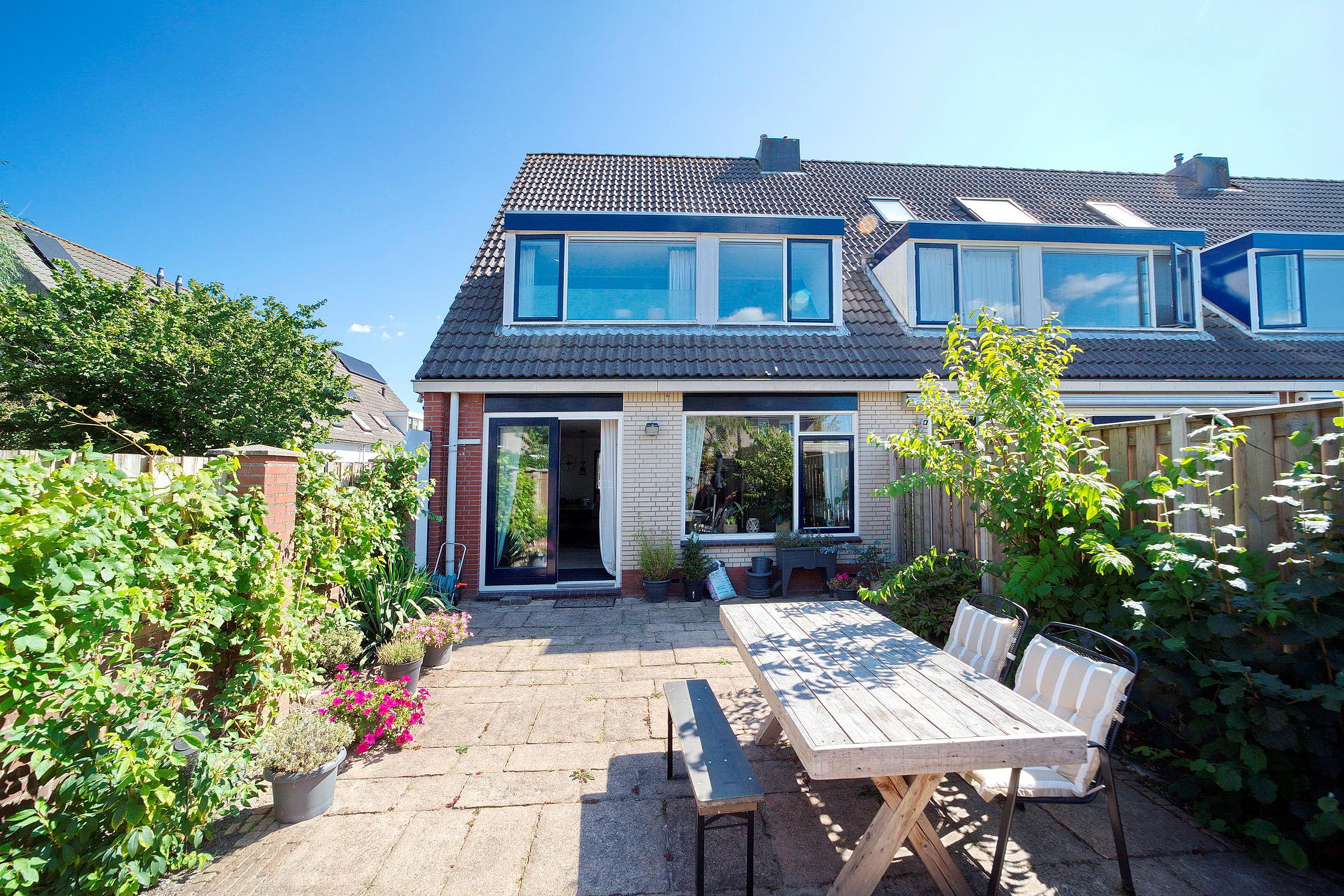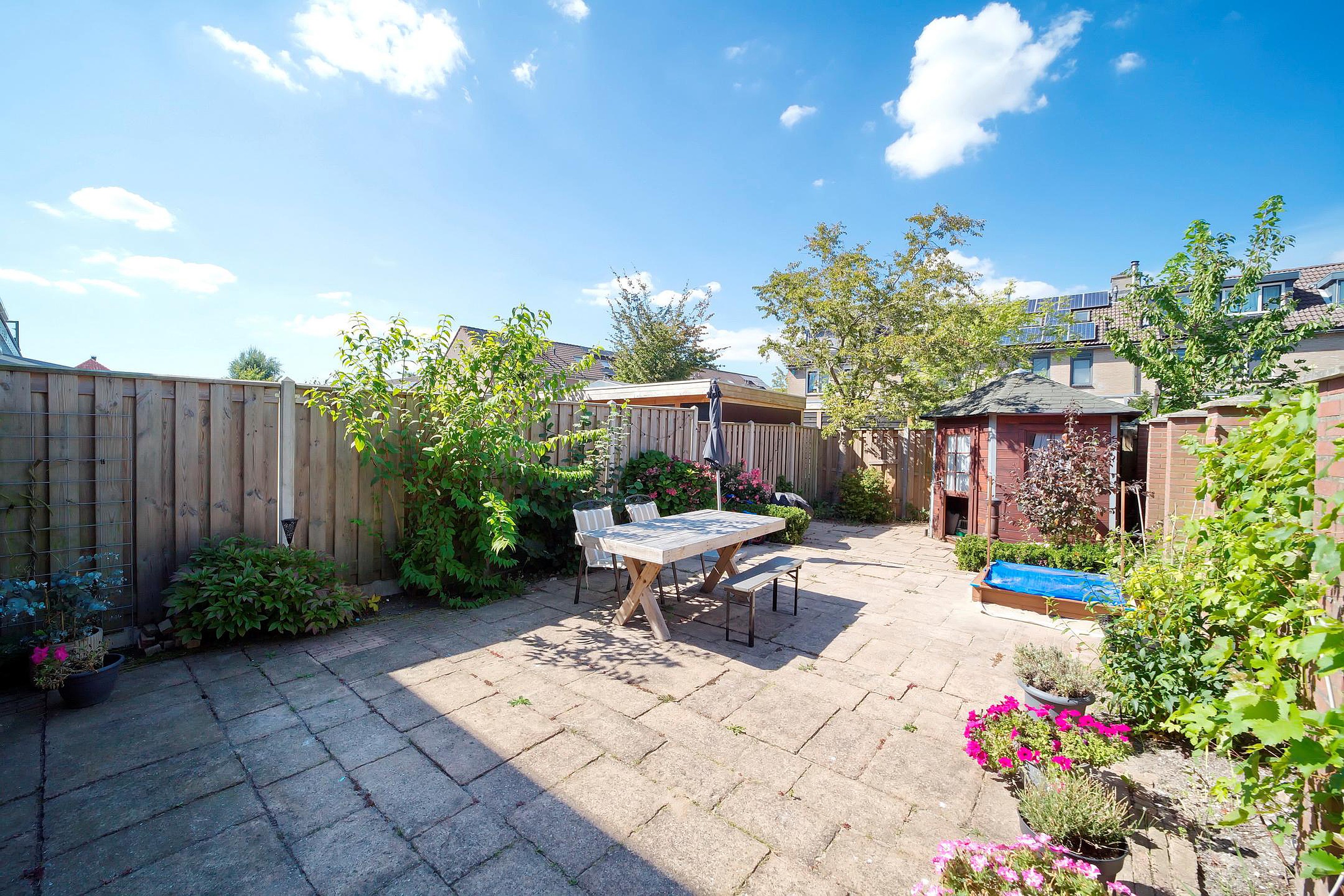 Via een schuifdeur is de diepe grotendeels betegelde achtertuin, gelegen op het noordwesten, bereikbaar. Door de gunstige ligging kun je hier in de namiddag nog volop van de zon genieten. Er is een buitenkraan en een achterom.