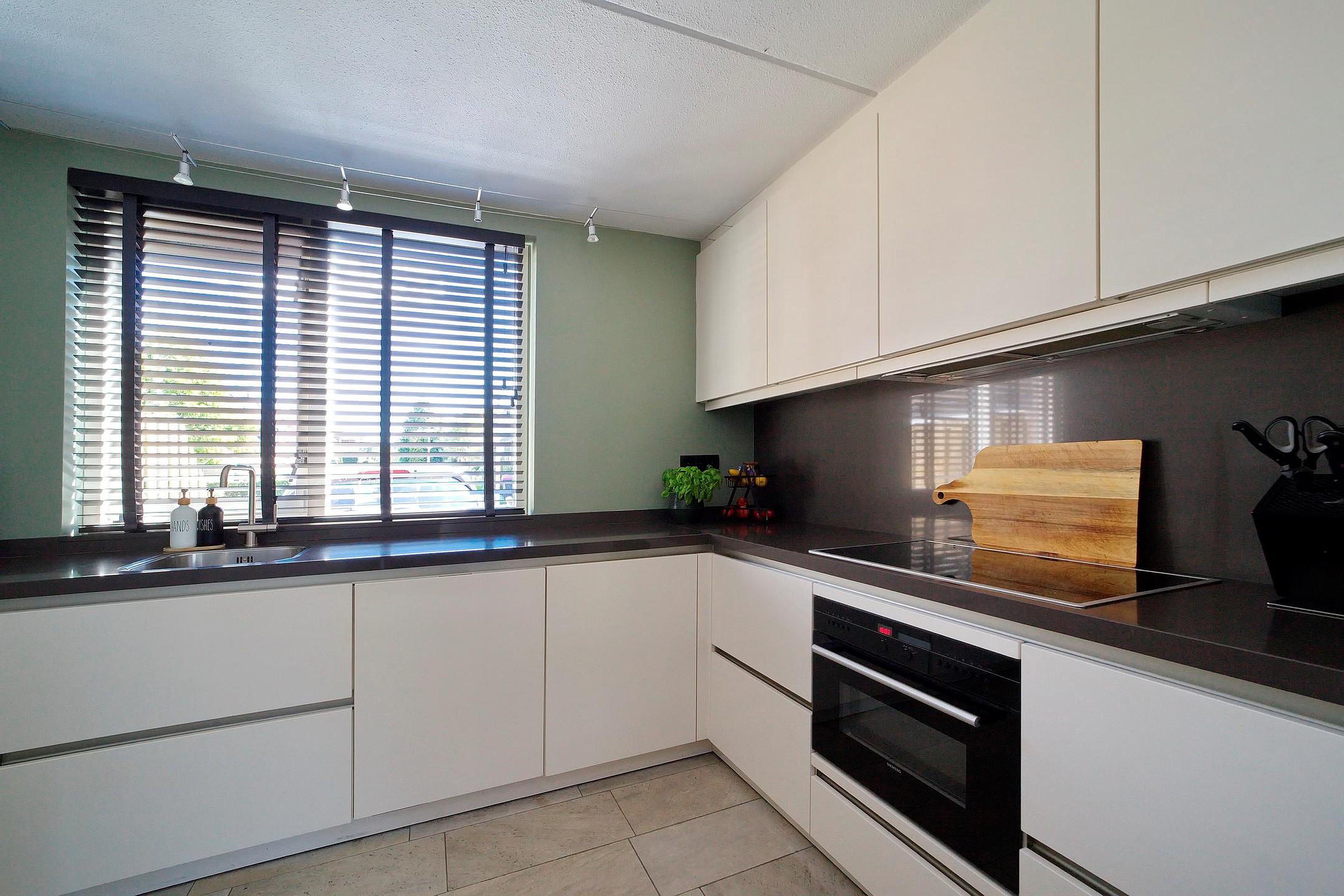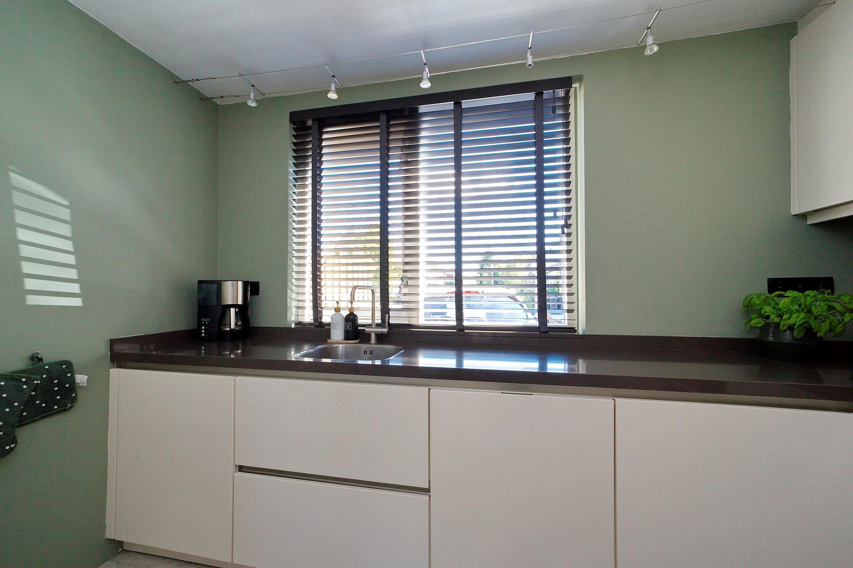 Door de grote raampartij beschikt de keuken over veel natuurlijke lichtinval.