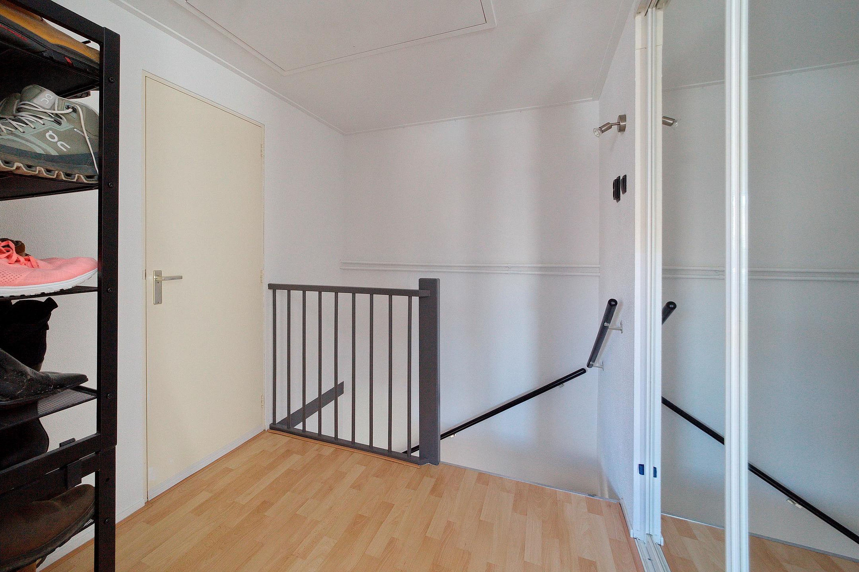Via de vaste trap kom je op de tweede verdieping. Op de overloop staat een grote vaste kast met veel bergruimte. Ook op de vliering, bereikbaar met een vlizotrap, kun je veel spullen kwijt.