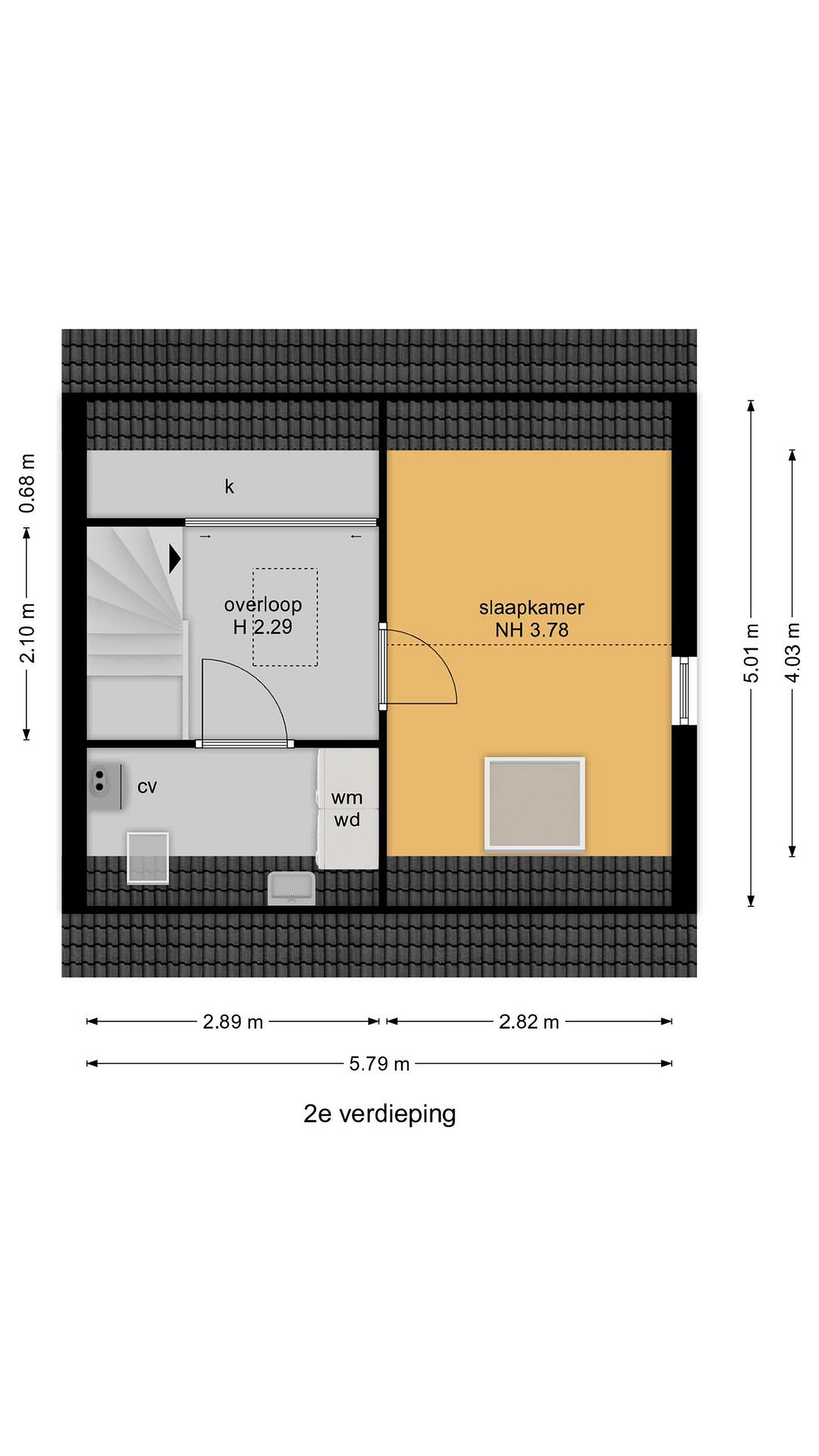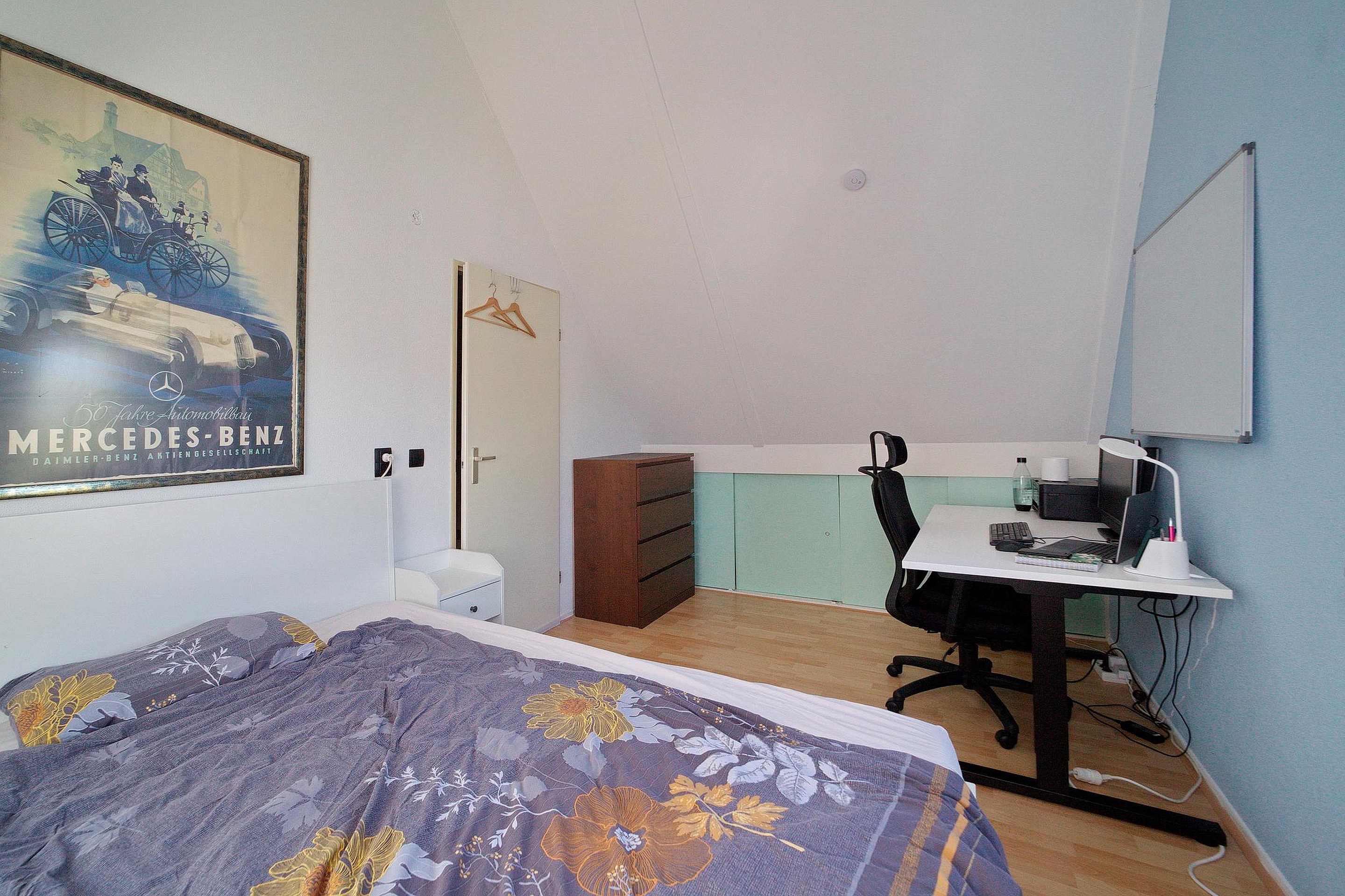 Verder vind je hier de afgesloten wasruimte (met opstelplaats voor de Cv-ketel en een was/droogcombinatie) en de riante 4e slaapkamer met hoge nok en zij- en dakraam.