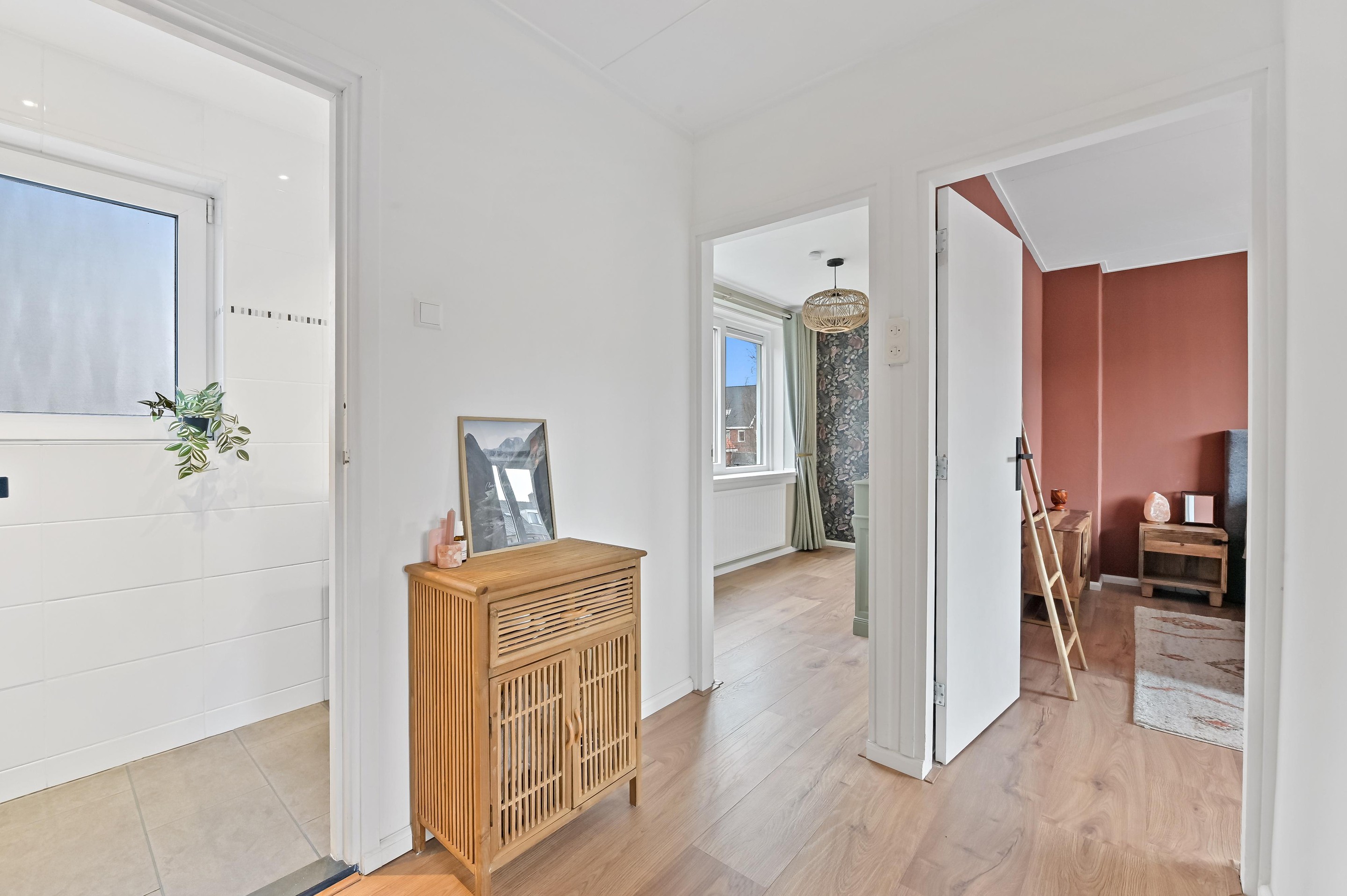 Dankzij de nokverhoging is ook de tweede verdieping verrassend ruim en volledig bruikbaar. De royale overloop biedt toegang tot de bergkast en vierde slaapkamer; ideaal te gebruiken als tienerkamer, werkruimte of logeerkamer. Met knieschotten heb je bovendien meer dan genoeg bergruimte.