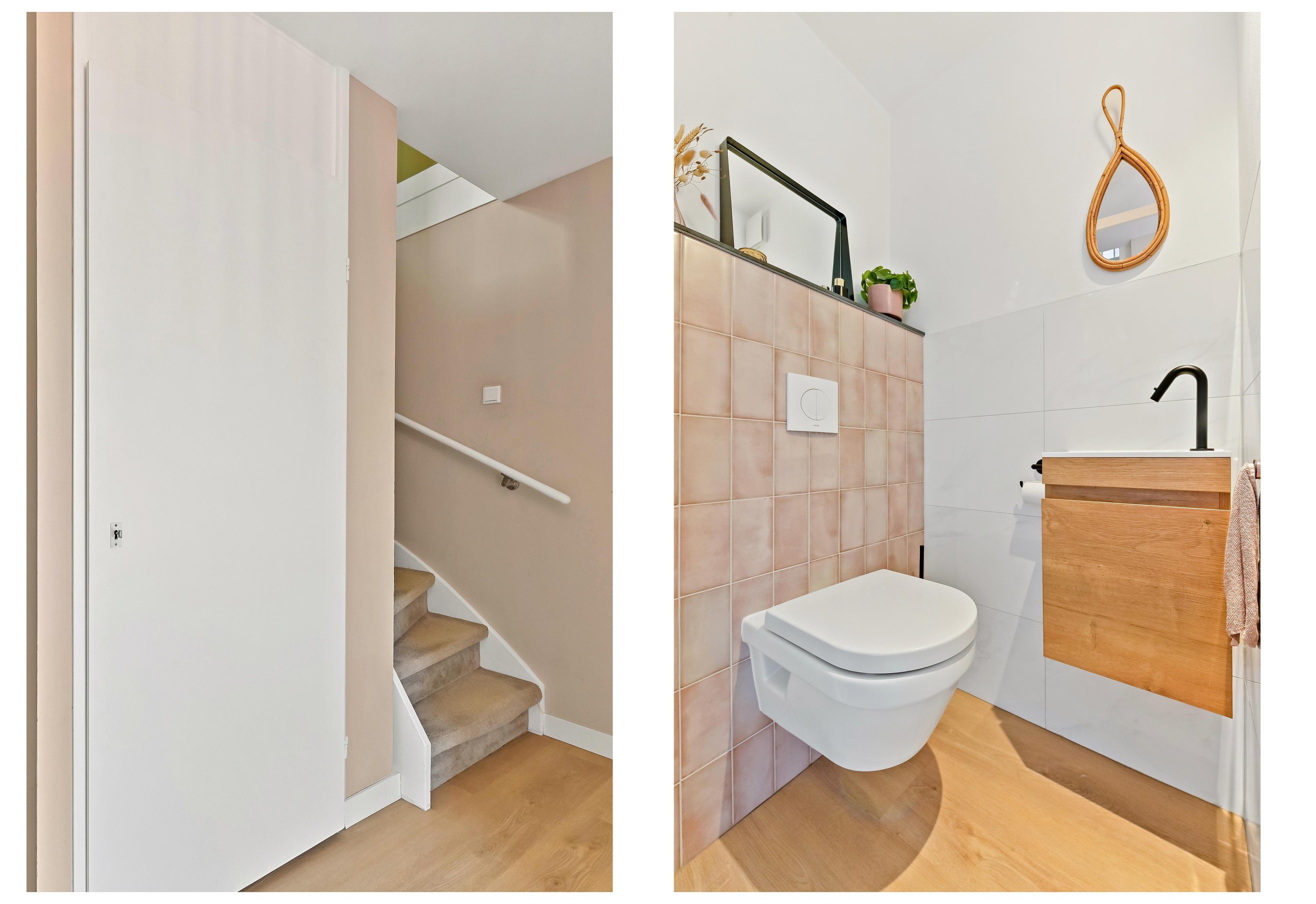 Via de verzorgd aangelegde tuin met beukenhaag en buitenkraan bereikt u de entree van de woning. U komt binnen in een lichte en uitnodigende hal met een gemoderniseerde meterkast, een luxe toilet met fonteintje in meubel, de trapopgang naar de eerste verdieping en een ruime trapkast welke op dit moment in gebruik is als wasruimte. Vanuit de hal betreedt u via een schuifdeur de royale woonkamer welke op een prettige manier is ingedeeld met een comfortabele zithoek met vrij uitzicht. De royale woonkeuken bevindt zich aan de achterzijde van de woning. Dankzij de grote raampartijen aan meerdere zijden is de gehele leefruimte heerlijk licht en voelt deze bijzonder ruim aan. De dubbele schuifpui vanuit de keuken biedt toegang tot de zonnige achtertuin. Hier kunt u de hele dag genieten van de zon. Aan de achtergevel is een elektrisch bedienbare zonwering gemonteerd, welke ter overname wordt aangeboden. In de tuin is een vrijstaande stenen berging en een praktische zij-uitgang aanwezig. De luxe woonkeuken met kastenwand en schiereiland vormt een centraal onderdeel van de begane grond en is uitgevoerd met hoogwaardige materialen en voorzien van diverse inbouwapparatuur. Zo vindt u hier naast de diverse opbergkasten onder andere een koel-vriescombinatie, inductie kookplaat met downdraft, combi-oven, vaatwasser en spoelbak met Quooker. Daarnaast is er in de woonkeuken plek voor een grote eettafel. Deze ruimte vormt daardoor dé ideale plek voor gezellige diners en lange avonden met familie of vrienden. De gehele begane grond, inclusief de meterkast, is in 2022 volledig gerenoveerd en afgewerkt met onder andere een fraaie PVC vloer met vloerverwarming, strak gestucte wanden en plafonds en stijlvolle details.