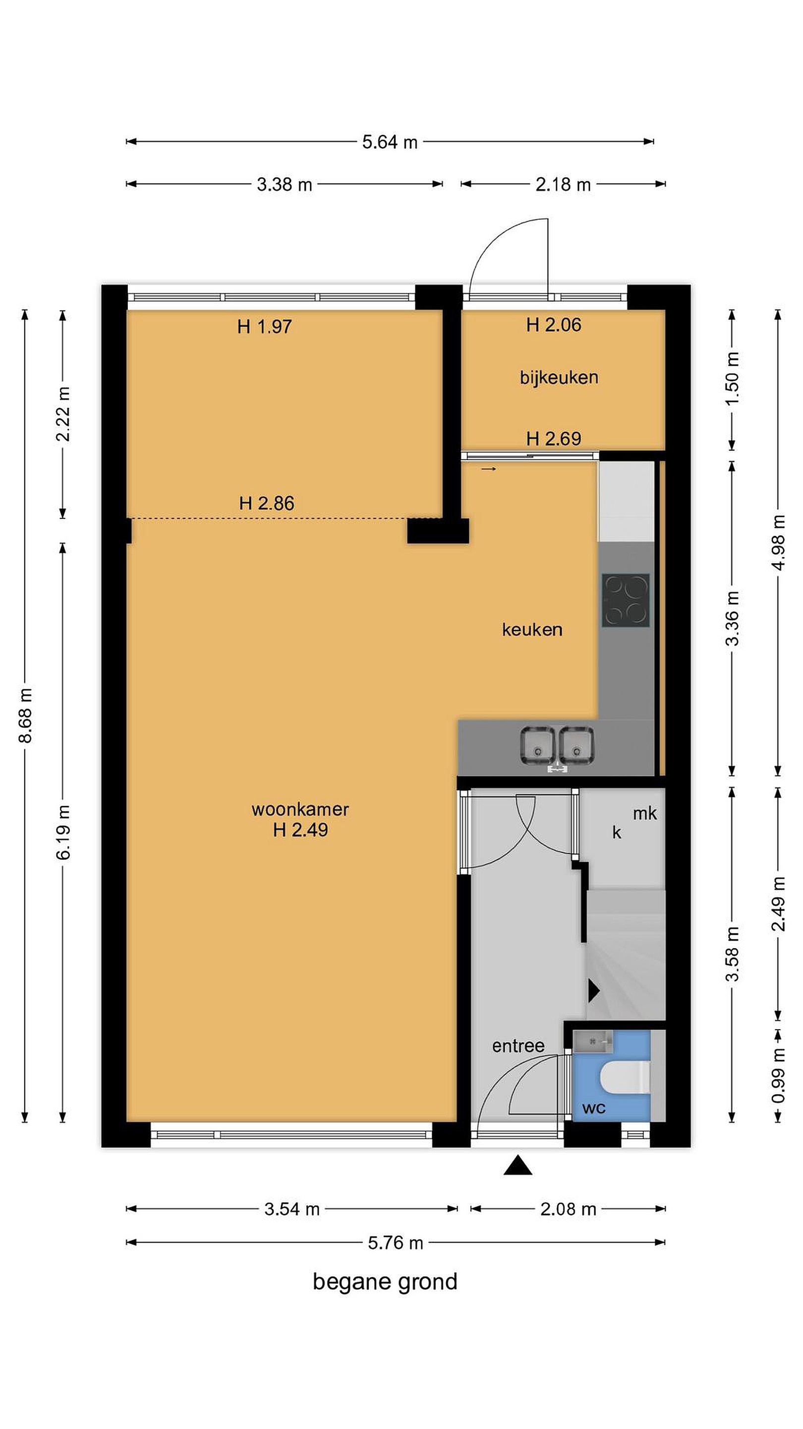 De vermelde informatie is van algemene aard en is niet meer dan een uitnodiging om de woning te bezichtigen of om in onderhandeling te treden. Hoewel deze tekst en plattegrond met zorg zijn samengesteld zijn wij niet aansprakelijk voor eventuele onjuistheden. De toegepaste Meetinstructie sluit verschillen in meetuitkomsten niet volledig uit, door bijvoorbeeld interpretatieverschillen, afrondingen of beperkingen bij het uitvoeren van de meting. Aan de inhoud van deze informatie kunnen geen rechten worden ontleend.