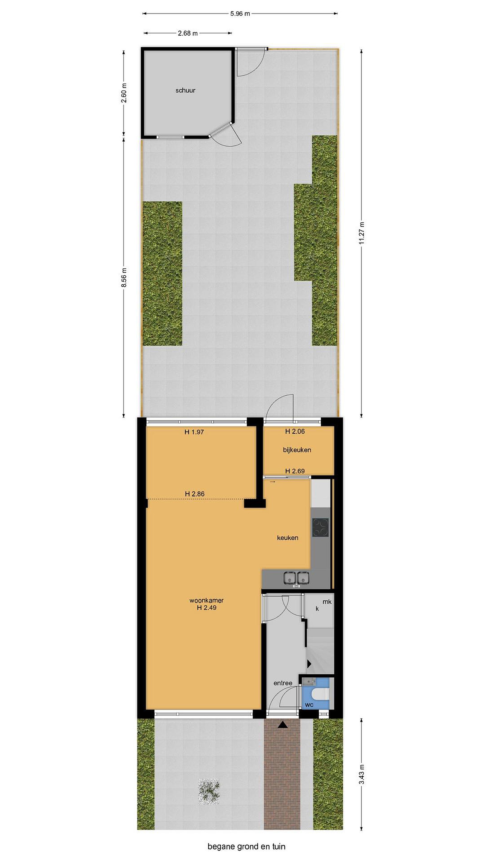 - Ruim 11 meter diepe achtertuin met stenen berging