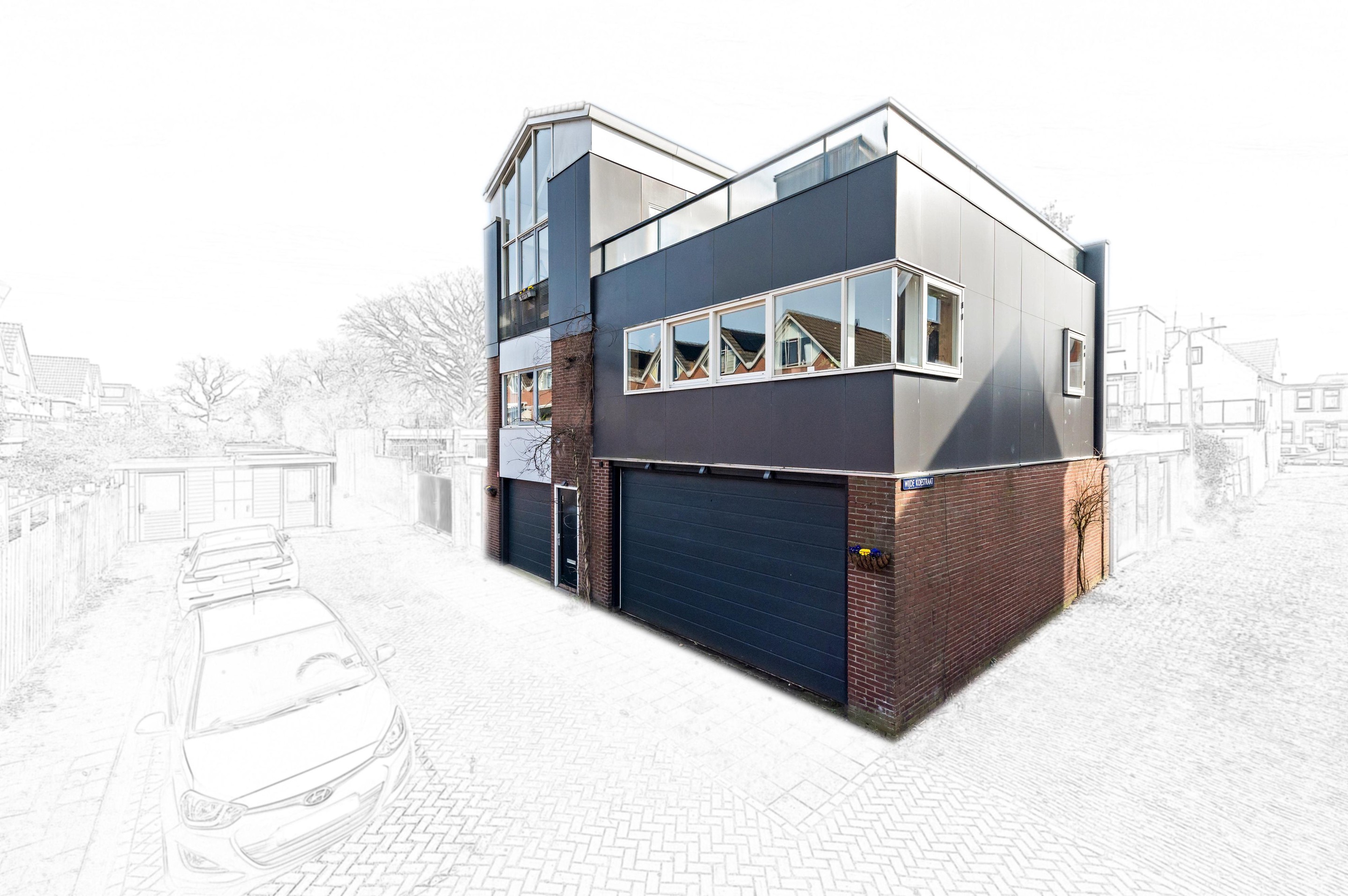 - De opbouw op de grote garage met dakterras is in 2015 gerealiseerd