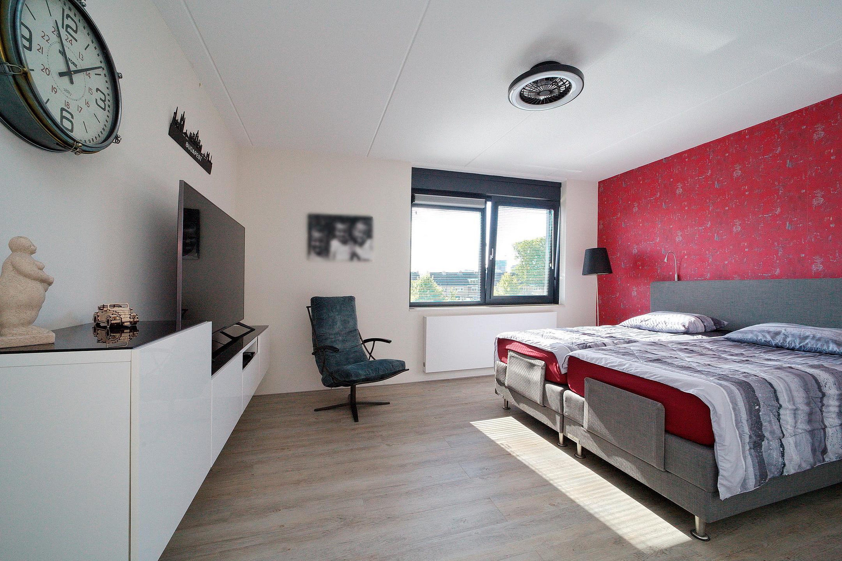 De master bedroom ligt aan de achterzijde. Alle slaapkamers hebben een kledingkast die achterblijft.