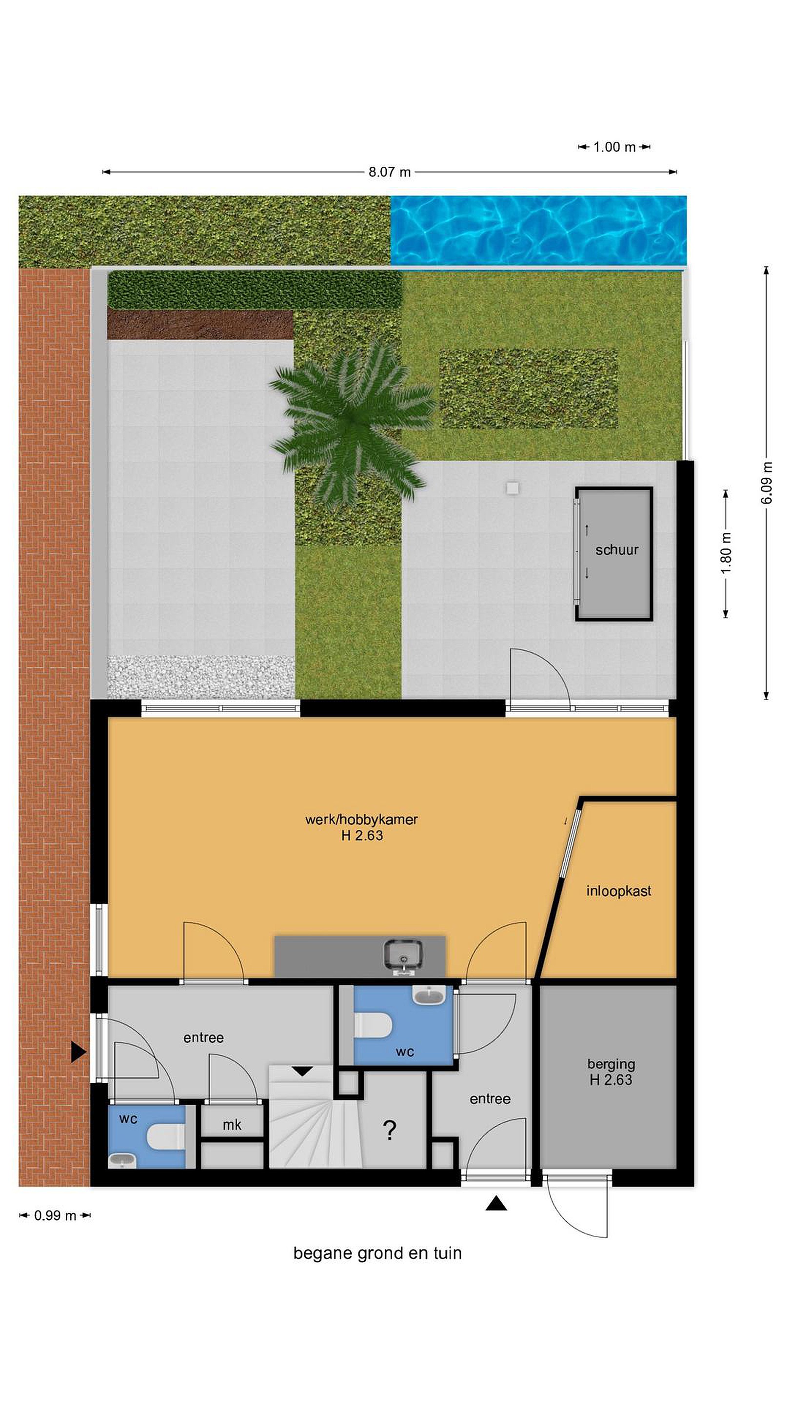 - Ruime inpandige berging buitenom bereikbaar