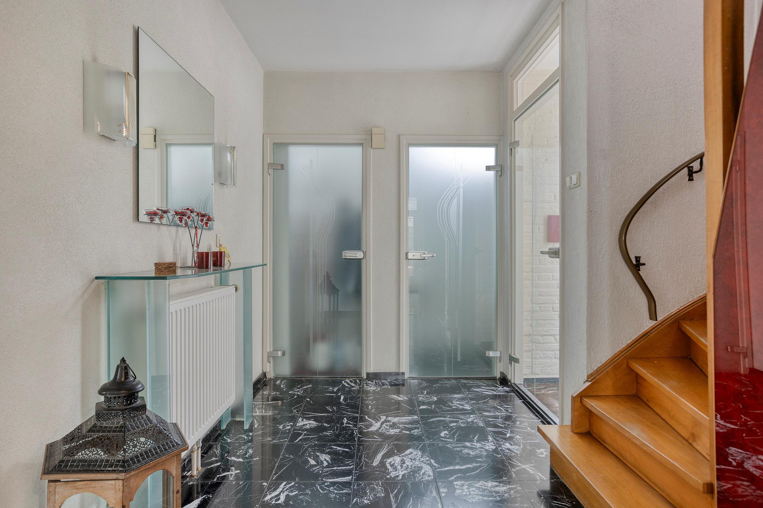 De gehele begane grond beschikt over deels houten en deels kunststof kozijnen met isolerende HR++ beglazing. De binnendeuren zijn allen van glas.
