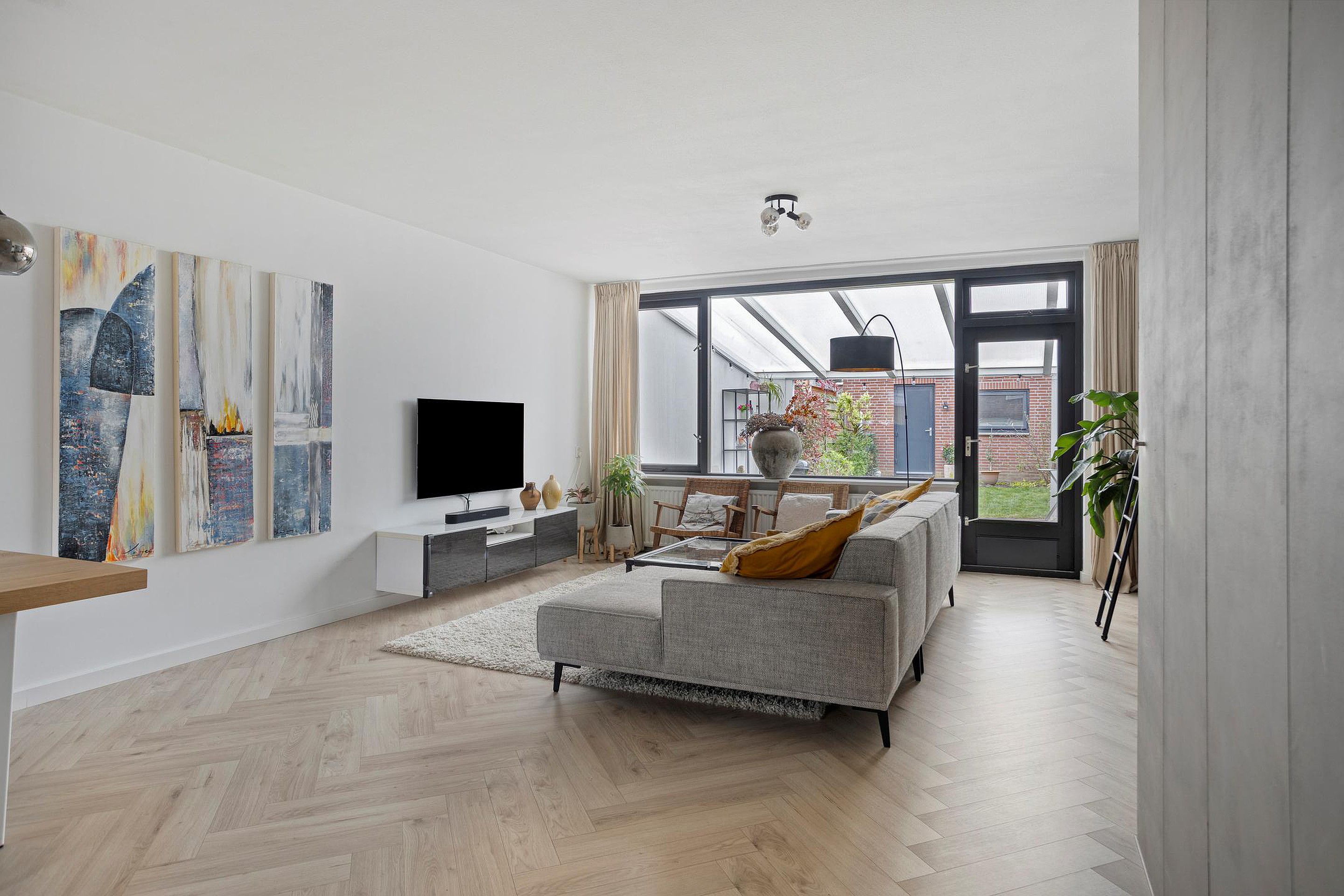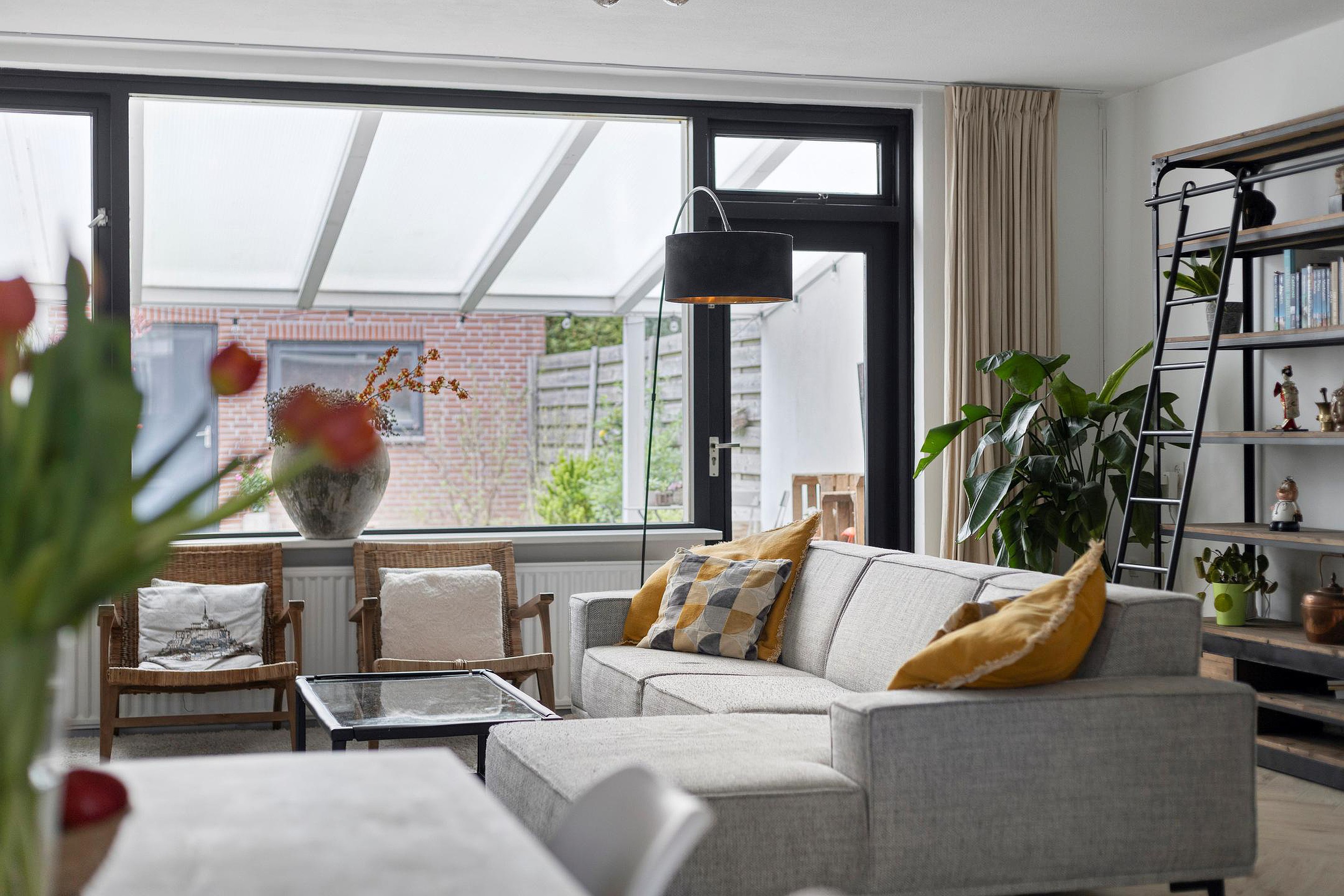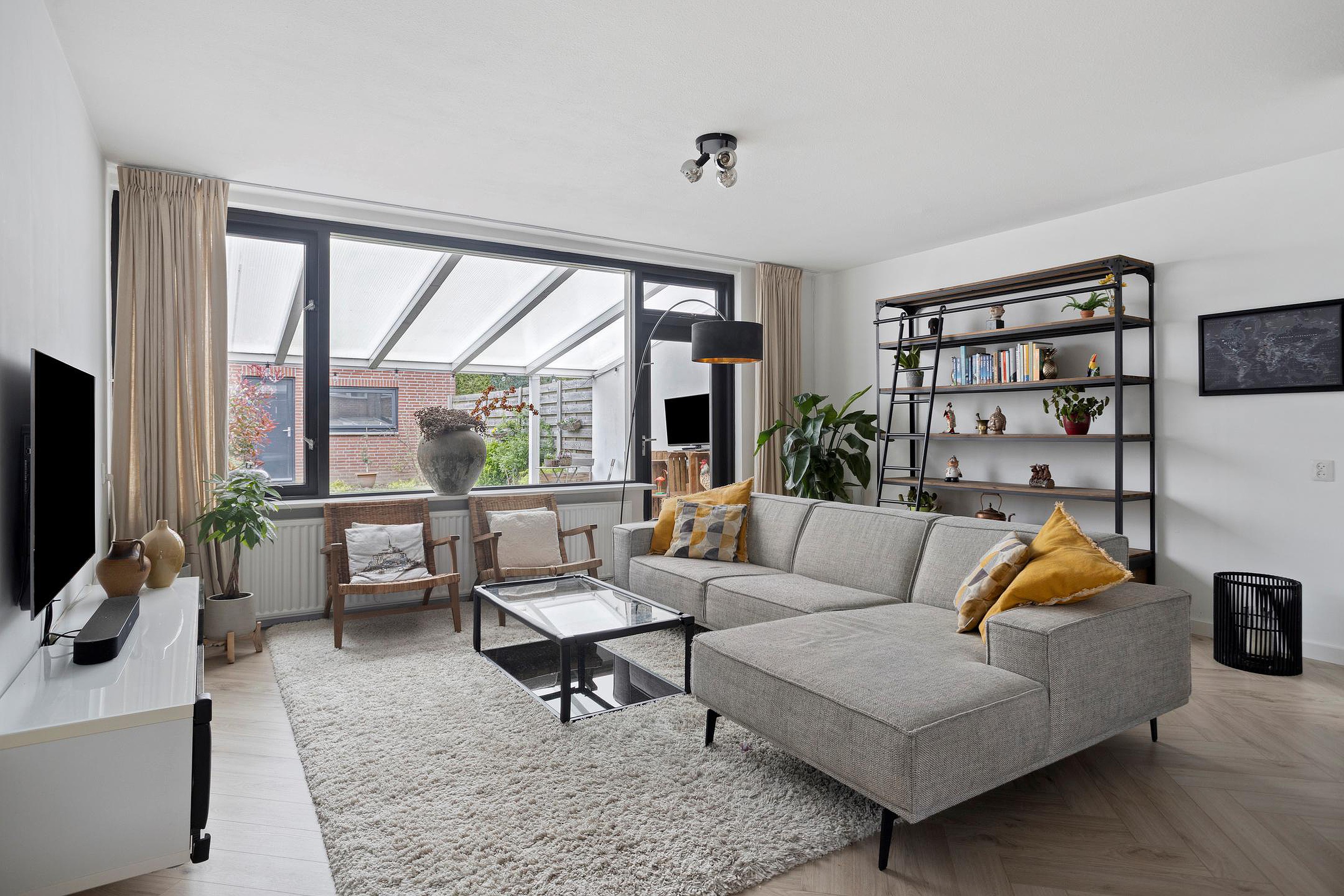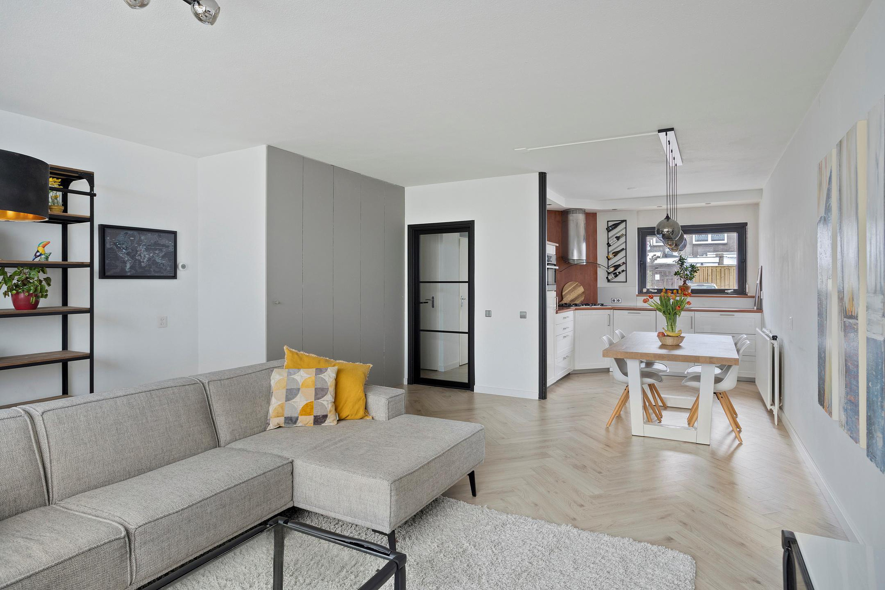 De lichte en royale doorzonwoonkamer (31 m2) vormt het hart van de woning en kenmerkt zich door de prettige lichtinval en de open verbinding met de keuken. De woonkamer is afgewerkt met strak gestucte wanden, een praktische trapkast en een openslaande deur naar de achtertuin met overkapping.